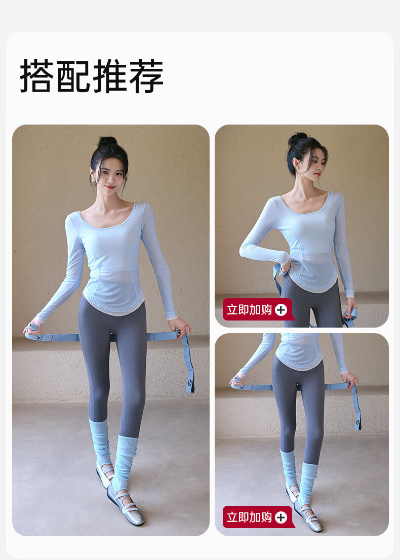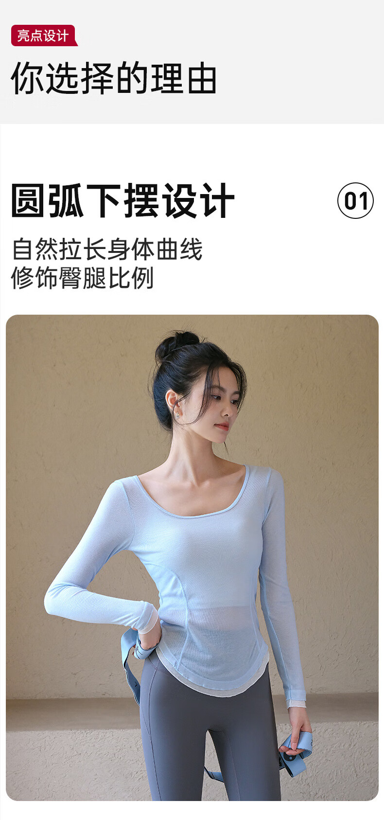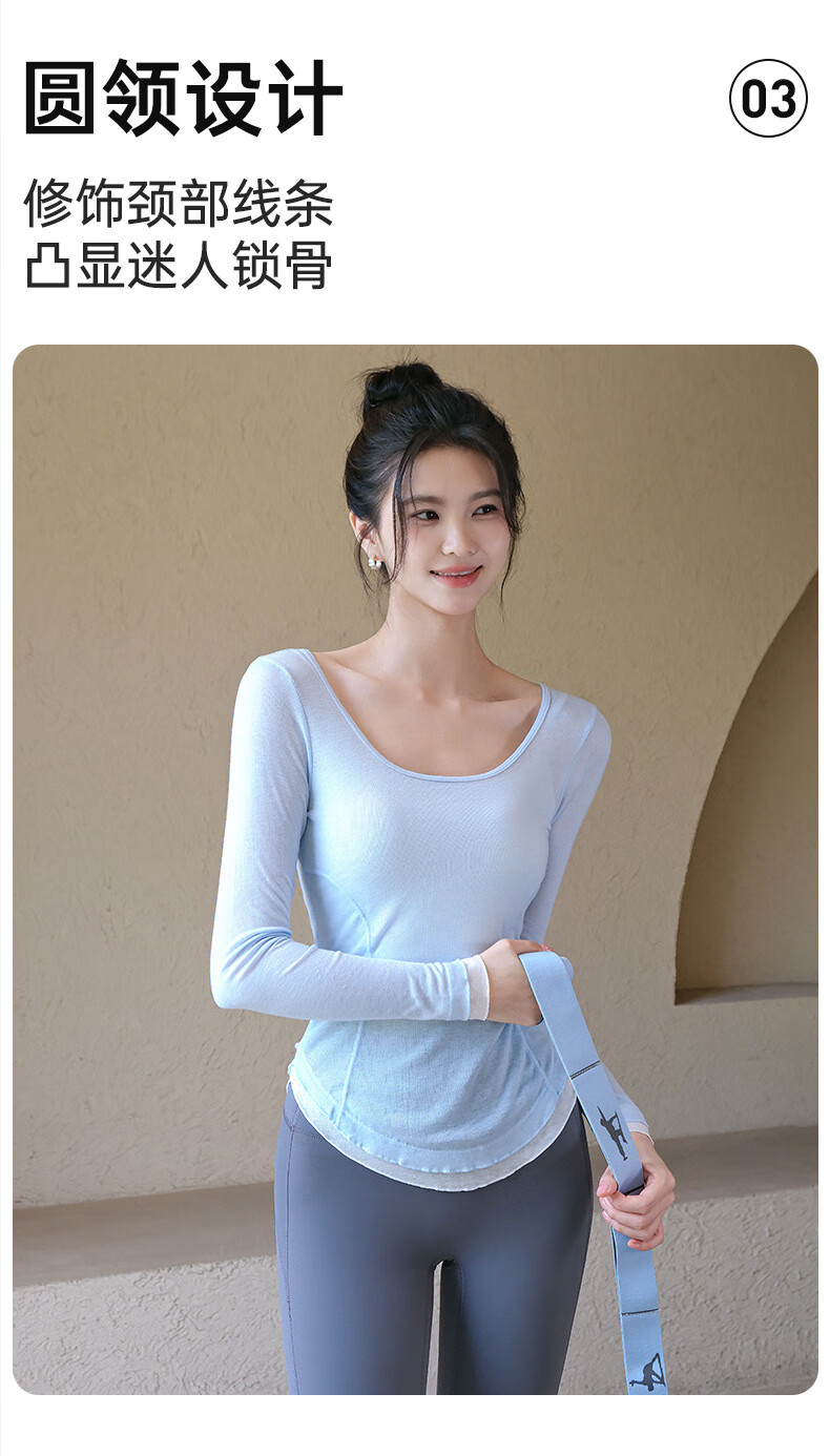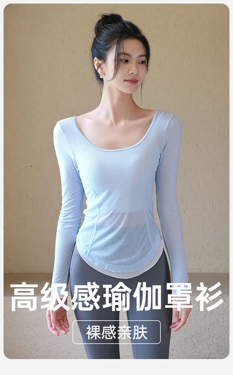 LULUUVTTOH new lightweight yoga wear blouse for women in autumn breathable sports long-sleeved Pilates comfortable fitness training T-shirt Baby blue S recommended 80-95Jin Jin equals 0.5 kg