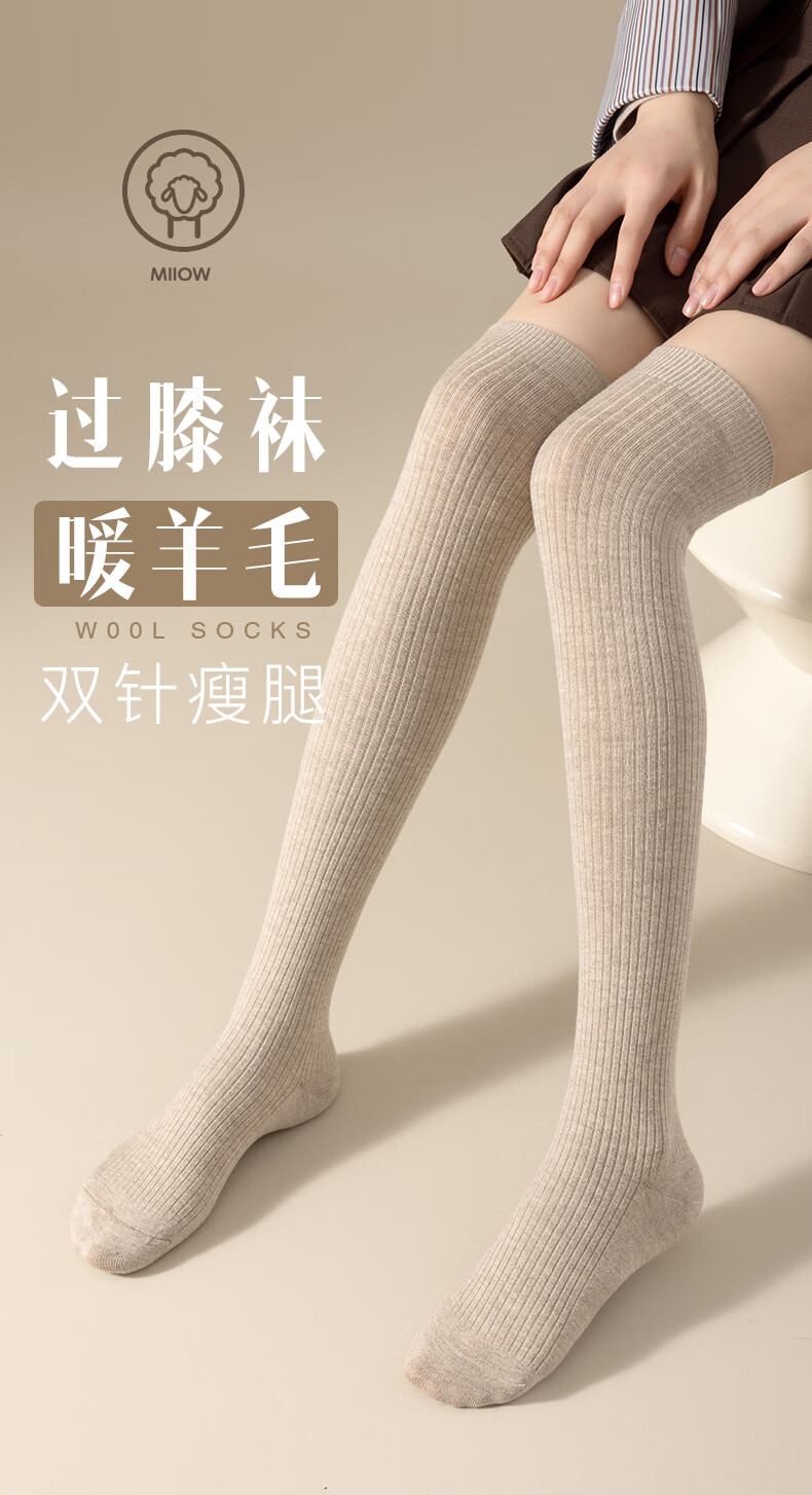 MiiOW Over-the-Knee Wool Socks Women's Autumn and Winter Fever Warm Knee Socks Maillard Pressure Calf Stockings Sheep Wool - Pressure Slimming - Knee Pads Free Combination Package Contact Customer Service Notes - 9 2 pairs One size fits all (35-41) High quality - Shop around