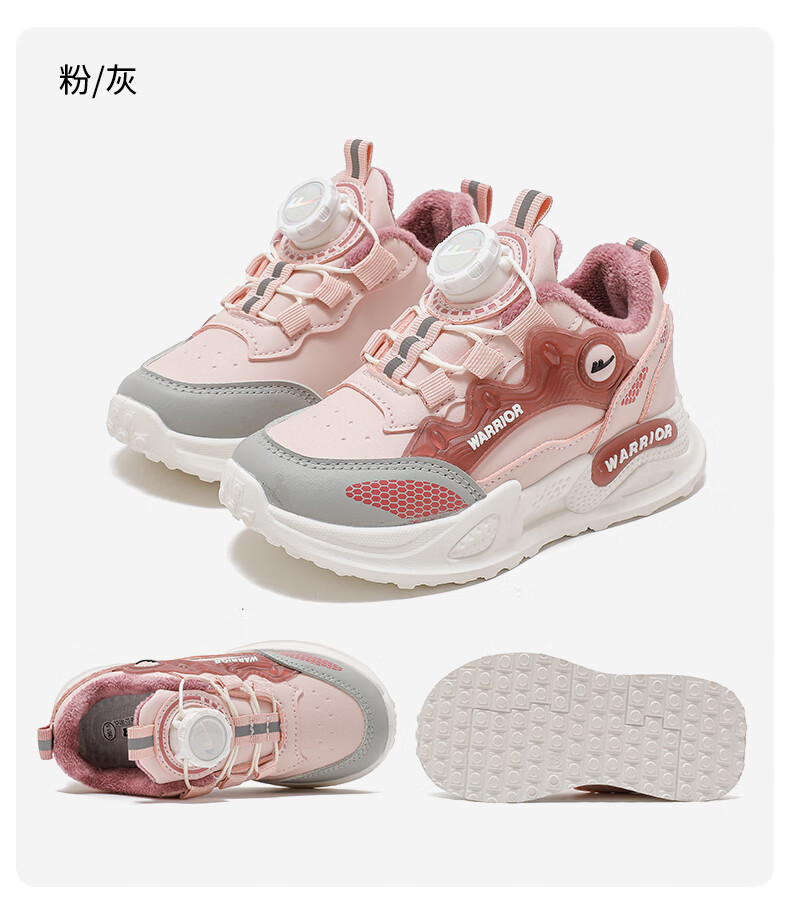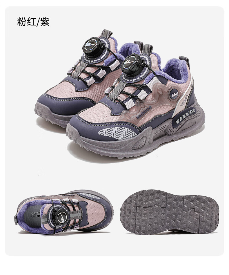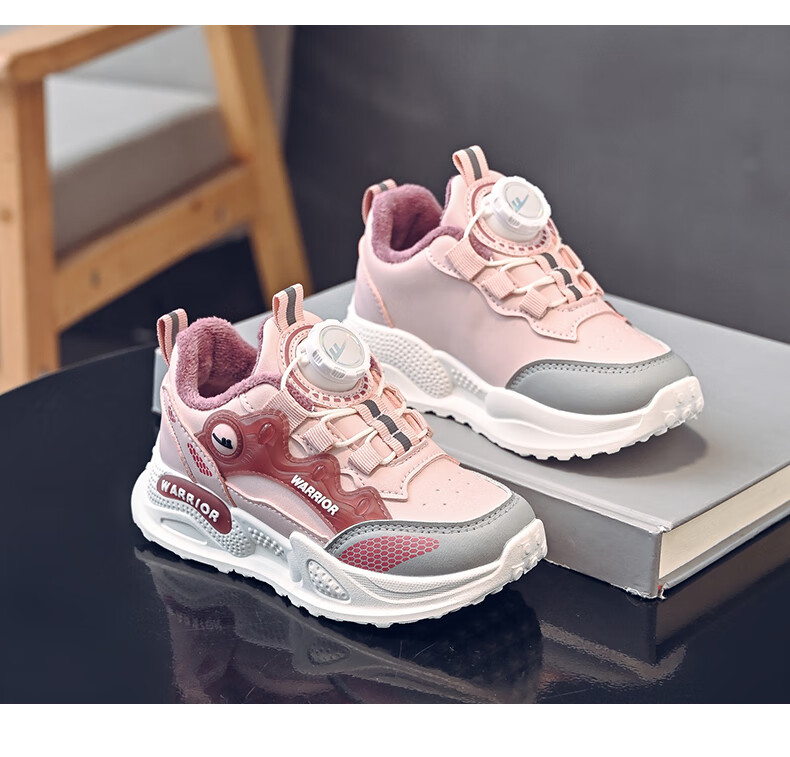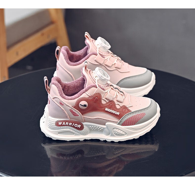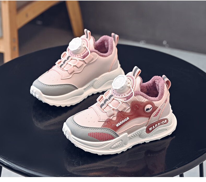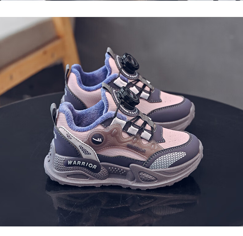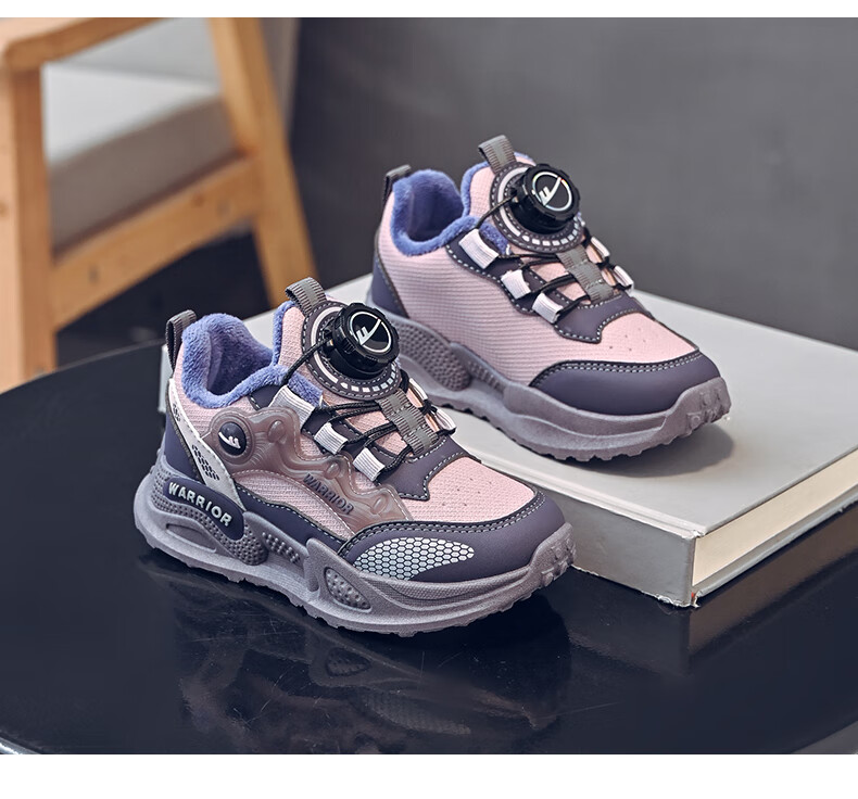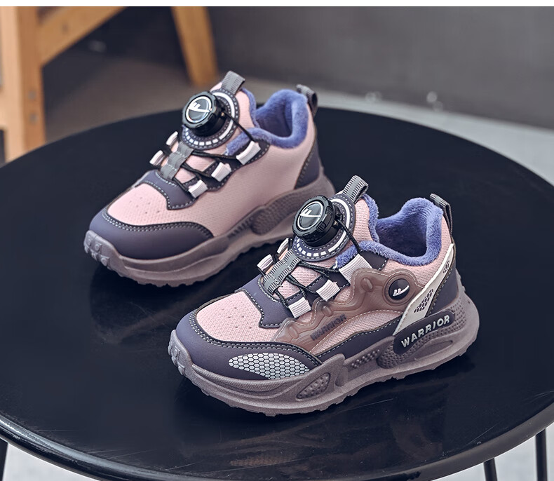 Pull-back children's shoes, girls' cotton shoes, autumn and winter plus velvet to keep warm, student running dad shoes, children's shoes, children's sports shoes, pink/purple 30, inner length 19.5/foot length 18.5
