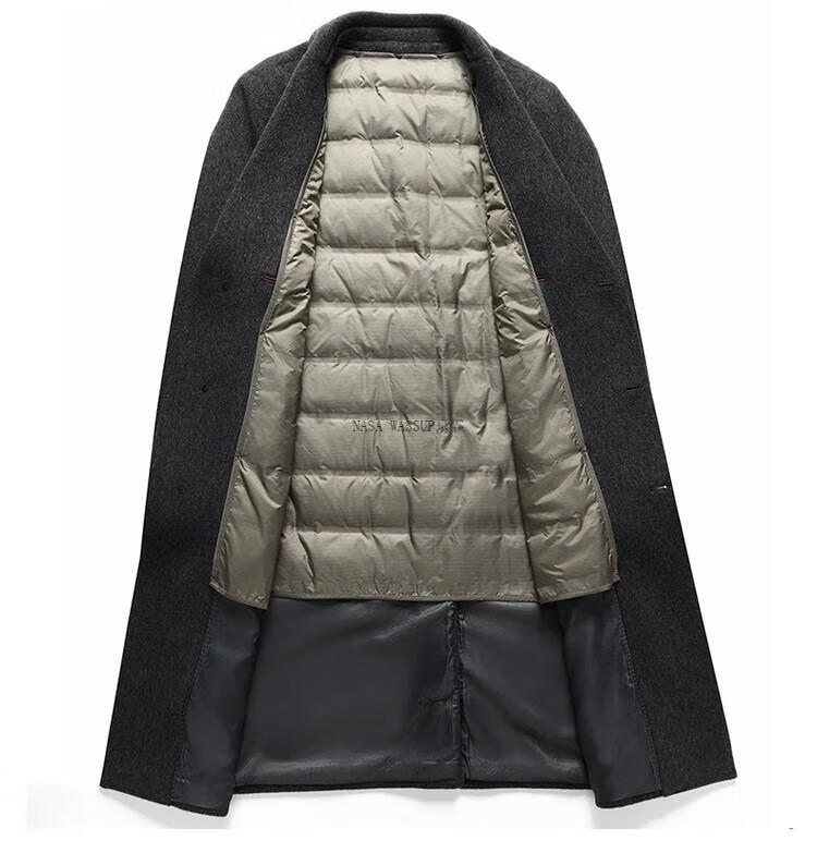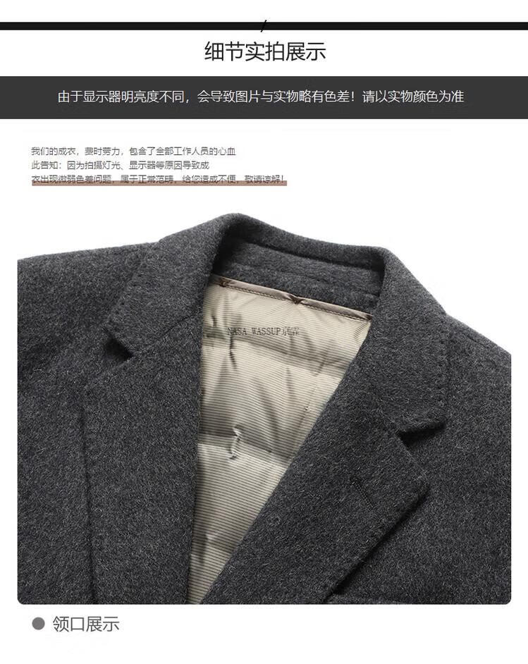 Nasawassup Ordos City 2025 Autumn and Winter High-end Men's Medium-Length Wool Coat with Removable Liner Double-sided Woolen Coat Gray Made in Ordos XL 180 130-145 Jin Jin equals 0.5 kg Made in Ordos