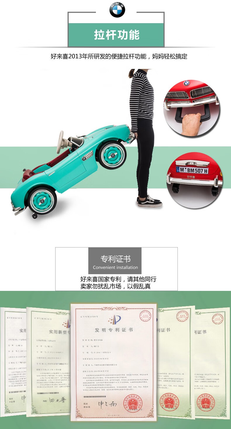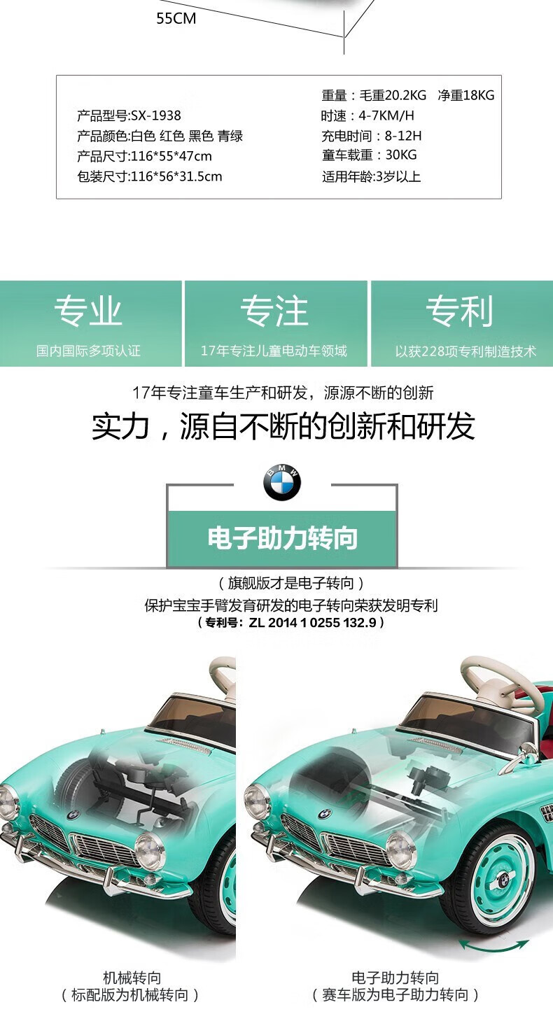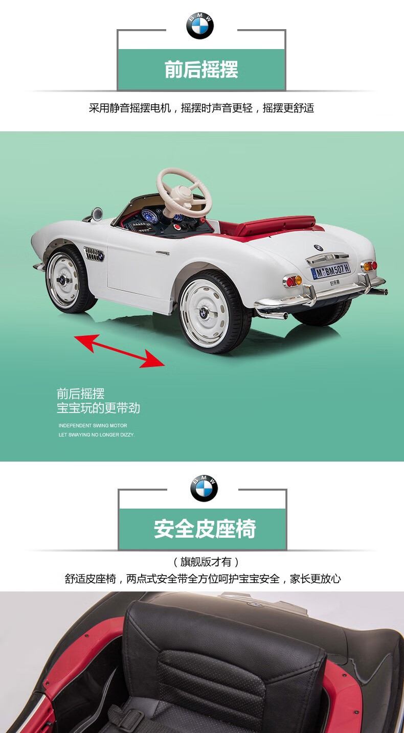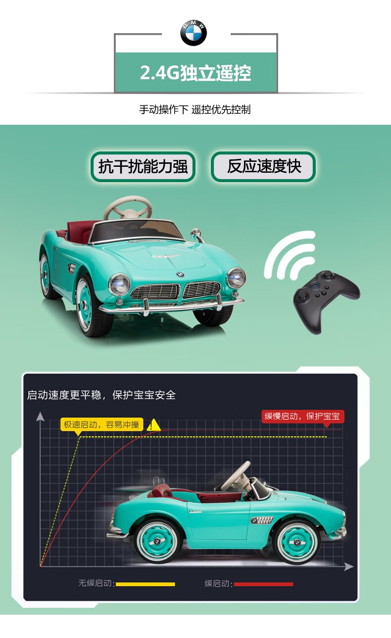 Tianlin BMW children's electric car four-wheel car remote control toy car can sit on children's baby stroller flagship version + green + portable pull rod + electronic steering + explosion-proof soft wheels