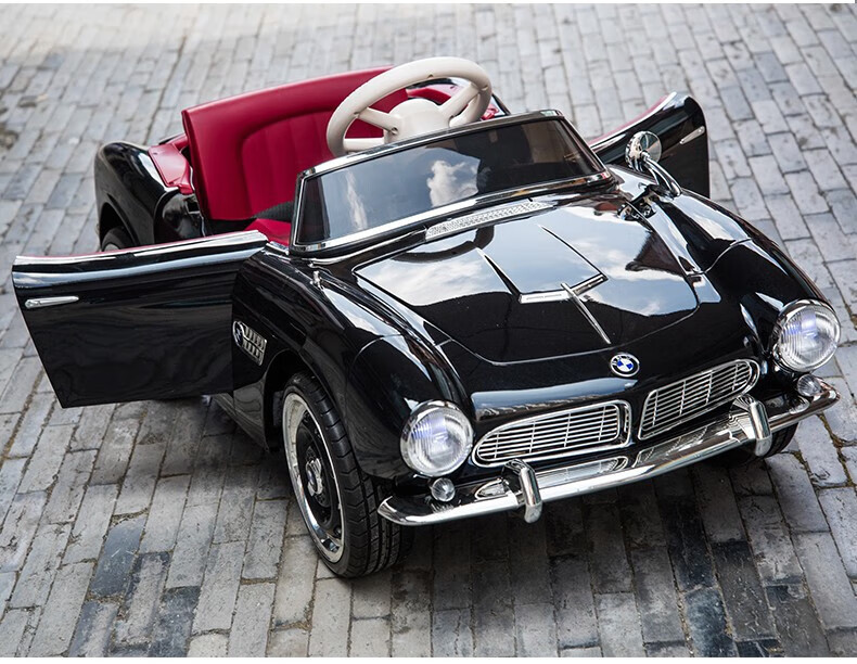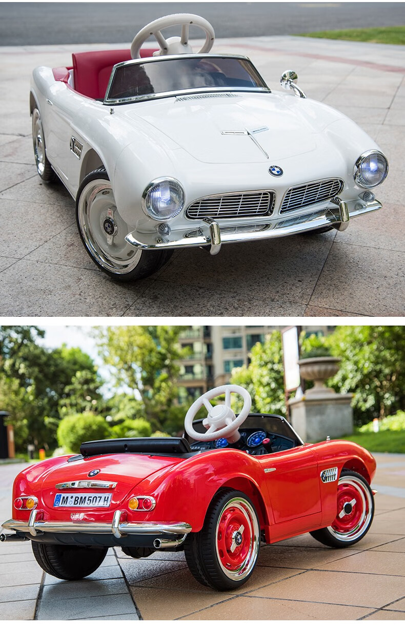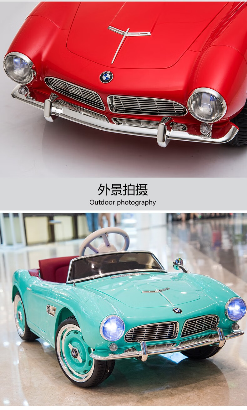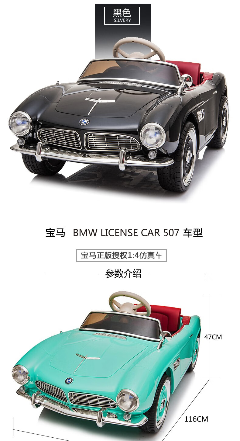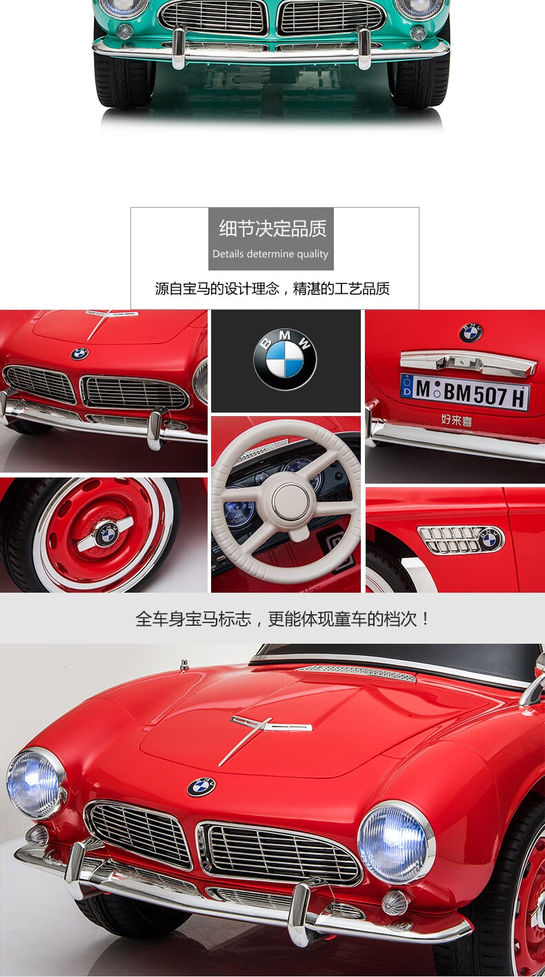 Tianlin BMW children's electric car four-wheel car remote control toy car can sit on children's baby stroller flagship version + green + portable pull rod + electronic steering + explosion-proof soft wheels