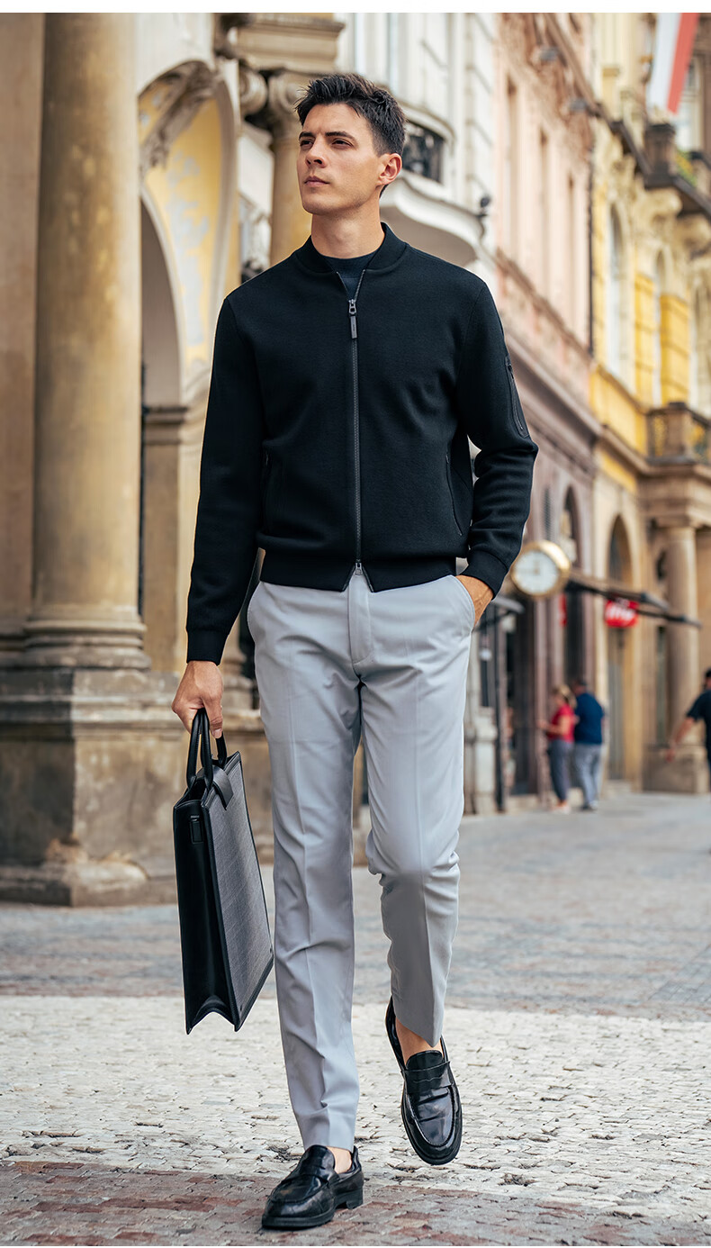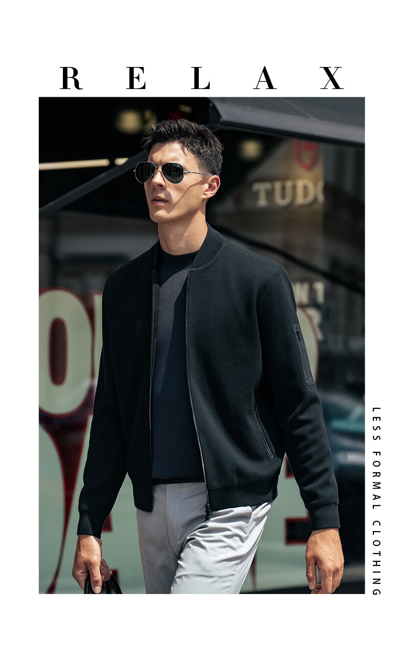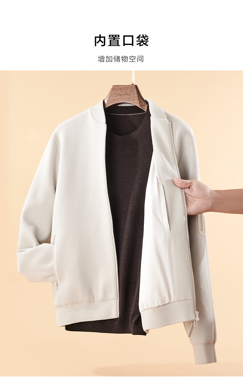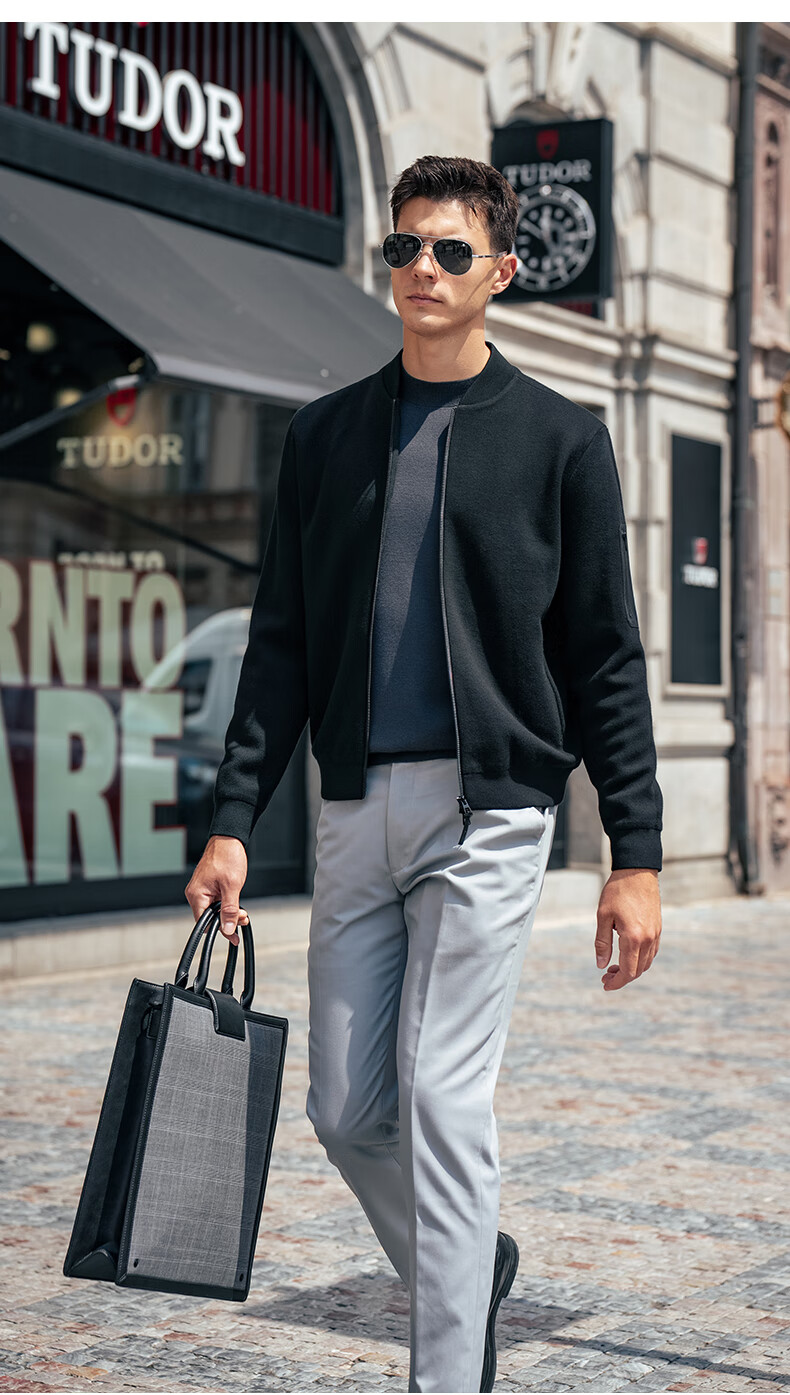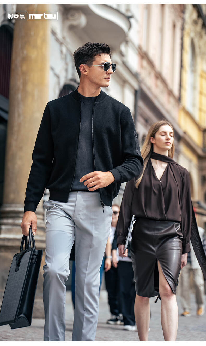 Mr. Bu Baseball Collar Wool Jacket Men's 2025 Winter New Zipper Pocket Jacket Cardigan Elegant Style BT16965 Piano Black L (175)