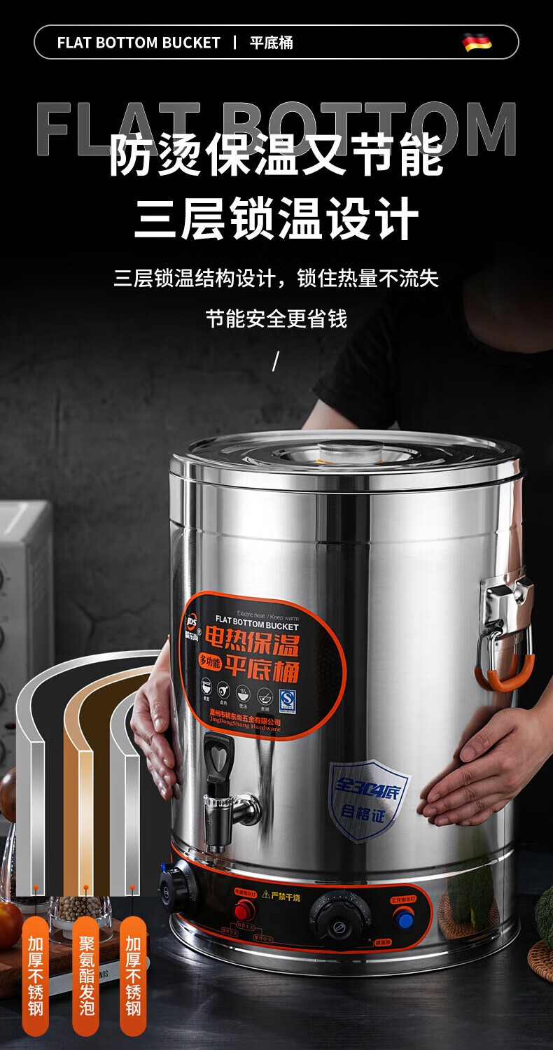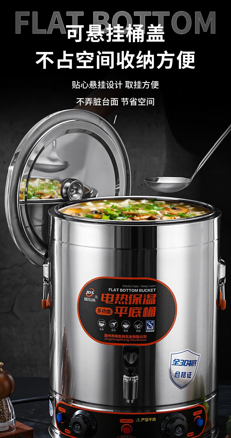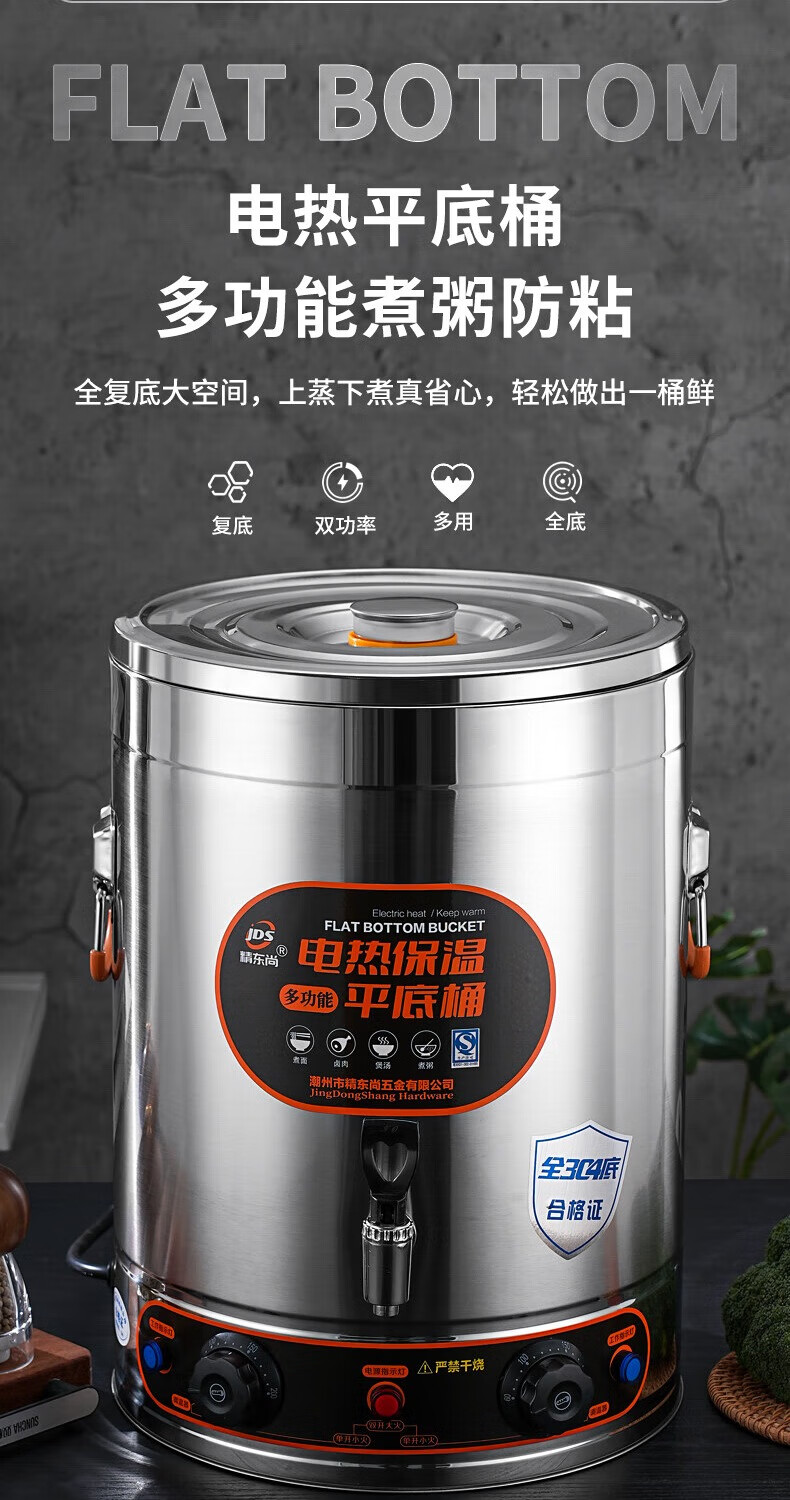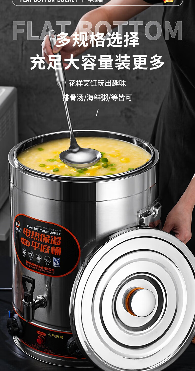 Electric heating porridge bucket with double bottom, special pot for cooking porridge, soy milk bucket, commercial porridge pot, large capacity stainless steel soup pot, soup bucket, 30L non-faucet, double bottom, anti-stick flat bottom liner