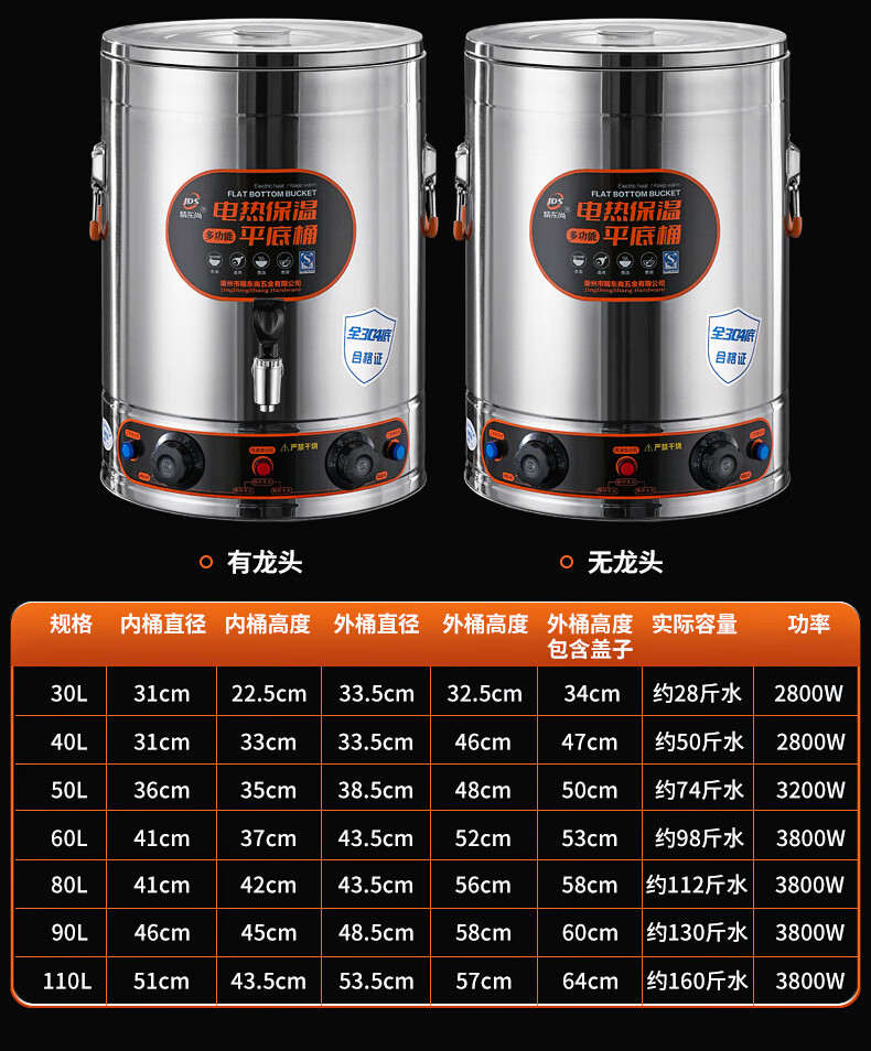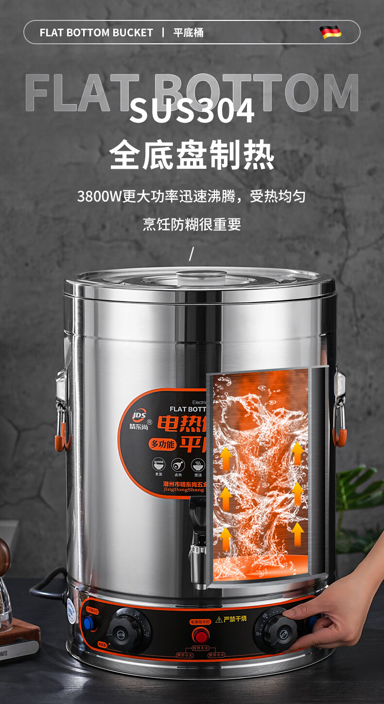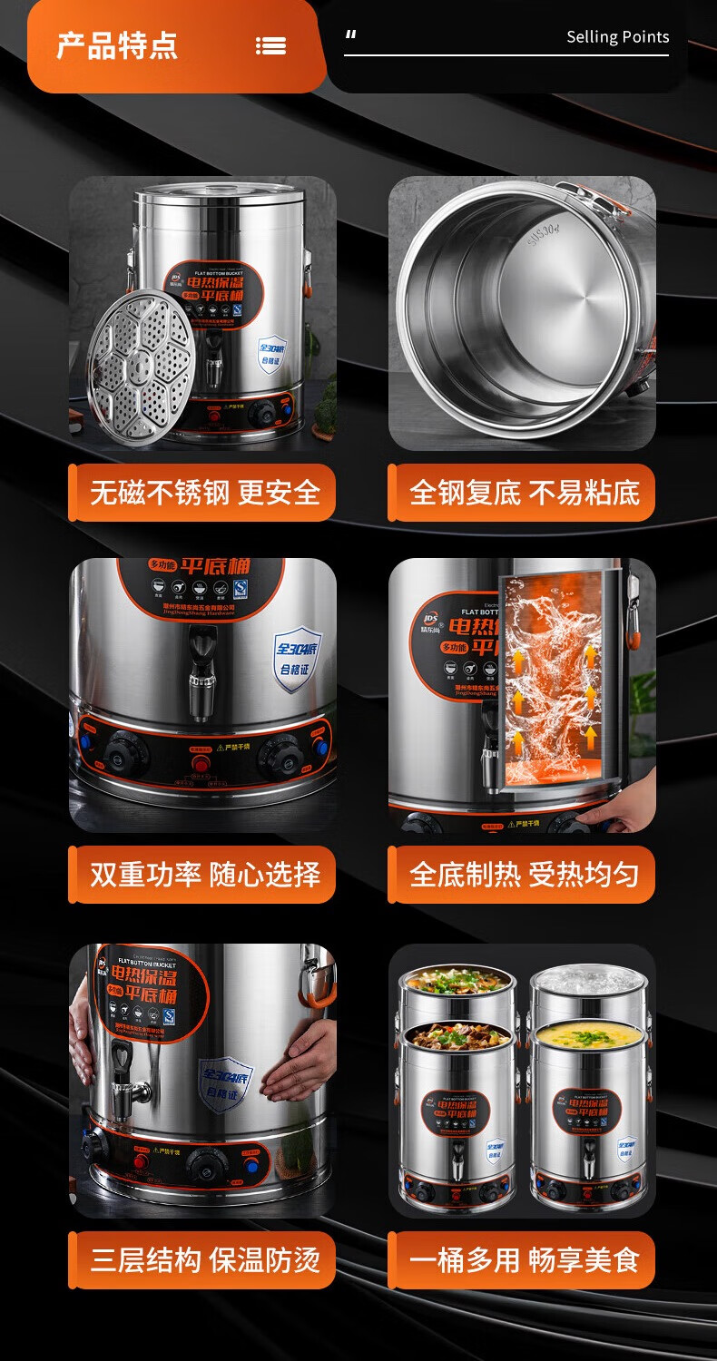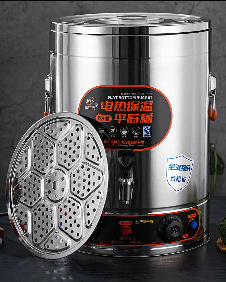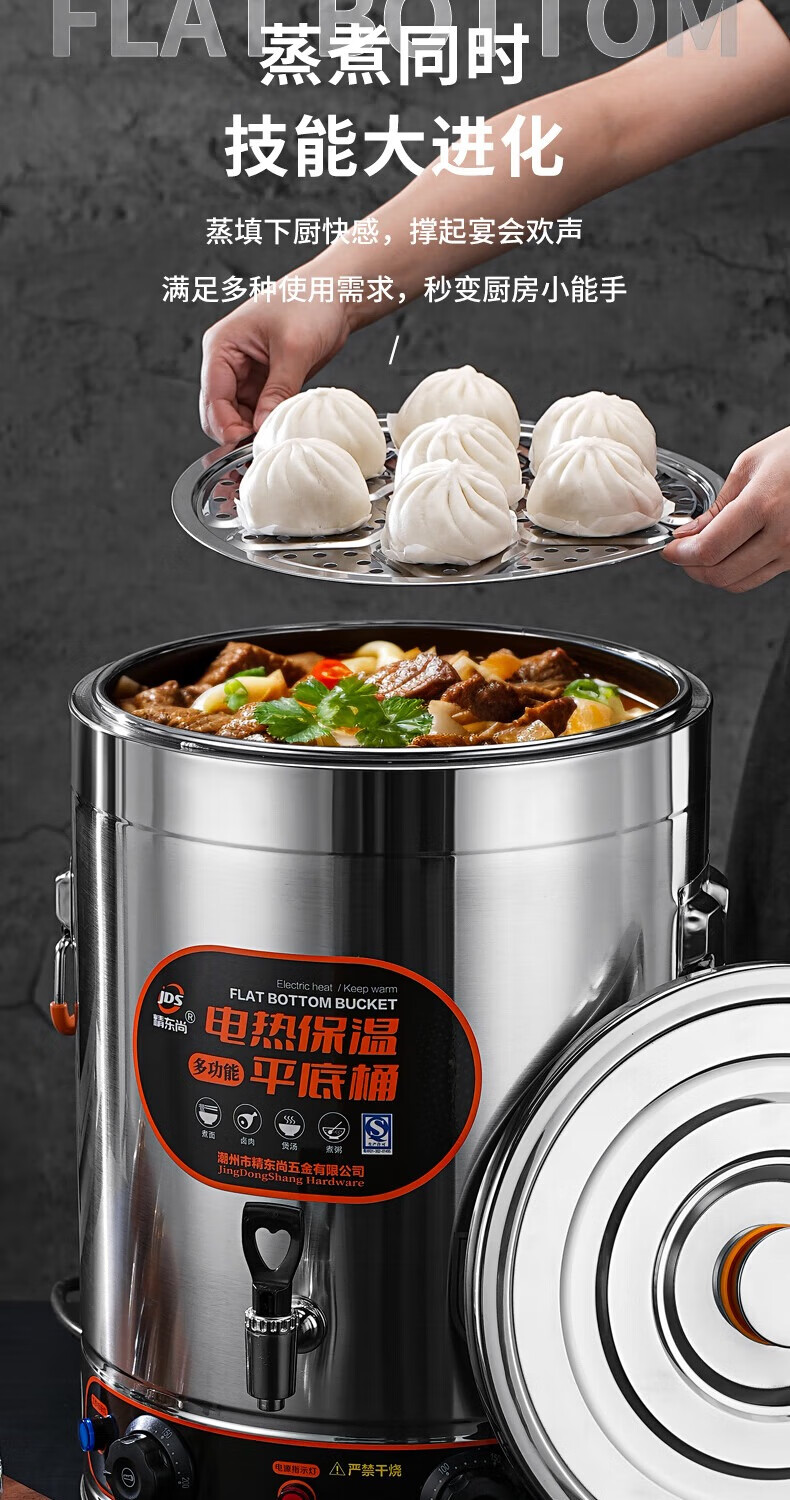 Electric heating porridge bucket with double bottom, special pot for cooking porridge, soy milk bucket, commercial porridge pot, large capacity stainless steel soup pot, soup bucket, 30L non-faucet, double bottom, anti-stick flat bottom liner