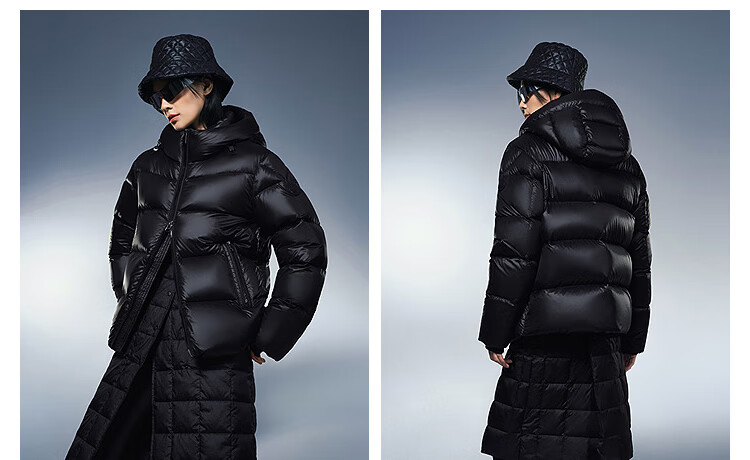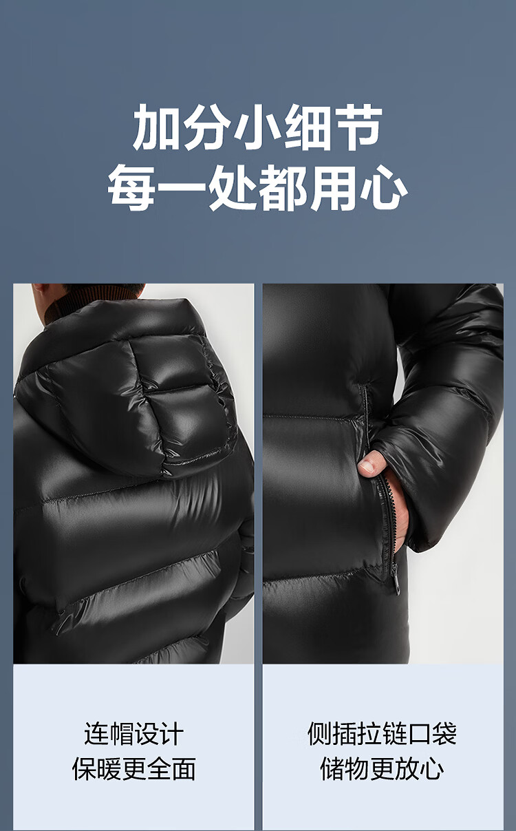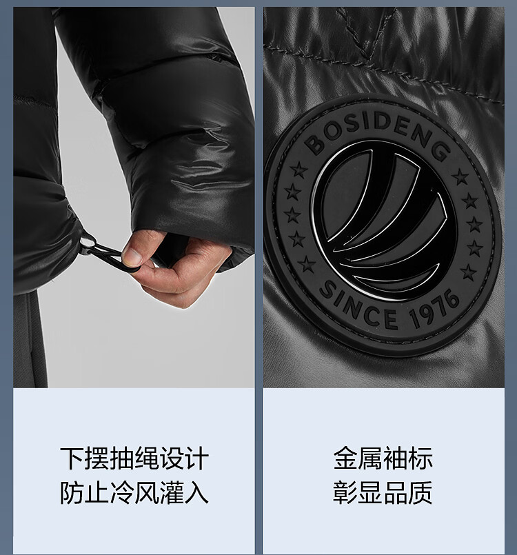 BOSIDENG Puff Chaqueta De Plumas Muy Rellena 90 Chaqueta De Plumas De Ganso Corta Hombres Y Mujeres Pareja Chaqueta Suelta Y Cálida con Capucha Yaojin Negro-Brillante-Alta Calidad