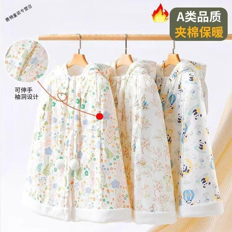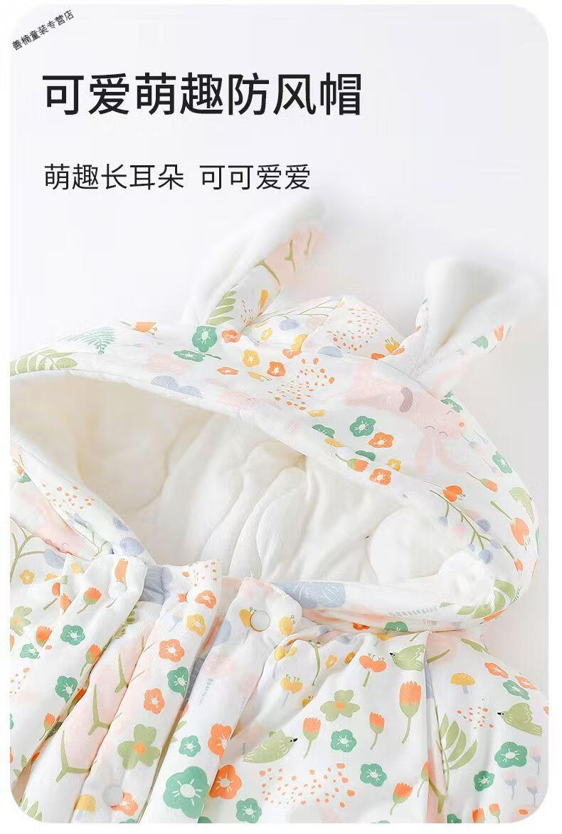 Disney Baby Windproof Jacket for Spring, Autumn and Winter Outings with Velvet Blanket for Boys and Girls, New Year's Eve Festive Jacket, Baby Cloak, Blossoms (Cotted, Thickened, Reachable) 100 One Size (Suitable for 0-6 years old)