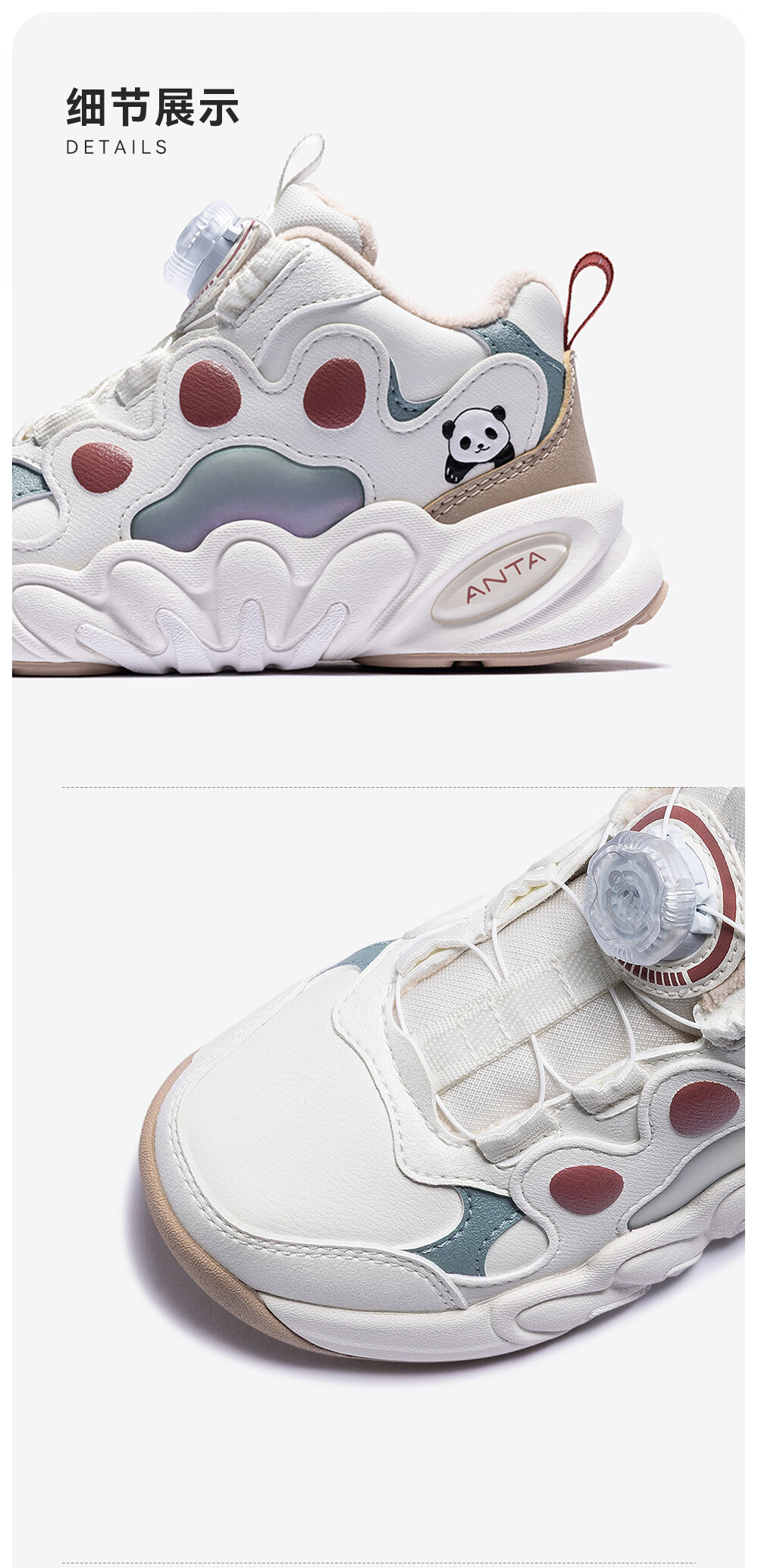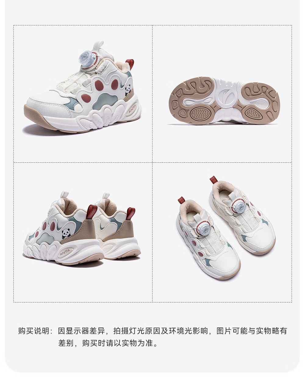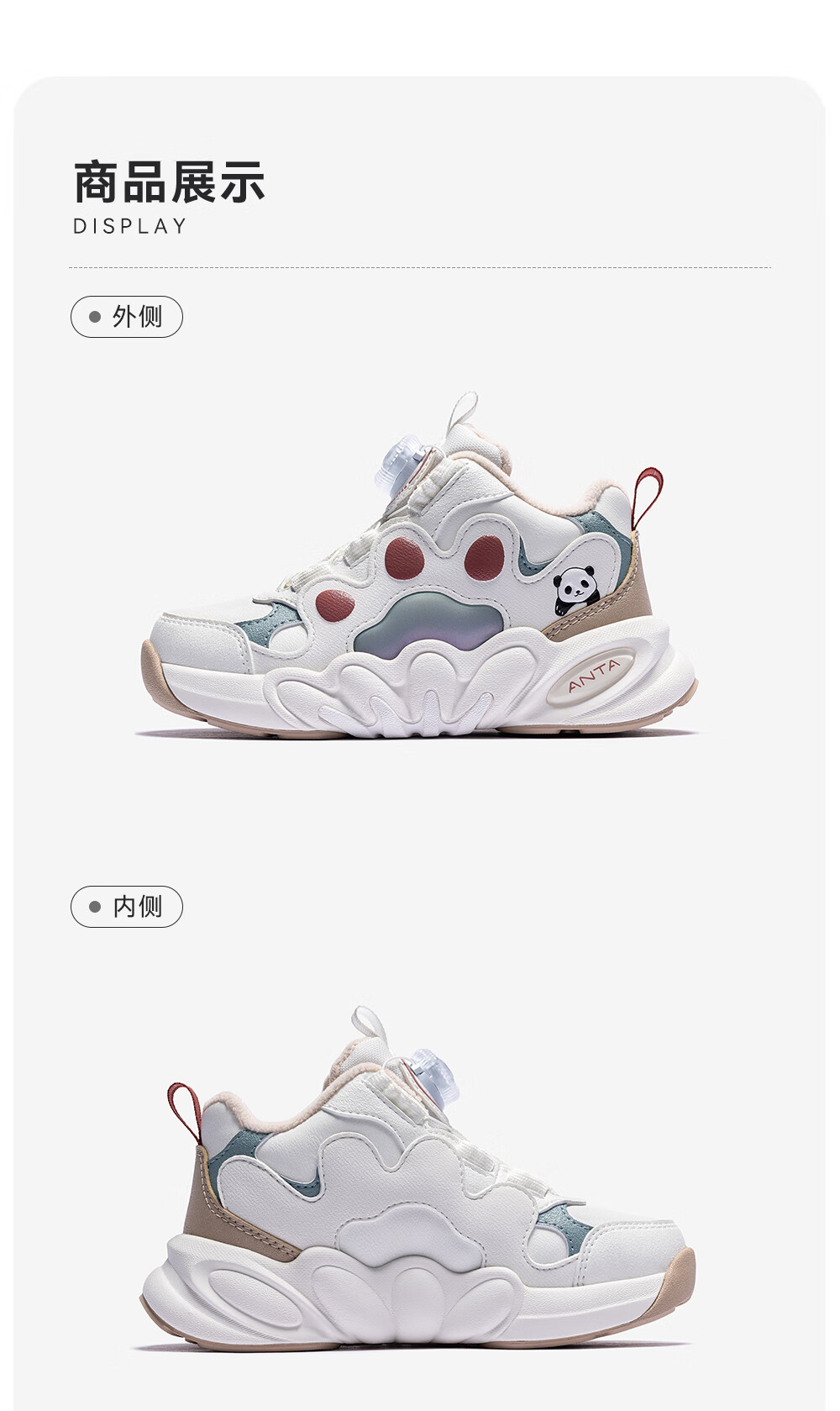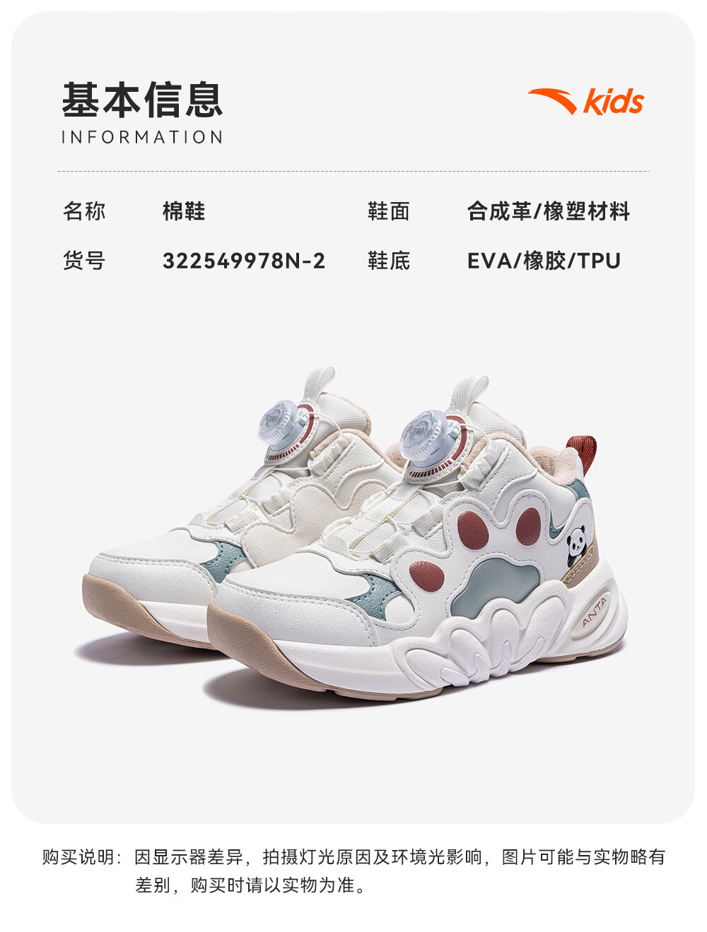 ANTA Children's Sports Shoes for Girls, Dundun Cotton Shoes with Velvet Warm Knob Buckle Casual Snow Boots 322549978N Ivory White/Fish Eye Blue-2 29 Shoe Inner Length 18cm