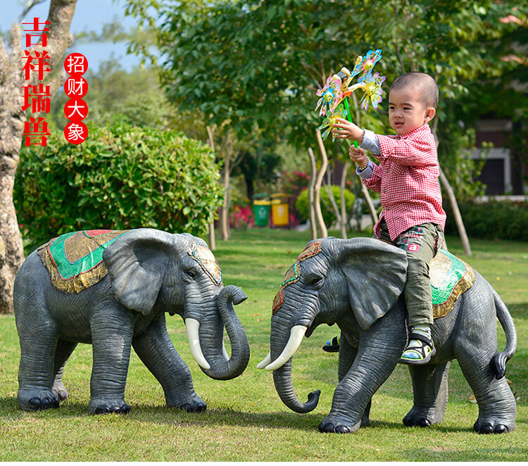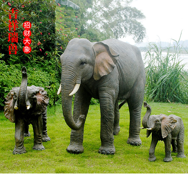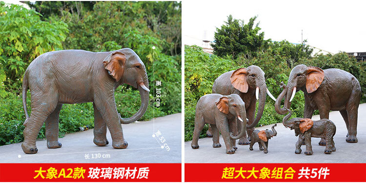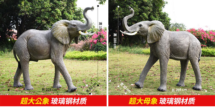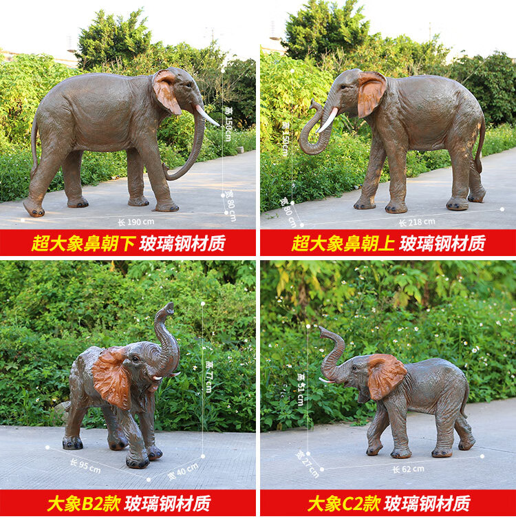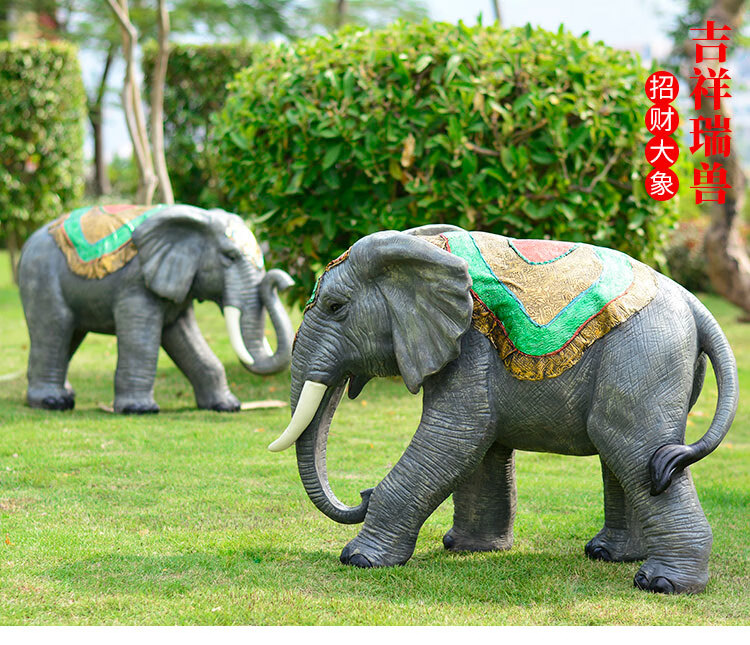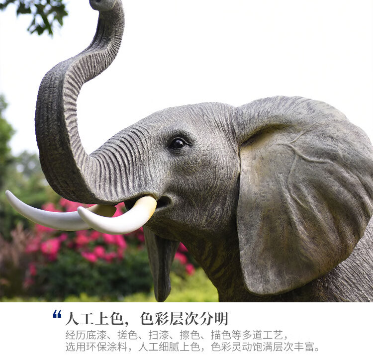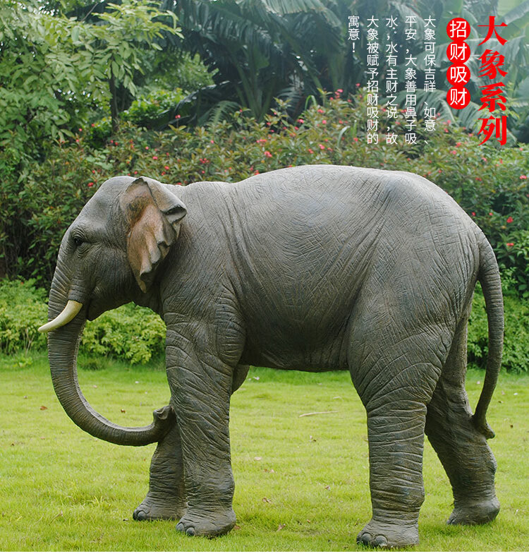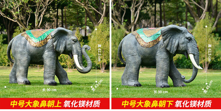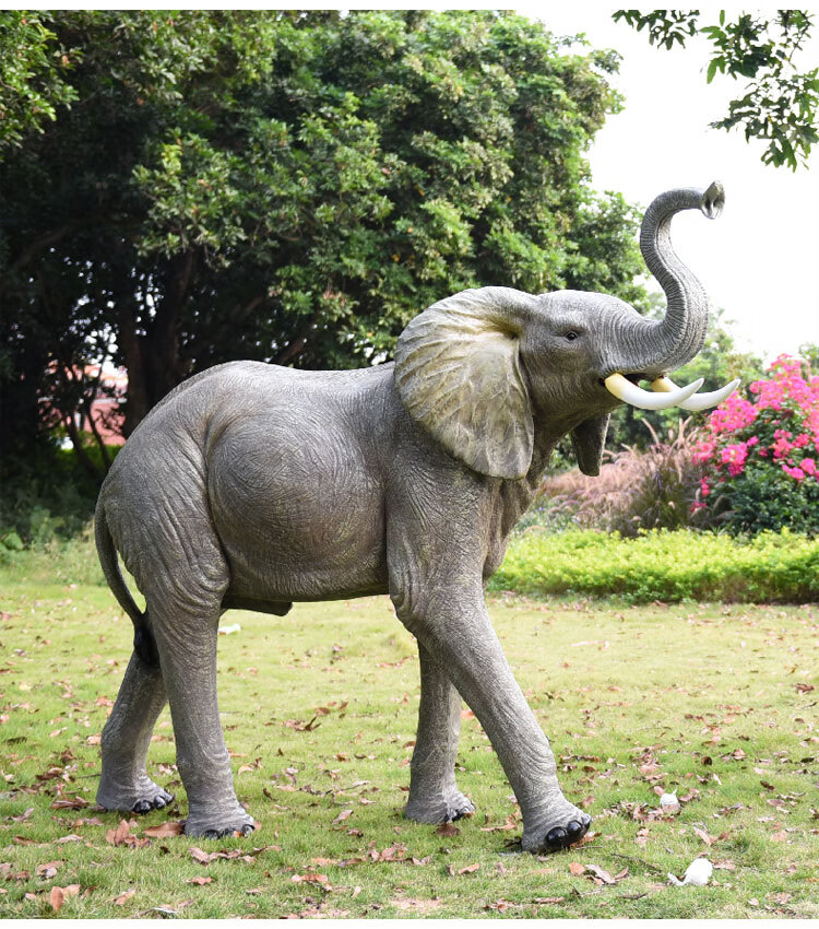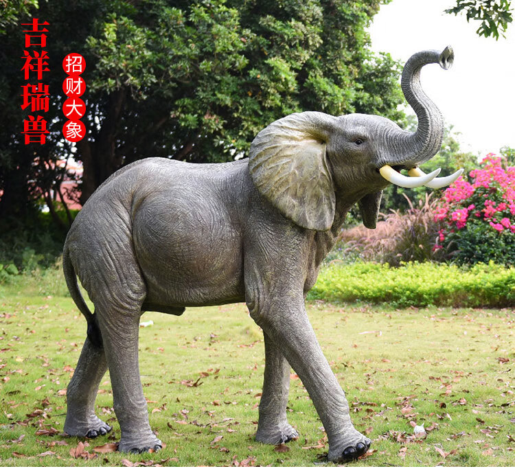 Elephant floor-standing ornaments outdoor simulation sculpture garden landscape fiberglass animal mall grass elephant nose up 90*43*63cm