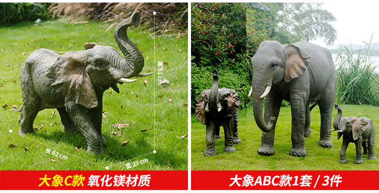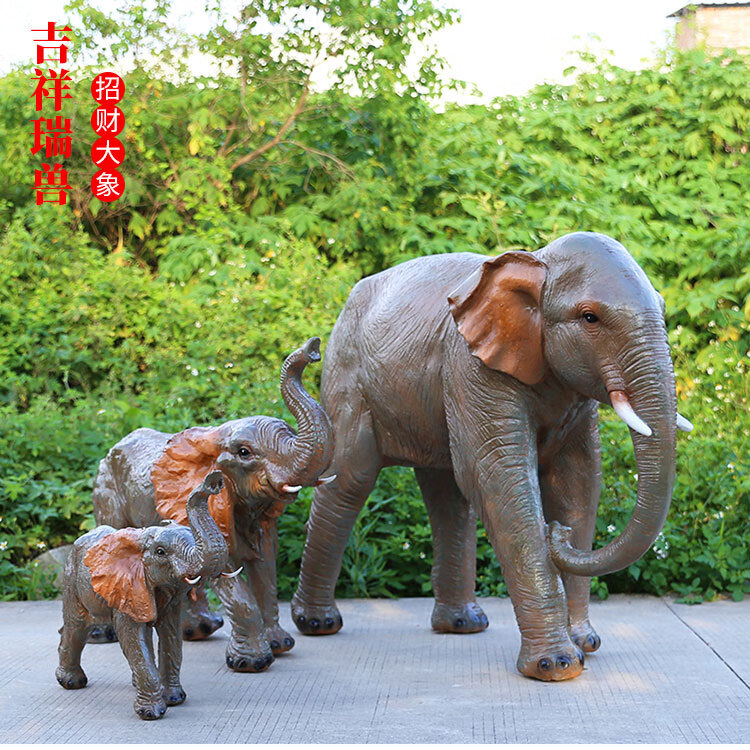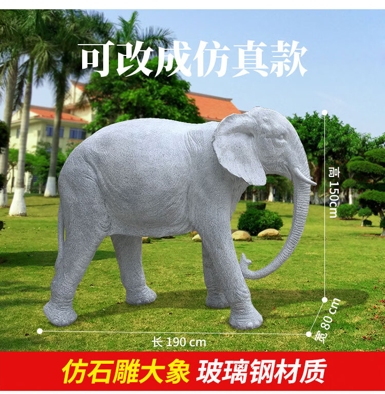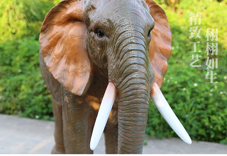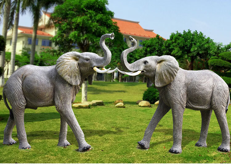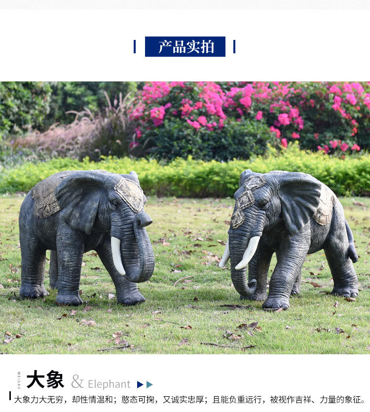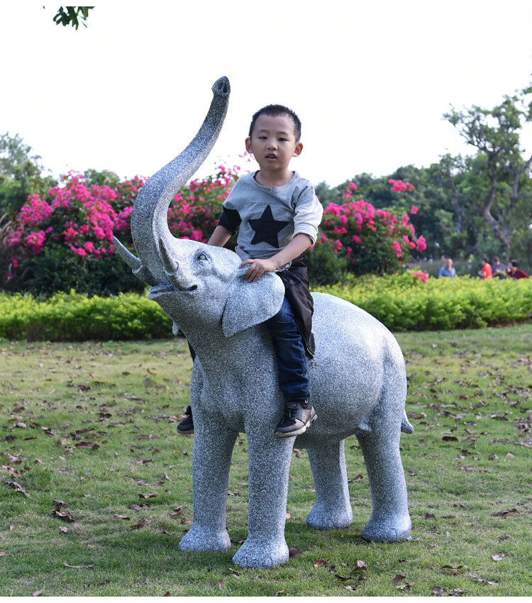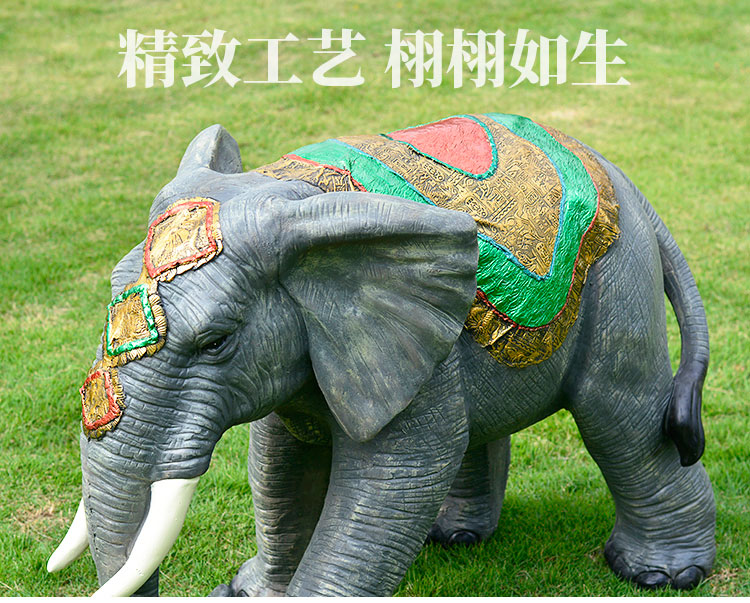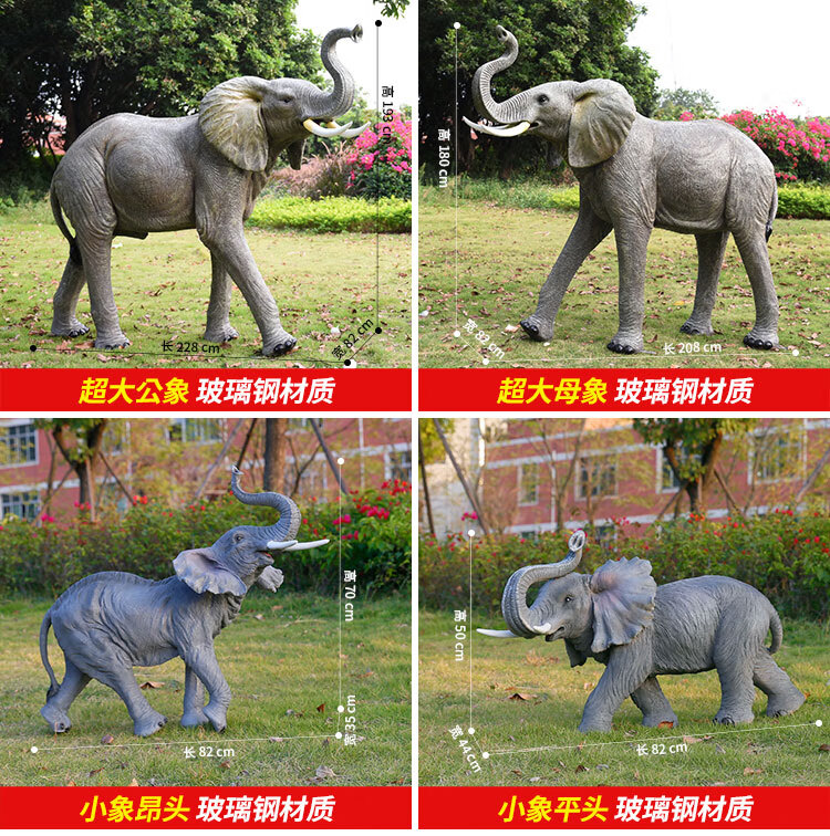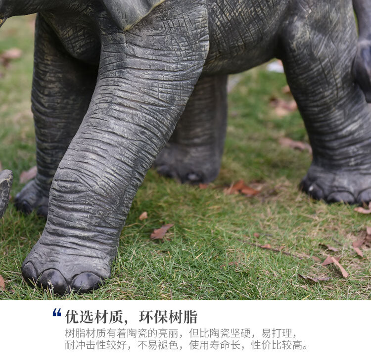 Elephant floor-standing ornaments outdoor simulation sculpture garden landscape fiberglass animal mall grass elephant nose up 90*43*63cm
