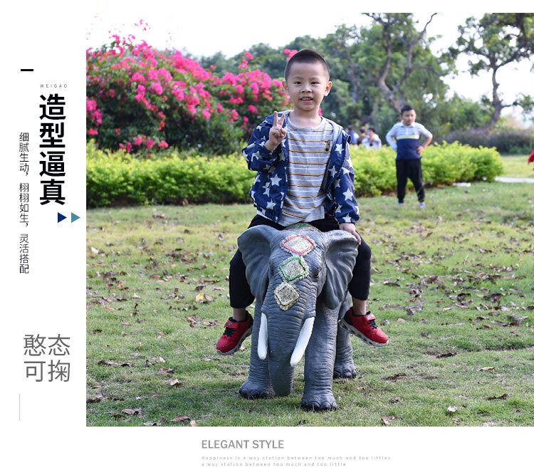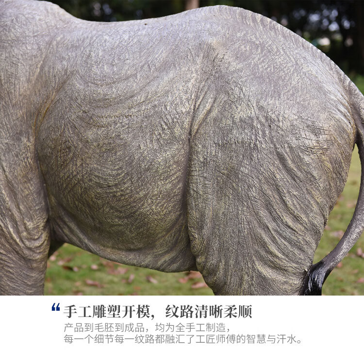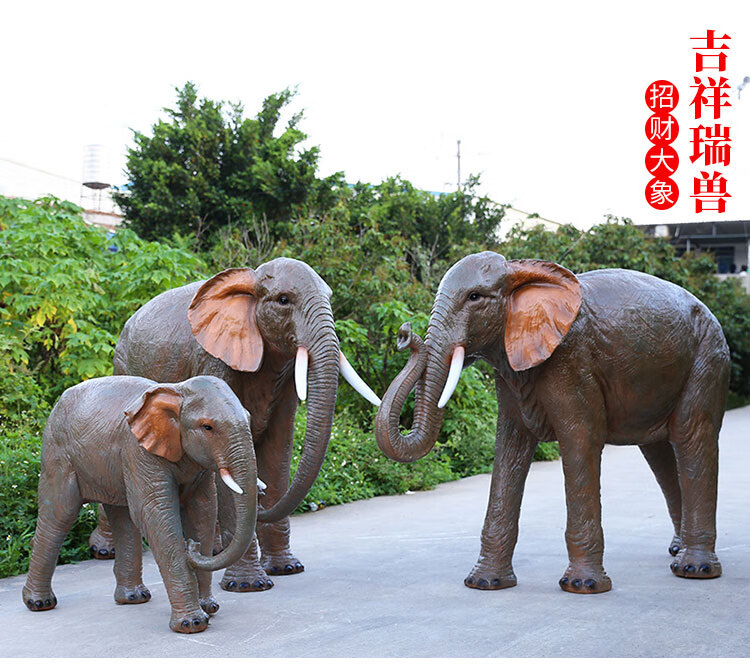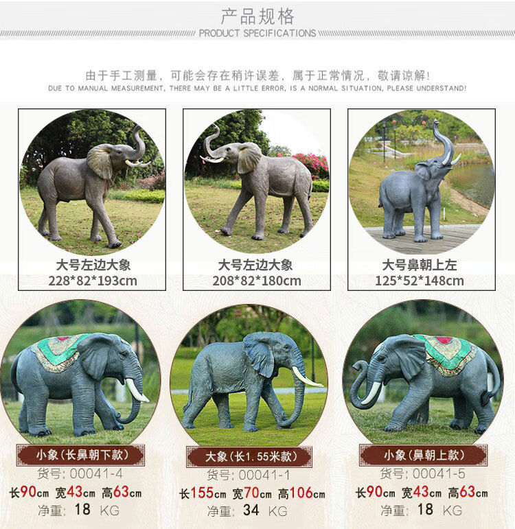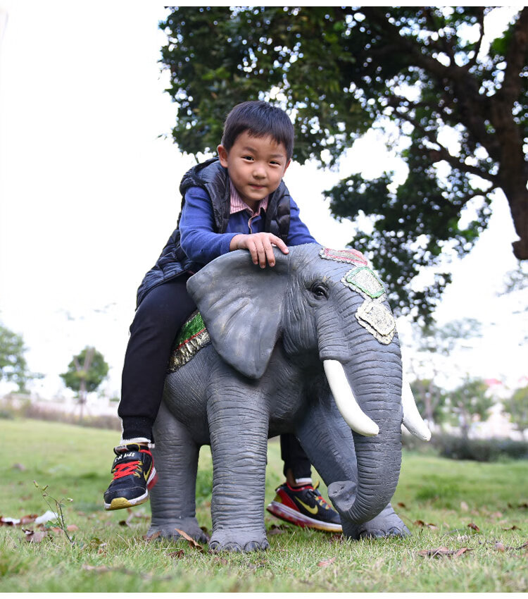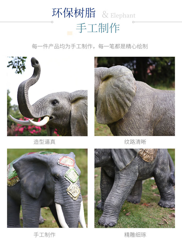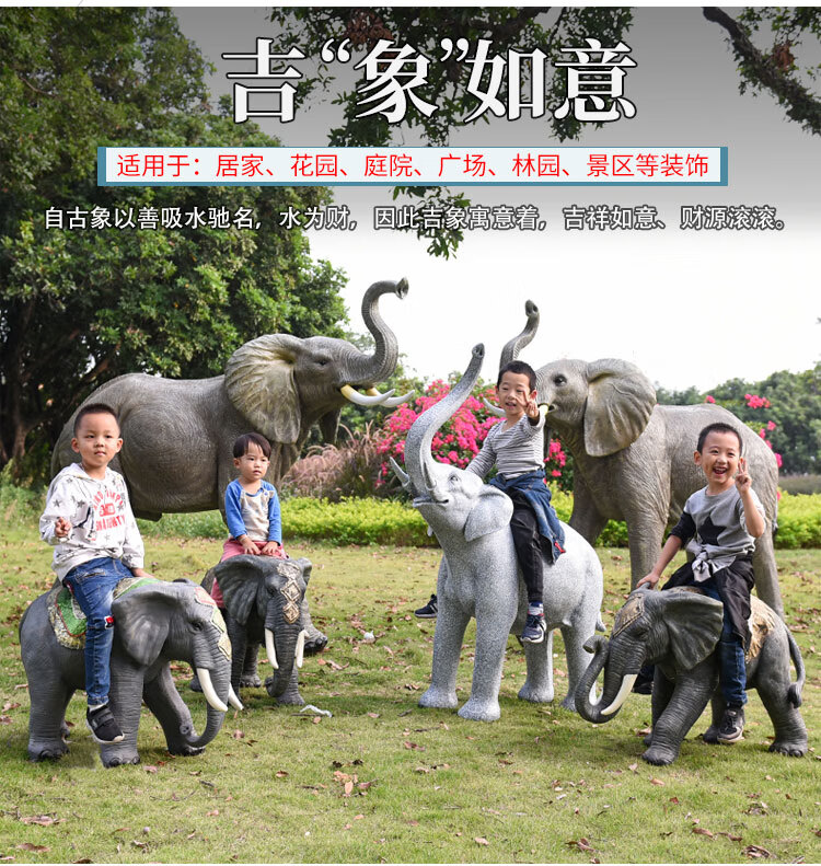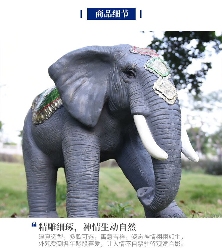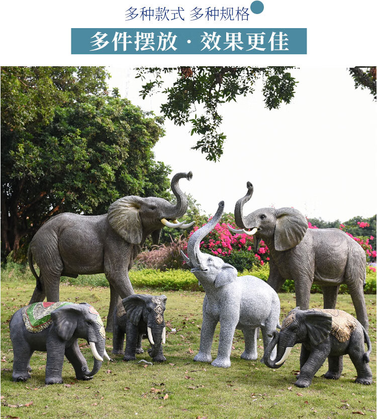 Elephant floor-standing ornaments outdoor simulation sculpture garden landscape fiberglass animal mall grass elephant nose up 90*43*63cm