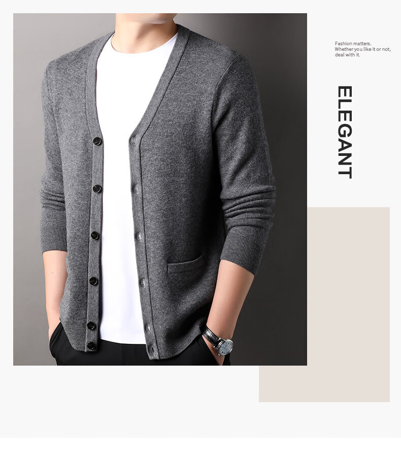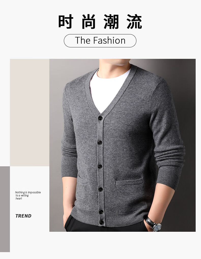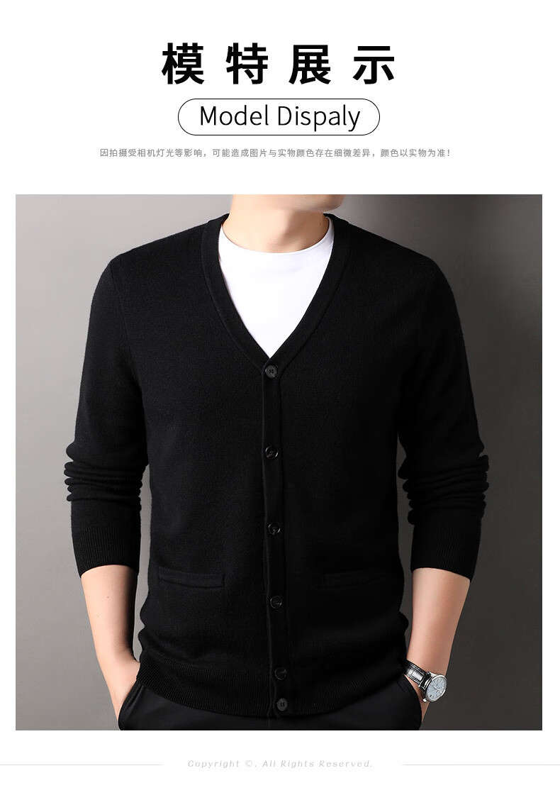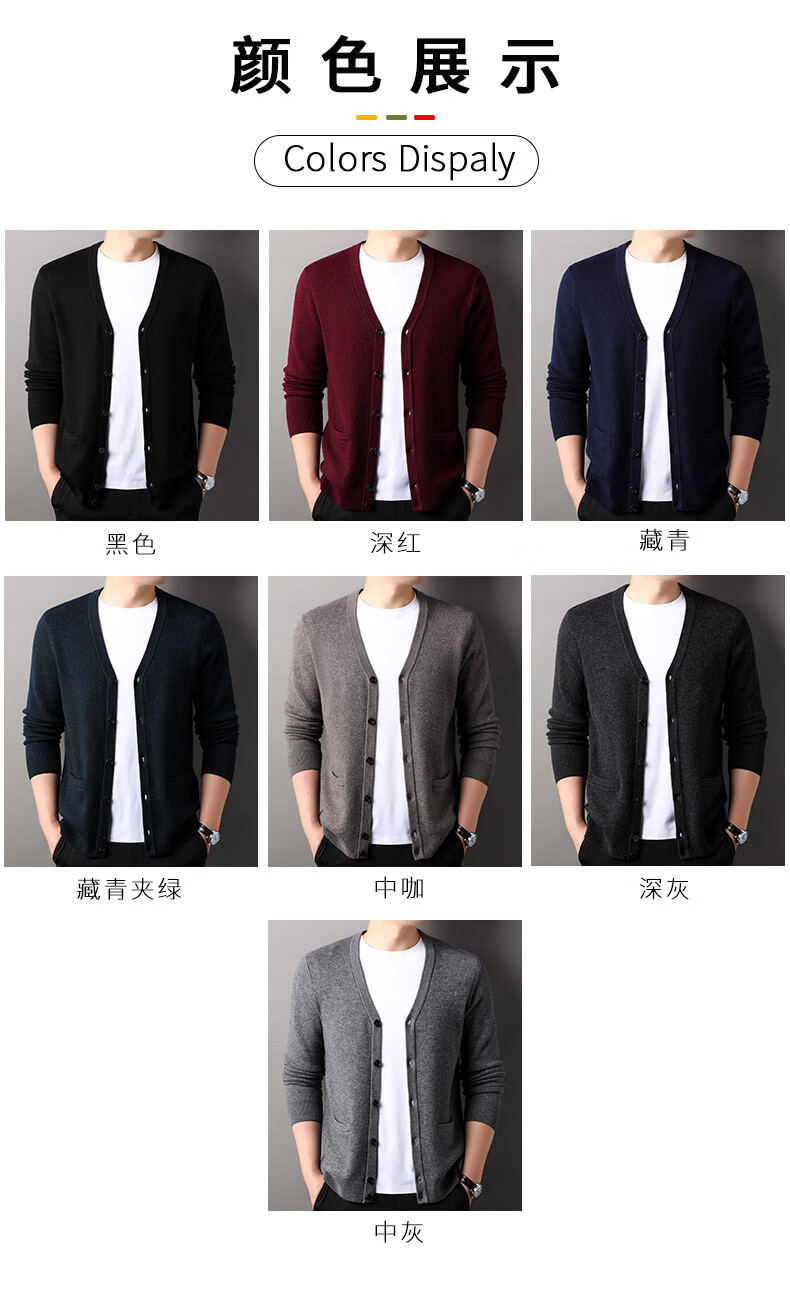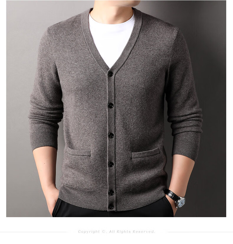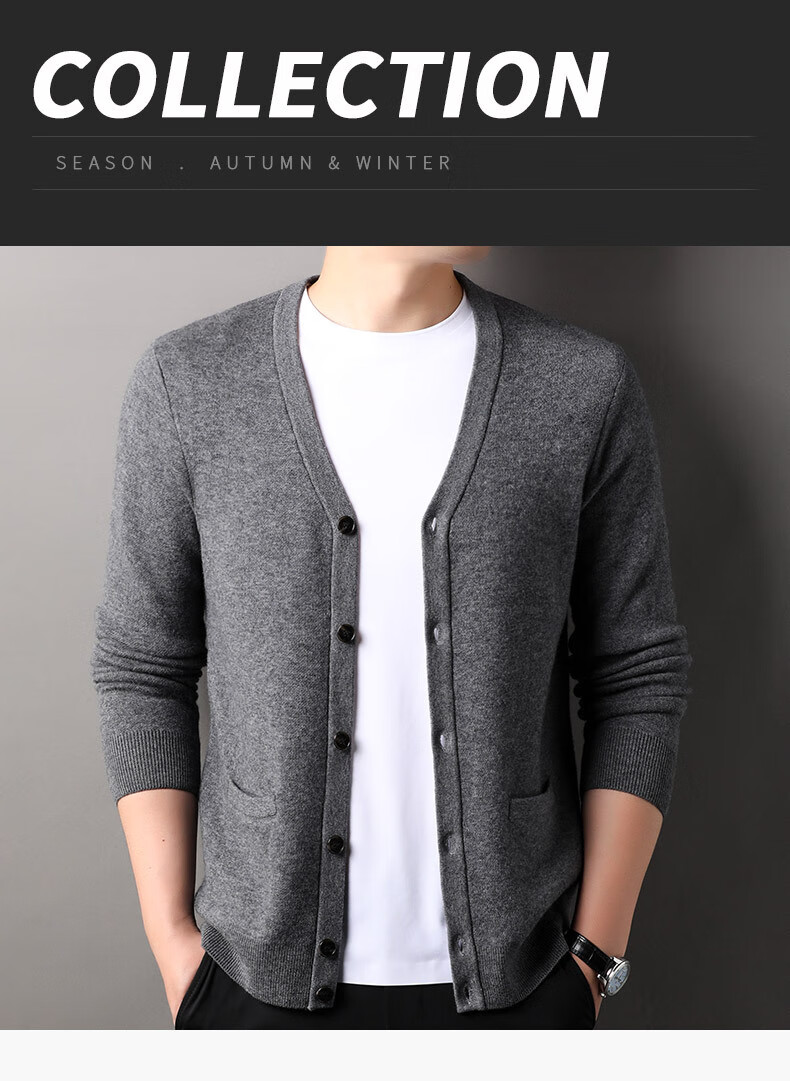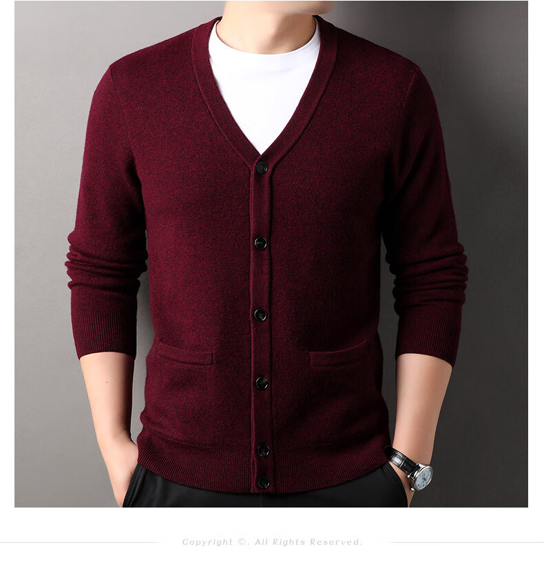 100% wool thickened classic knitted cardigan sweater for men in autumn and winter new pure wool sweater for men's outer wear Zhongcai XL 180/96A(115)