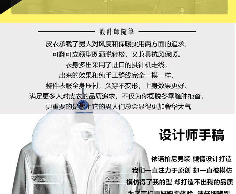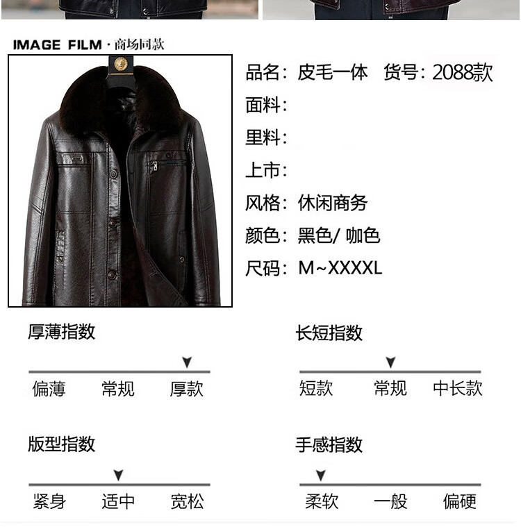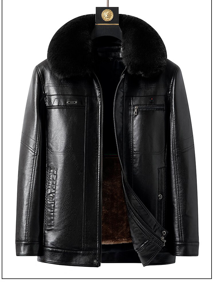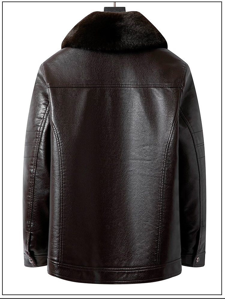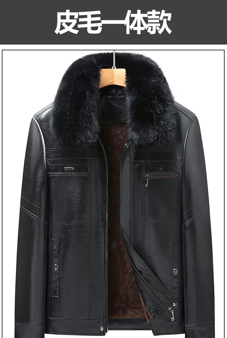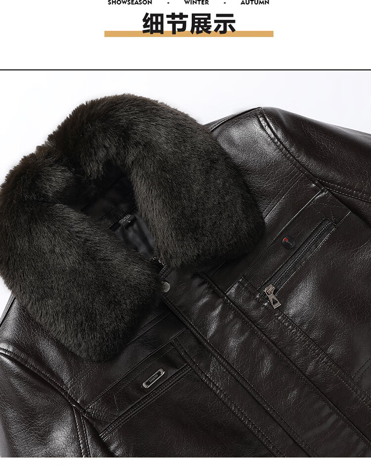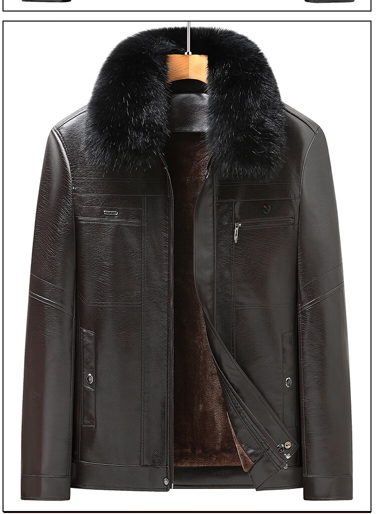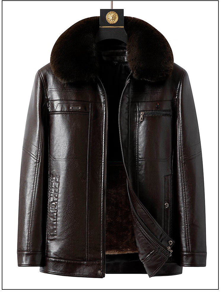 Woodpecker (TUCANO) New Haining Simulated Leather Jacket Men's Velvet Thickened Loose Fur All-in-One Dad's Men's Leather Jacket One-piece Brown/Normal Collar/Removable Fur Collar M 170 95-115 Weight
