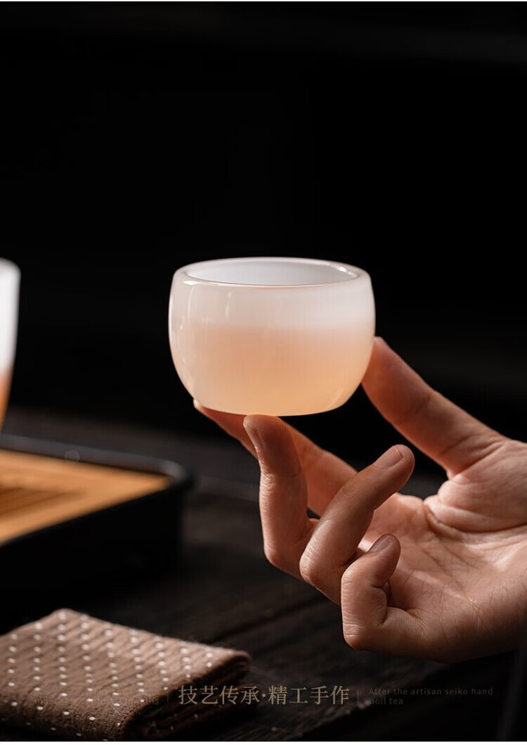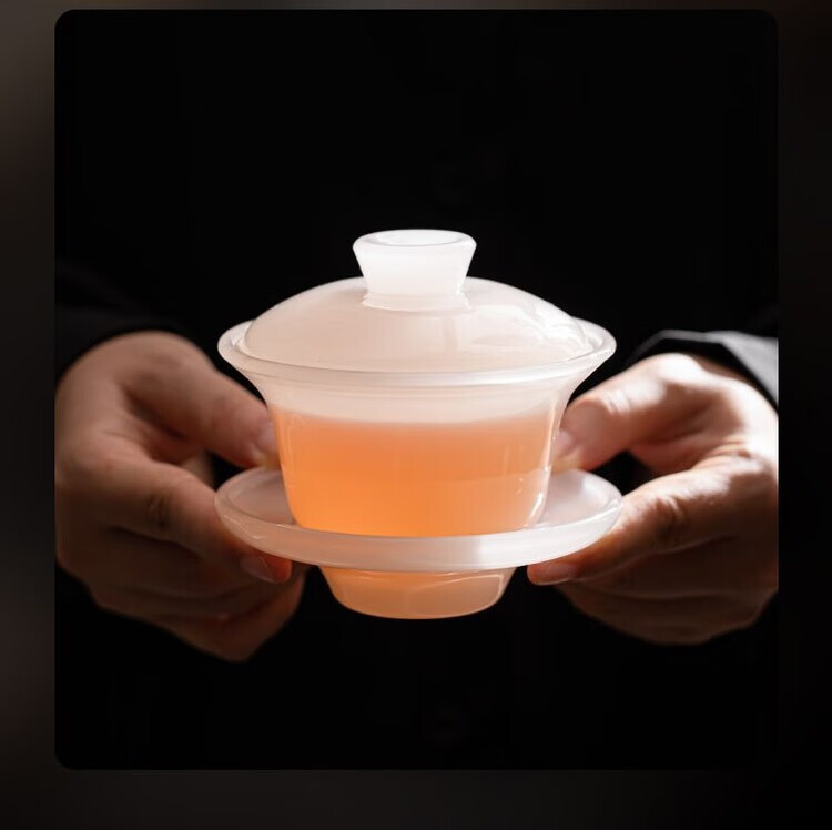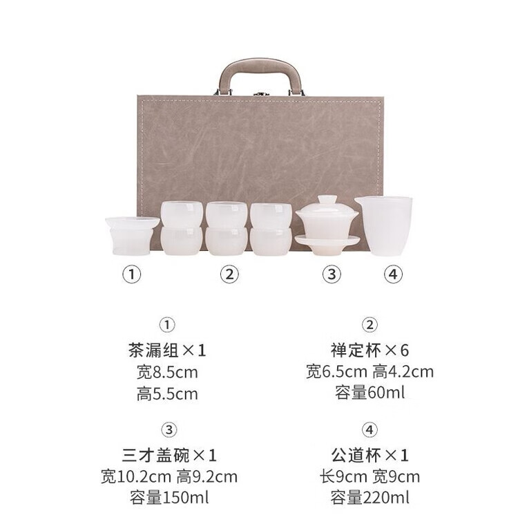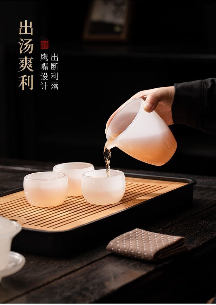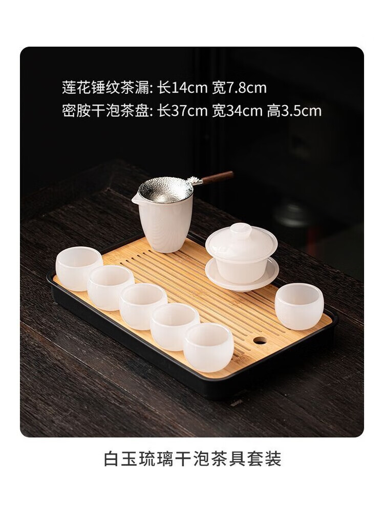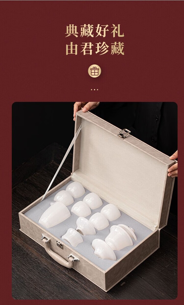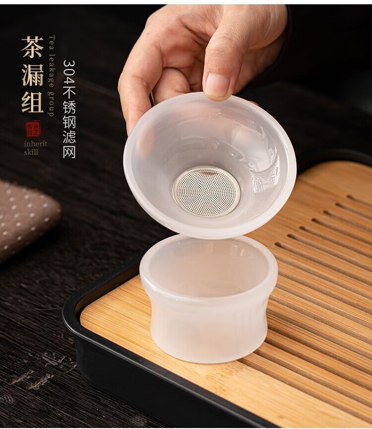 Jian Yang Bingzhong Glaze Tea Set Home High-end White Jade Kung Fu Covered Bowl Tea Cup Heat-Resistant Anti-scalding Chinese Office Tea Set 10 Pieces/Tea Strainer Set/Tea Tray