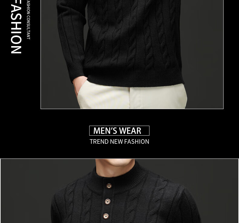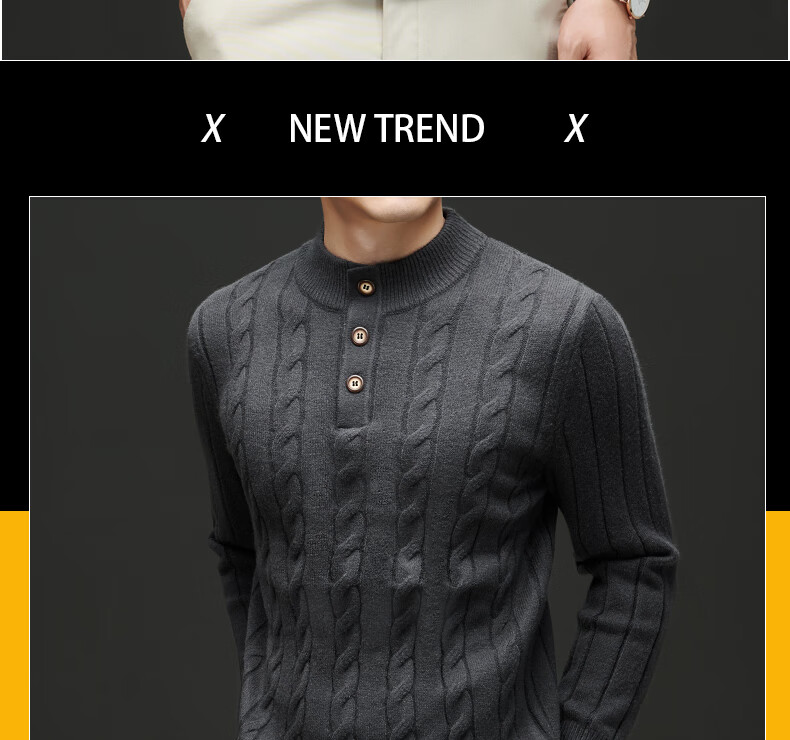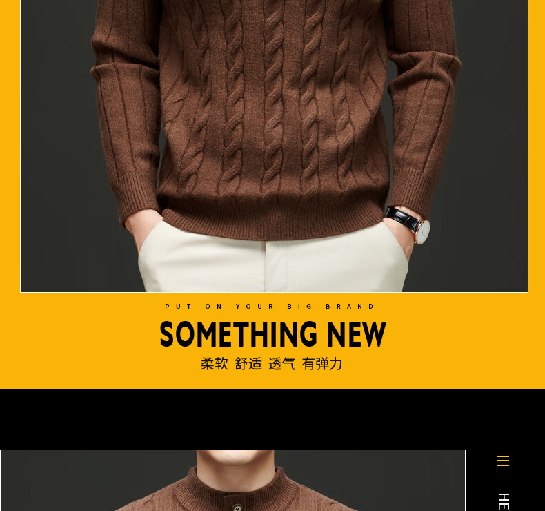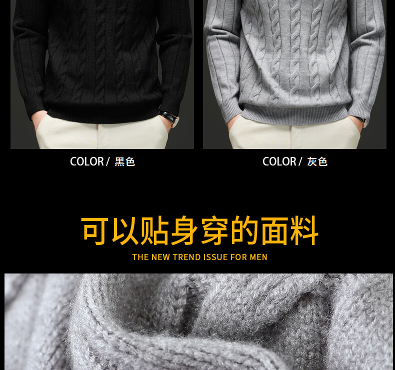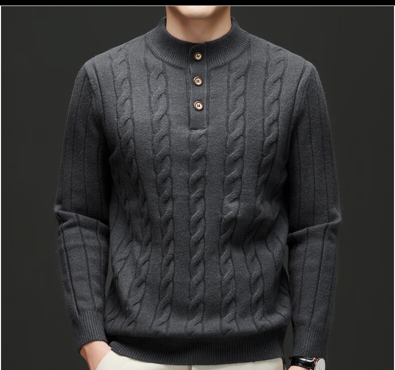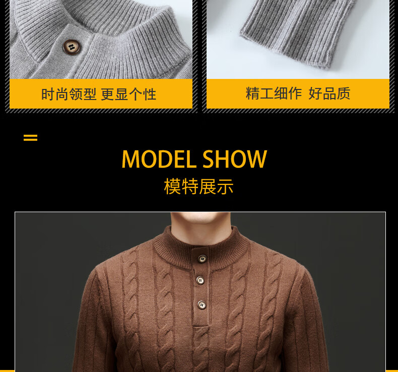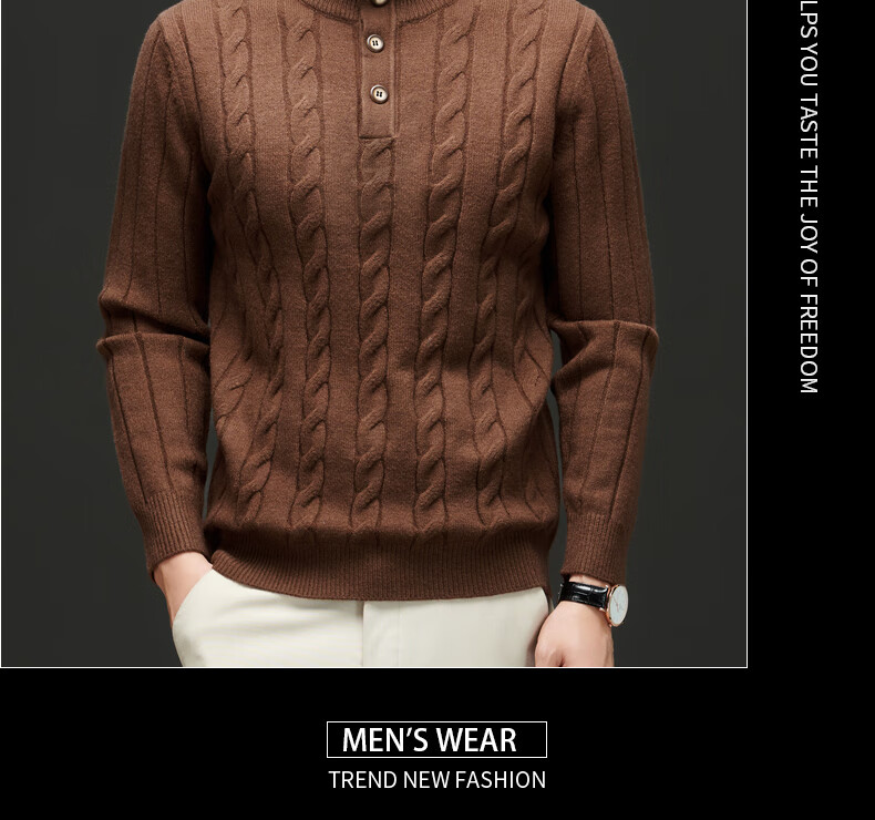 ACOO luxury half turtleneck sweater for men 2025 autumn and winter new fashion trend inner top solid color Henry collar brown S 165 suitable for 105-120Jin Jin equals 0.5 kg