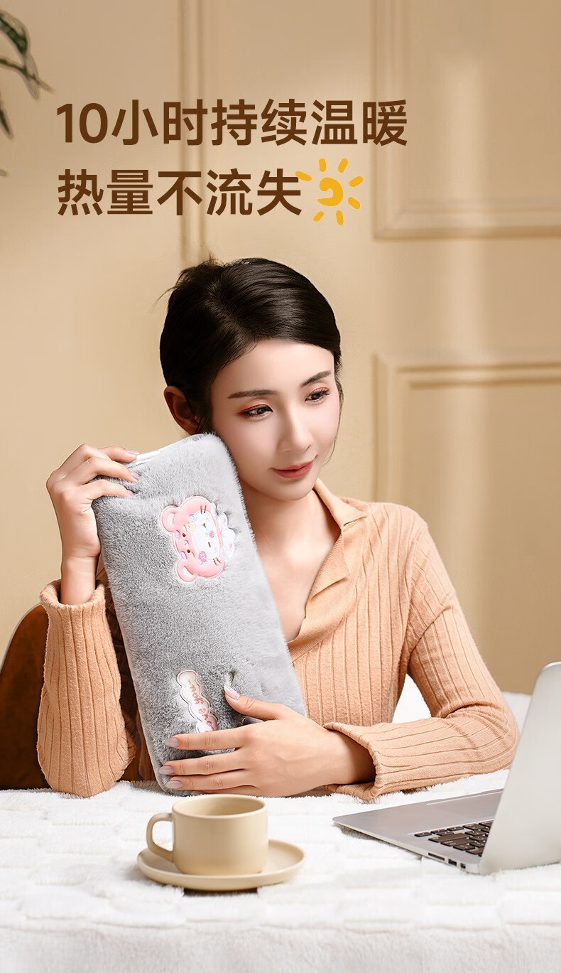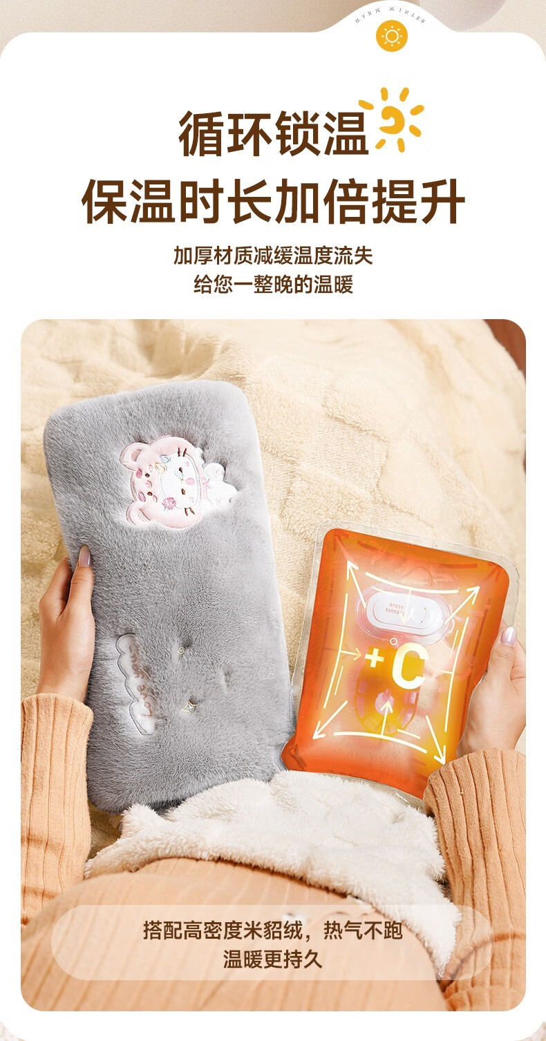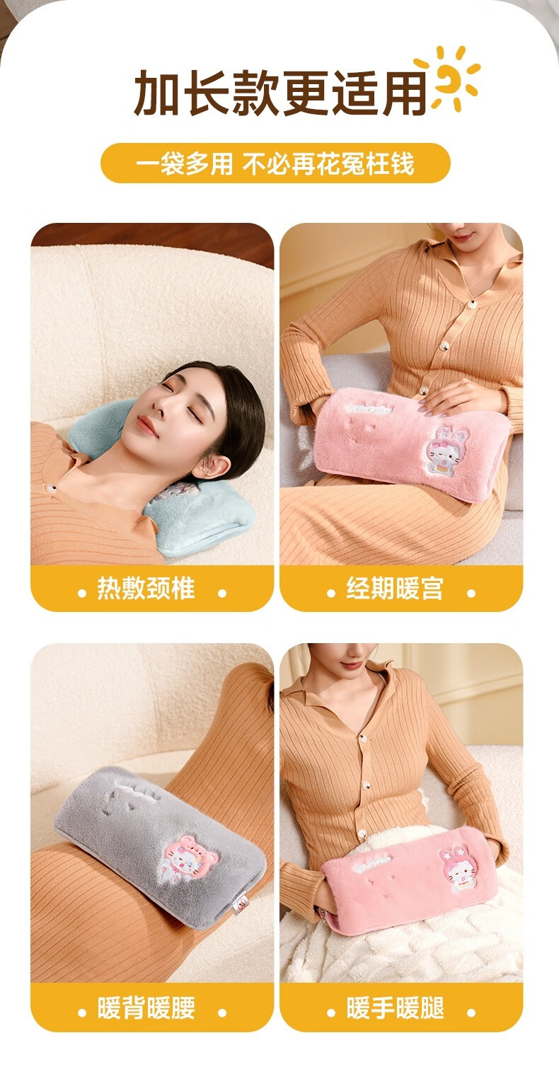 Rechargeable hot water bottle for quilt, extended warm water bottle for baby to warm body and feet, thickened and explosion-proof, 2026 random color, small yellow chicken, quality rabbit plush, water-injected version 500ml