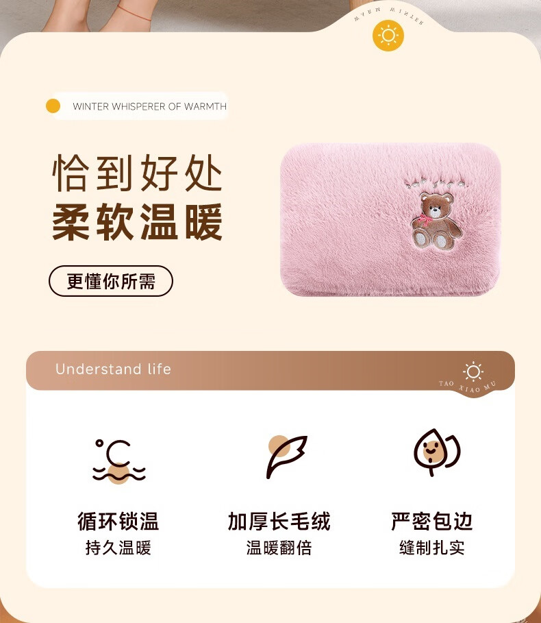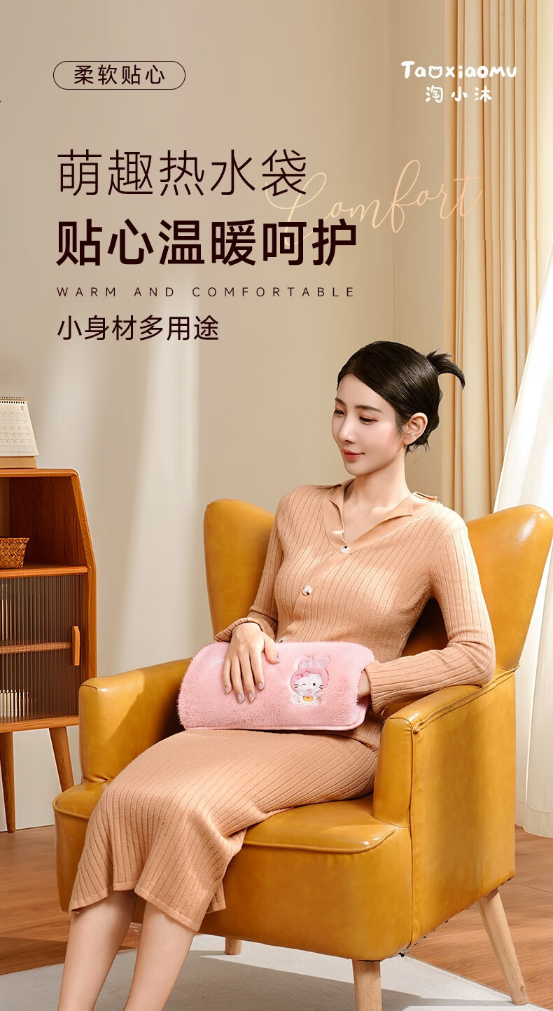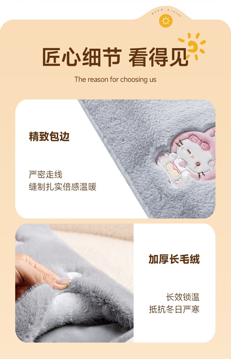 Rechargeable hot water bottle for quilt, extended warm water bottle for baby to warm body and feet, thickened and explosion-proof, 2026 random color, small yellow chicken, quality rabbit plush, water-injected version 500ml