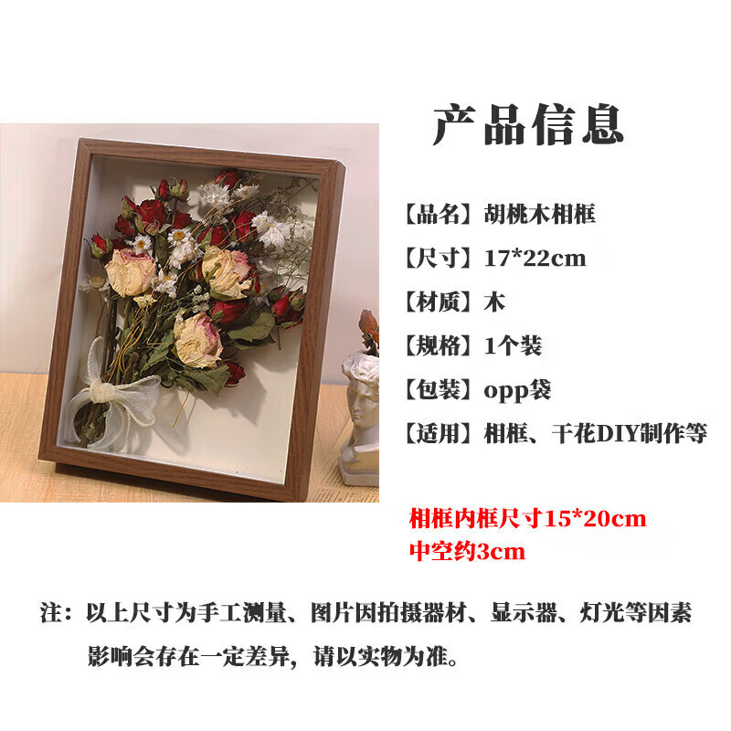 Haofanjie dried flower photo frame hollow photo frame three-dimensional picture frame empty frame flowers and shells 8-inch immortal flower 3cm specimen frame display walnut 8-inch hollow 3cm 17*22cm