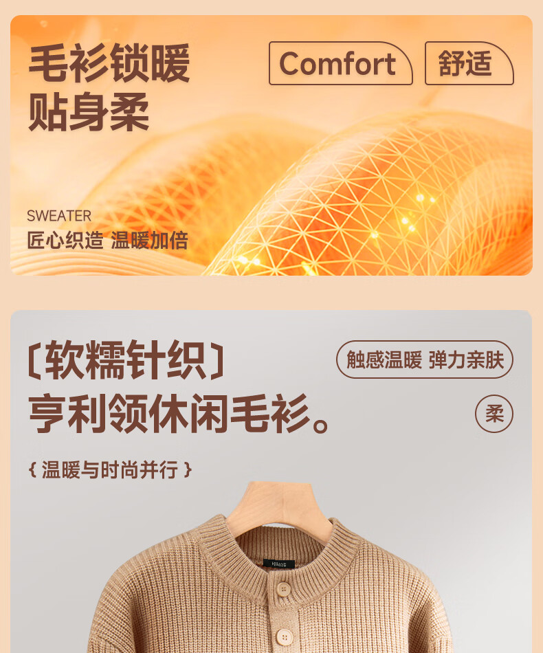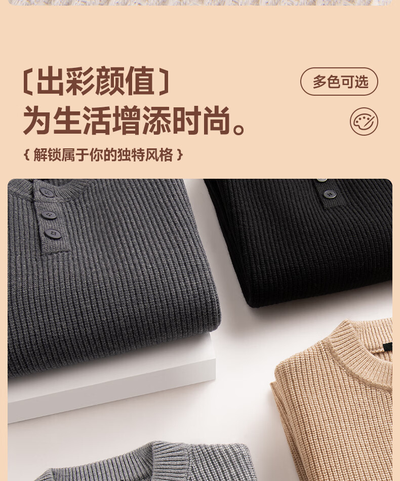 MINISO Henry collar sweater for boys in winter, Korean gray high-end knitted sweater for men, soft and skin-friendly heavy pullover, thick and warm, light gray (solid color) M/170 (Priority for collection and purchase)