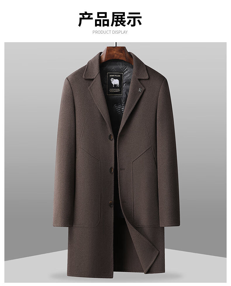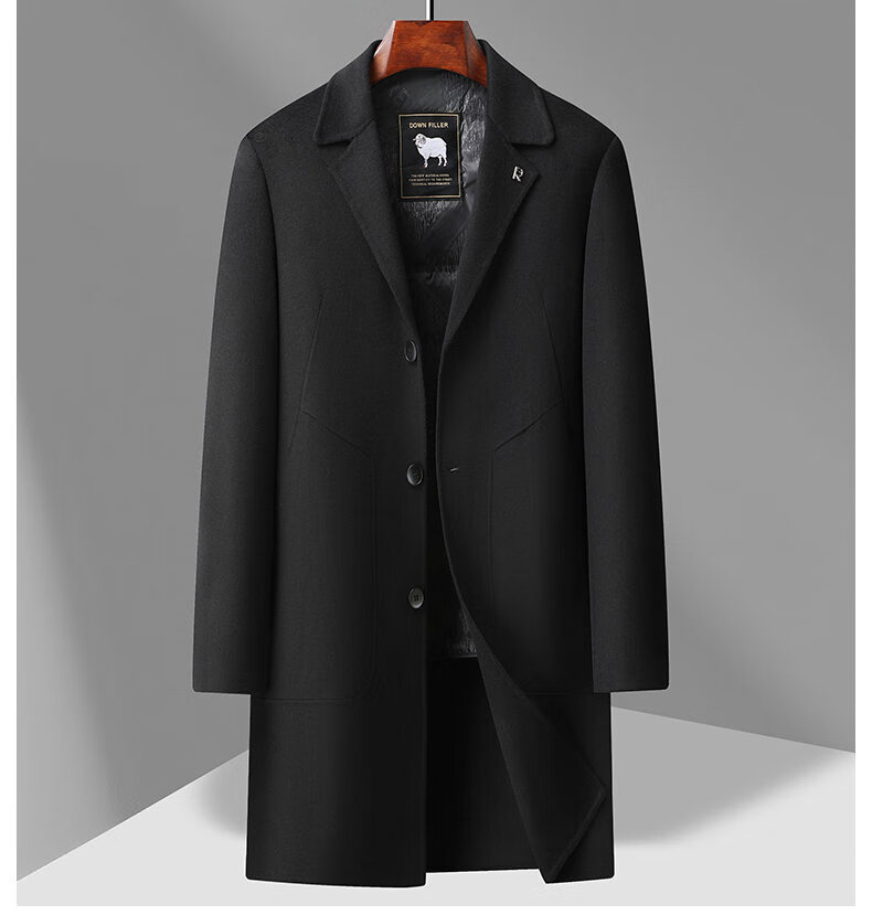 Winter mid-length double-sided wool coat for men, woolen coat for men, goose down lining, thickened woolen woolen windbreaker, dark gray L (120-140)