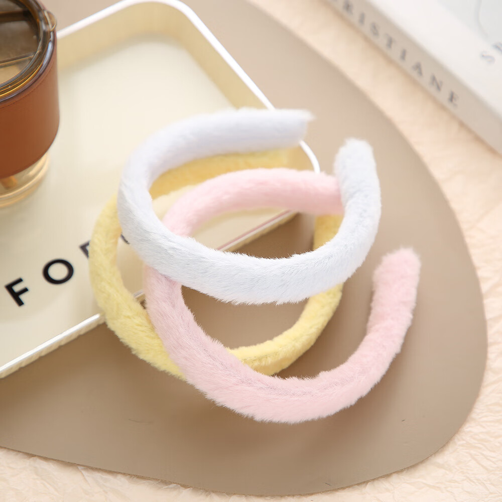 Simple and cute plush headband for women in autumn and winter, face wash and makeup, Internet celebrity hair press headband, high skull hair bundle, hairpin headdress, white 1 piece