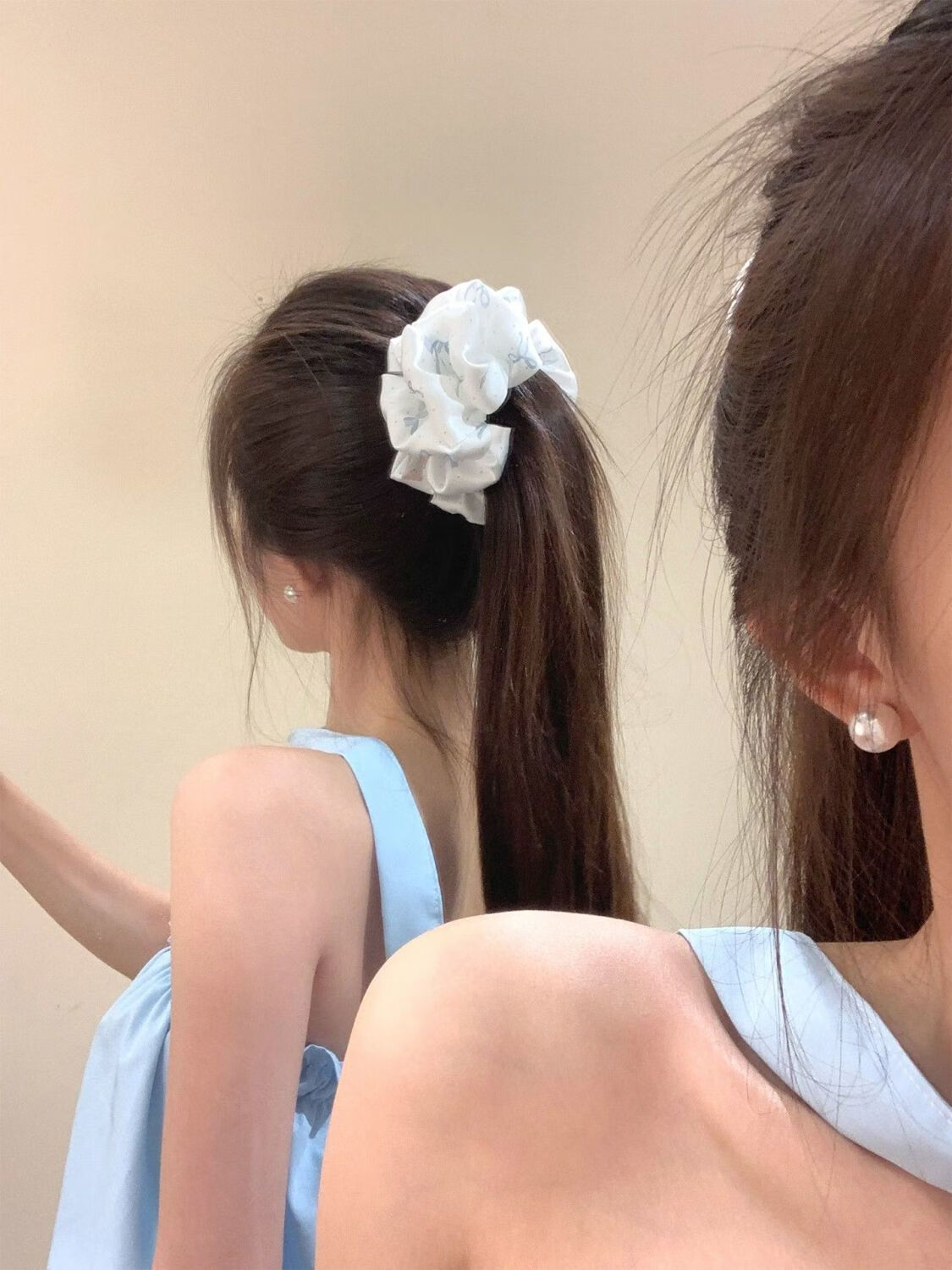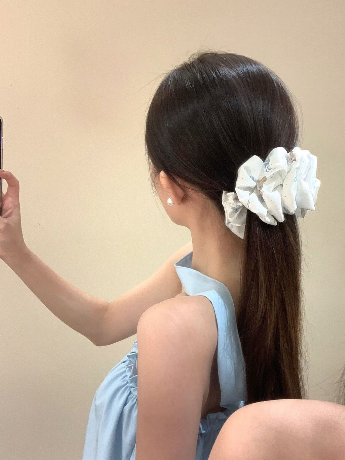Korean style fabric three-dimensional bow banana clip, feminine ponytail clip on the back of the head, half-tied shark clip headdress, blue bow banana clip