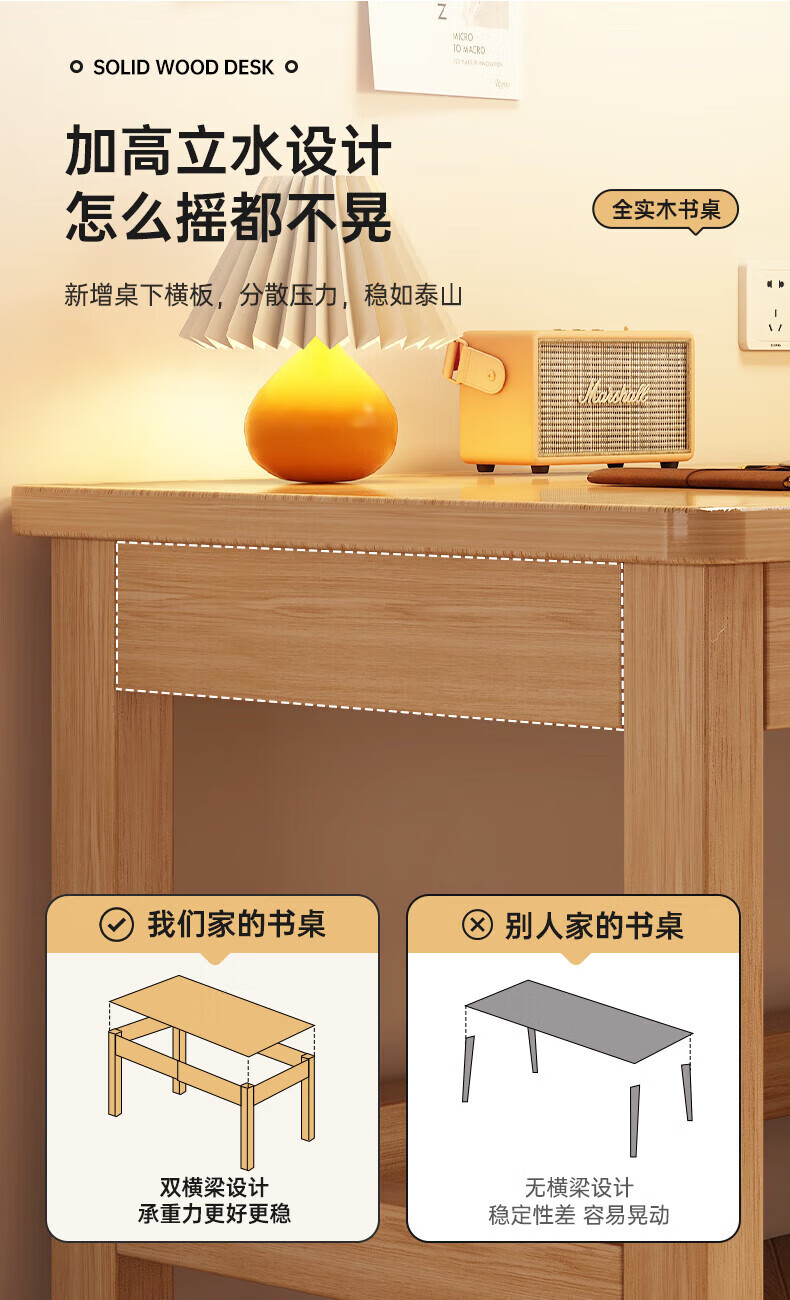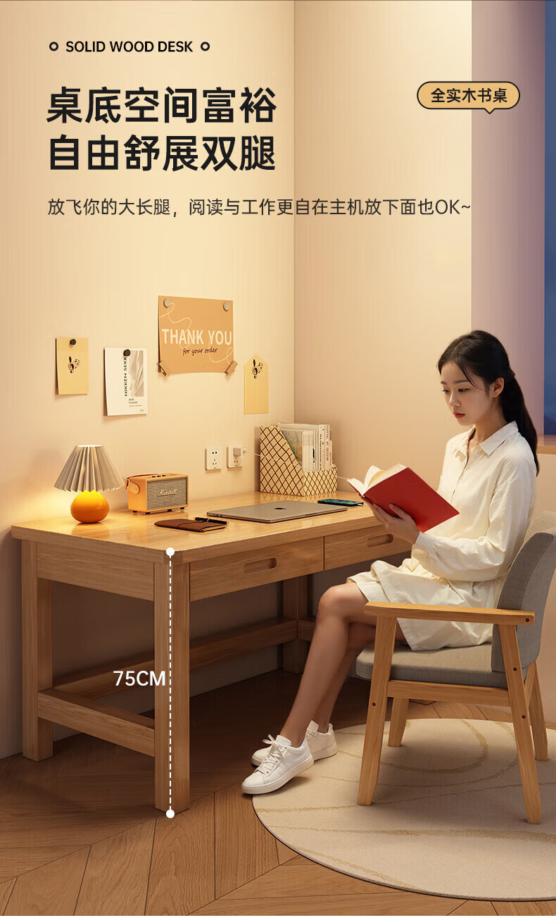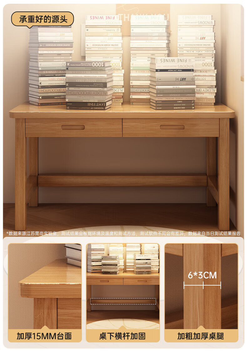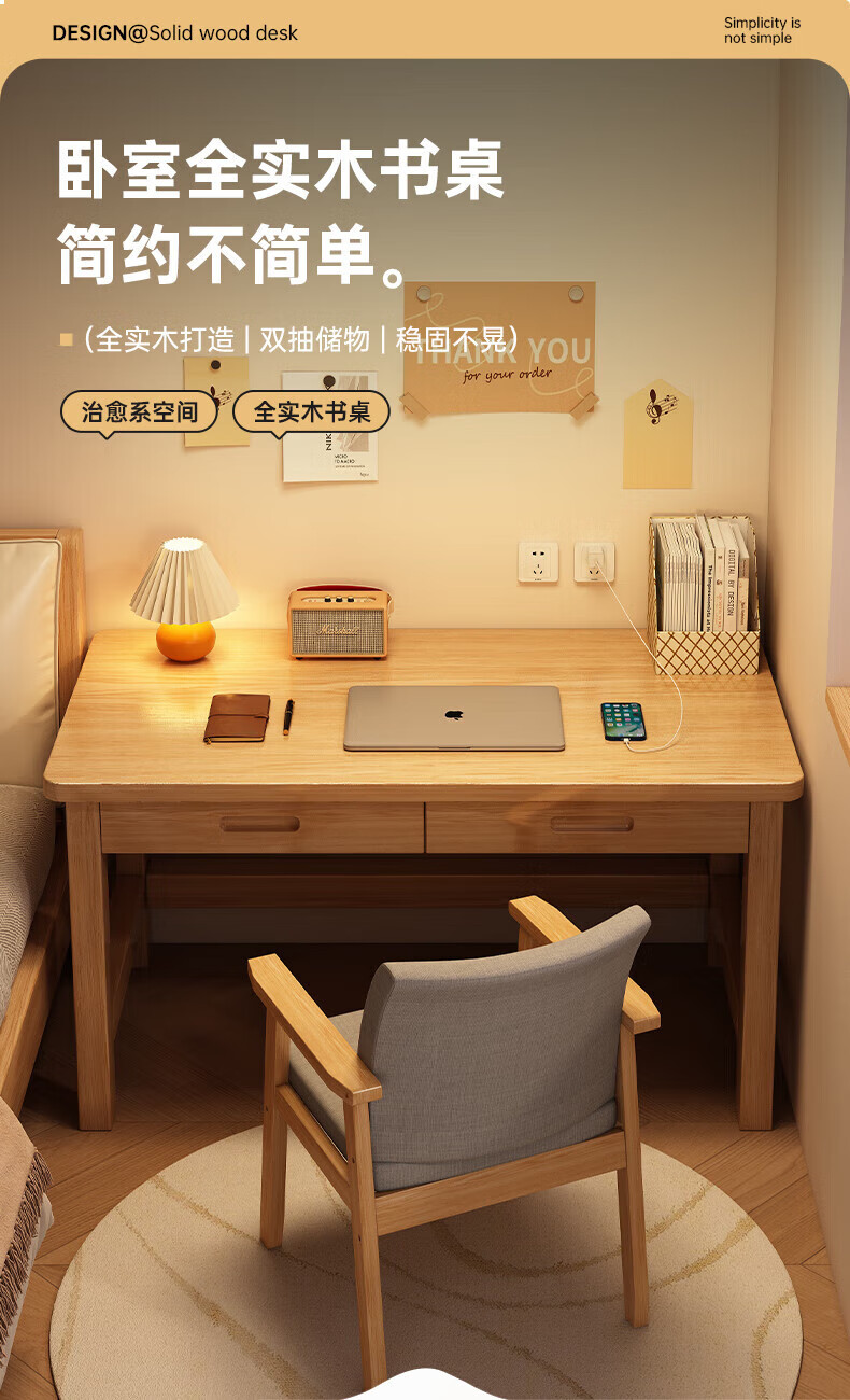 Desk student home study desk writing desk simple workbench office desk bedroom desktop computer table with drawer classic solid wood single table solid wood color 80*50CM