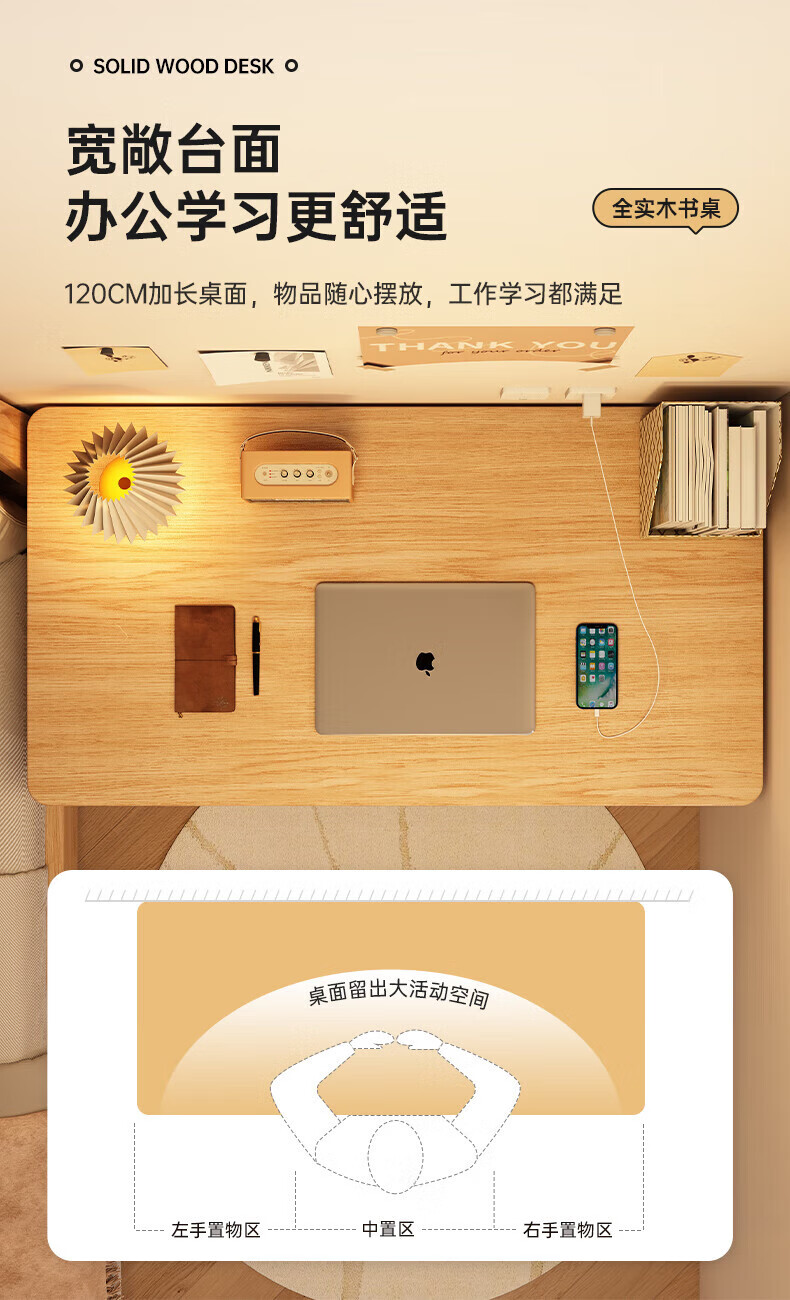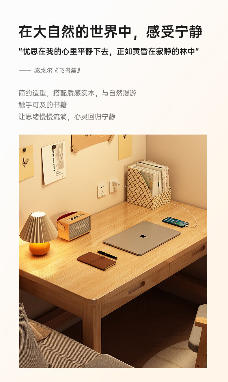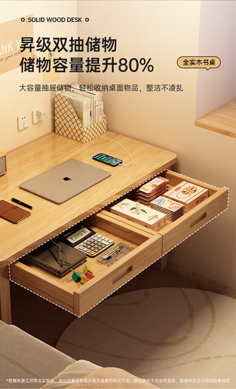 Desk student home study desk writing desk simple workbench office desk bedroom desktop computer table with drawer classic solid wood single table solid wood color 80*50CM
