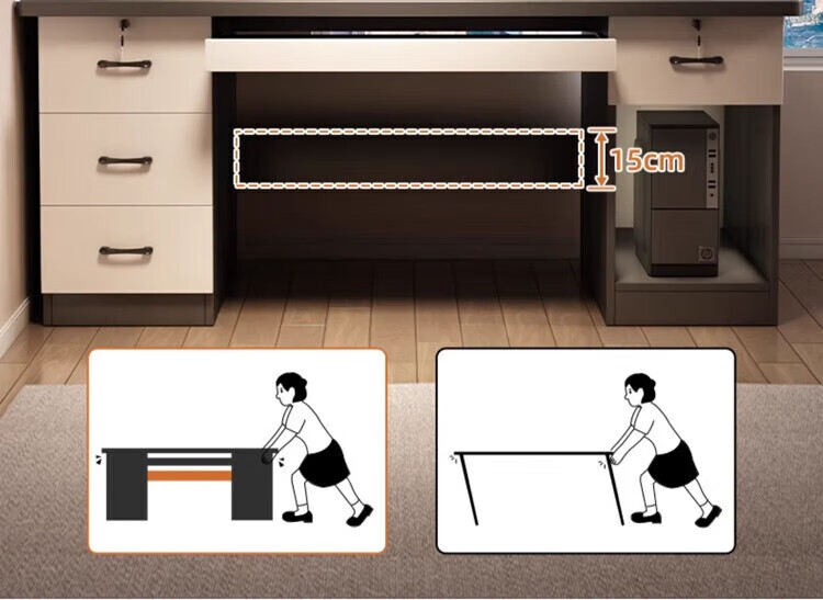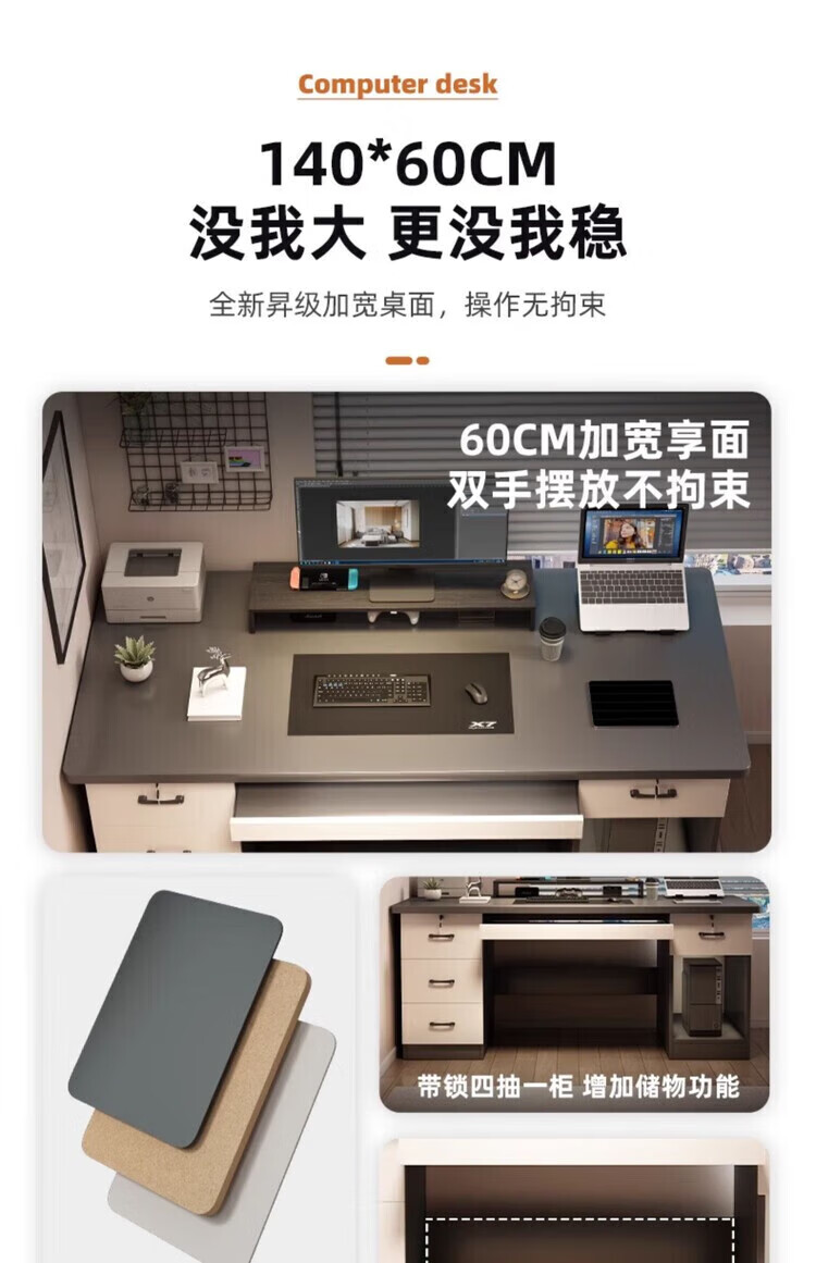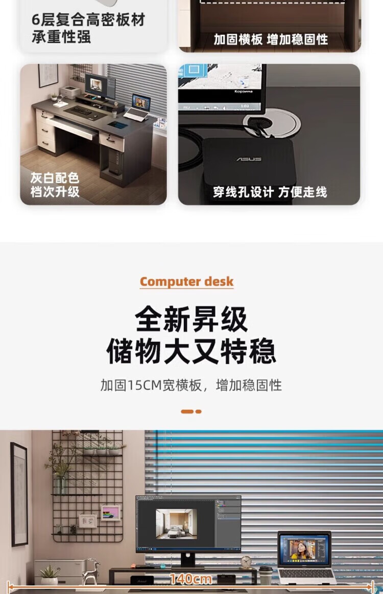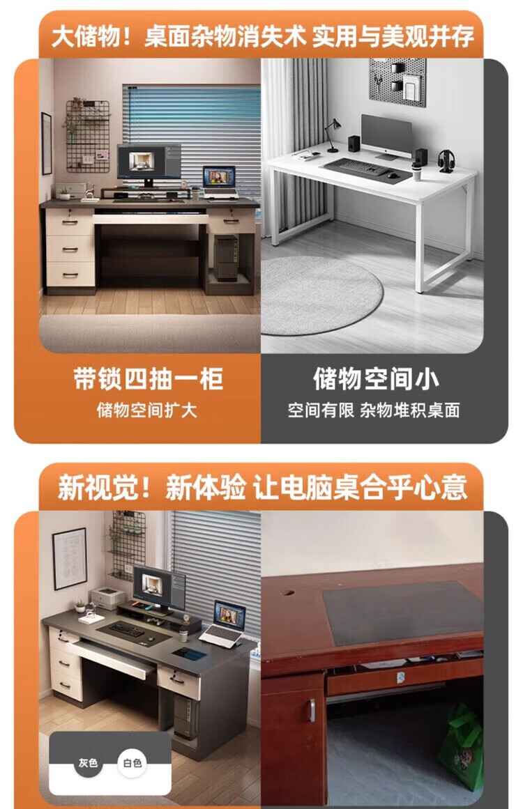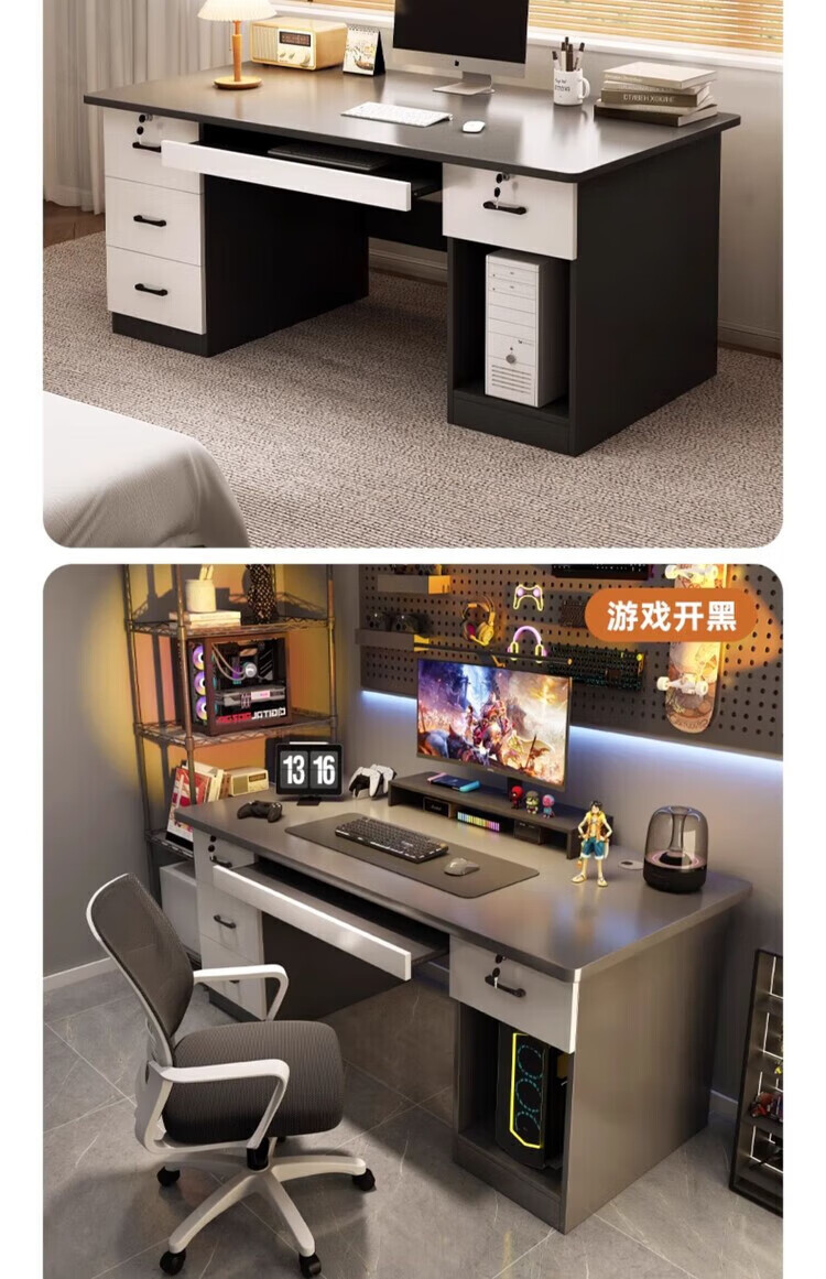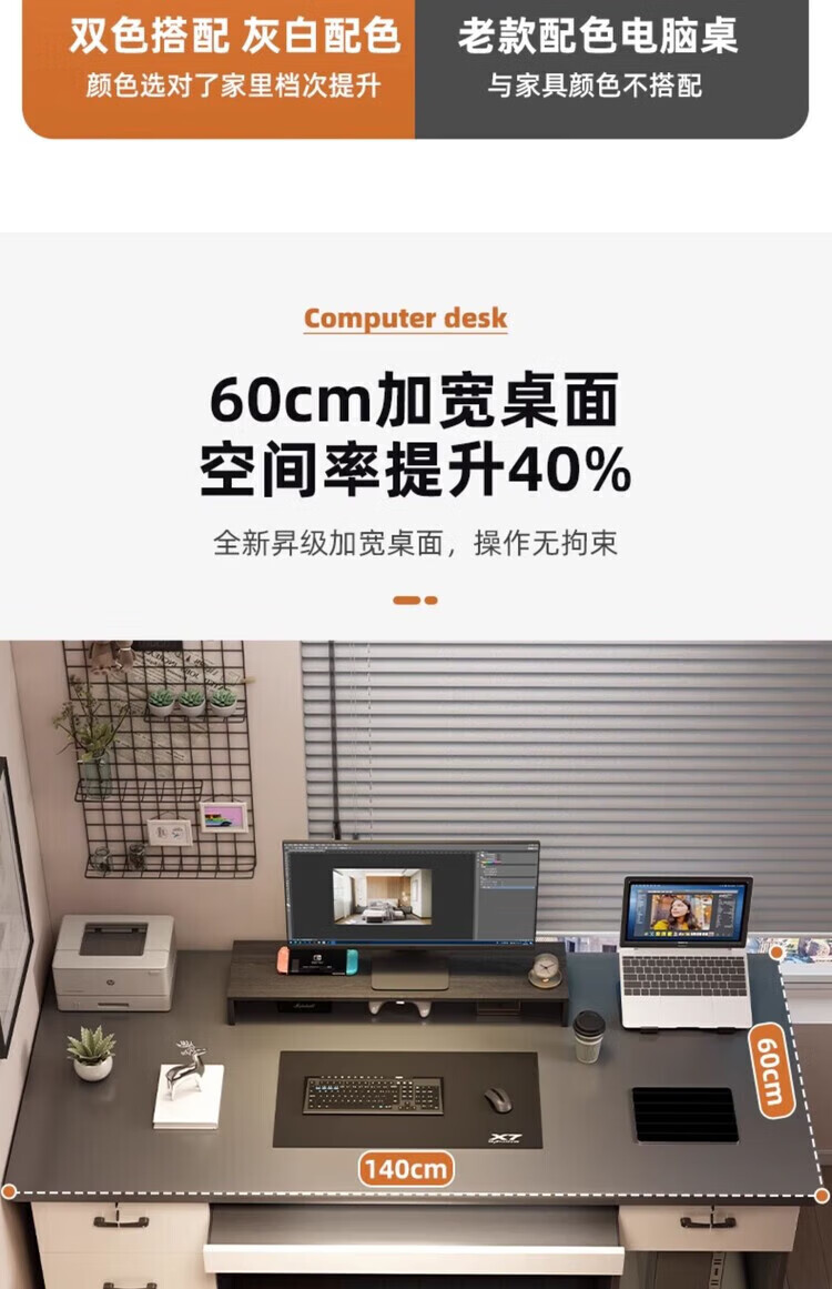 Solid wood core computer desk desktop with drawers simple high-end office desk home host bedroom desk writing desk solid wood ecological board Tianchen cedar gray 120CM