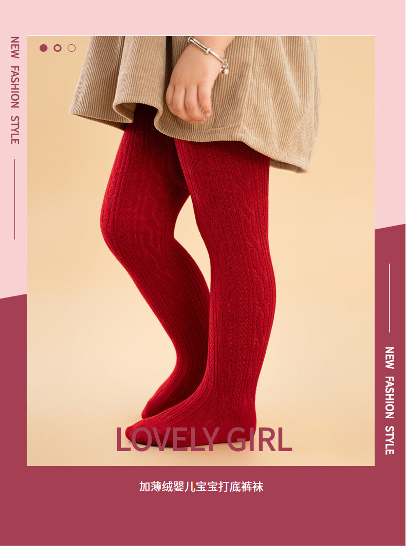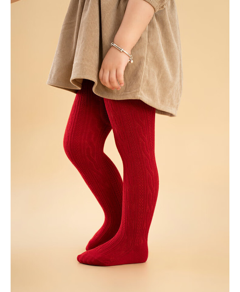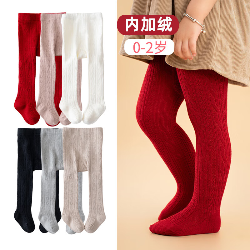 Zi Jiafu Baby Socks Autumn and Winter Girls Leggings Autumn and Winter Outerwear Thin Velvet Baby Girls Twist Pattern Children's Pantyhose Red One Size S0-12 Months