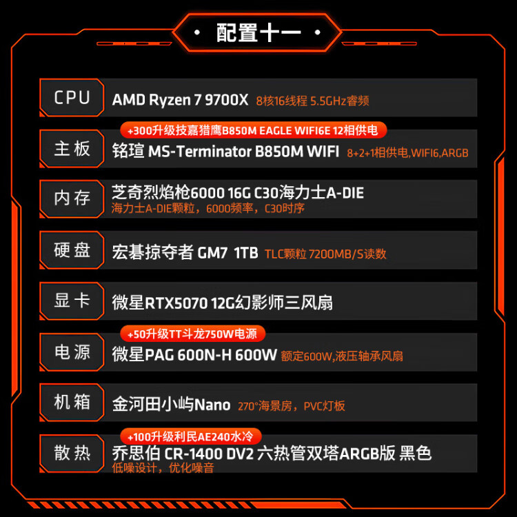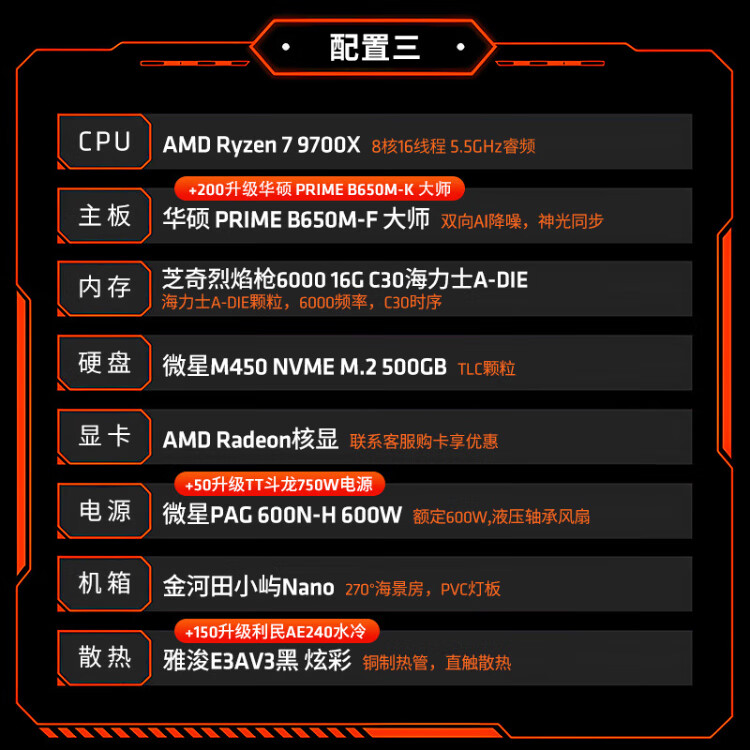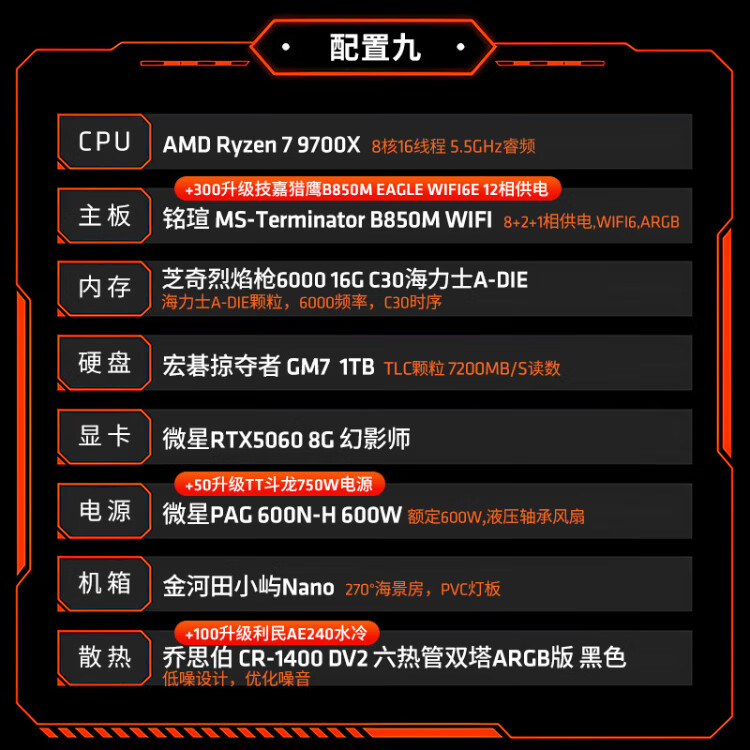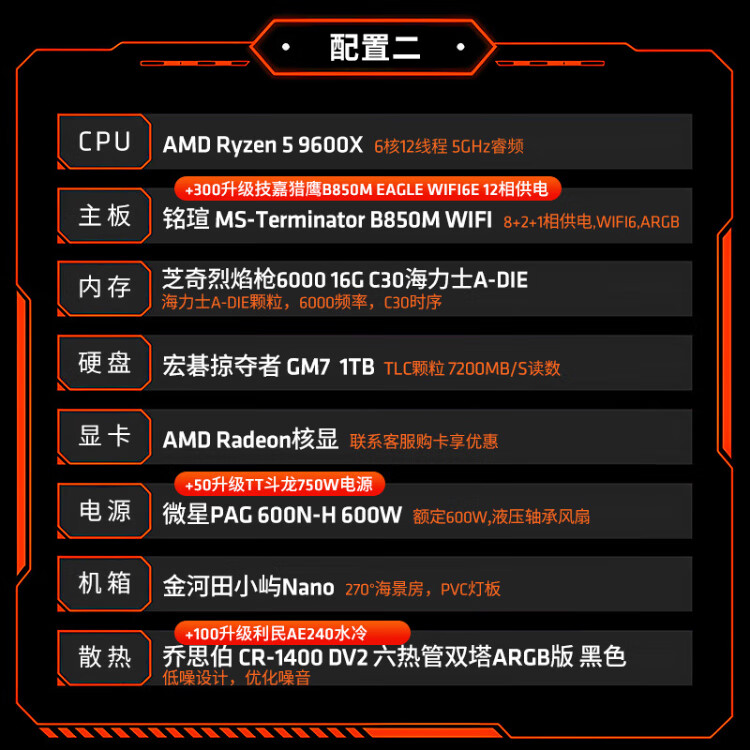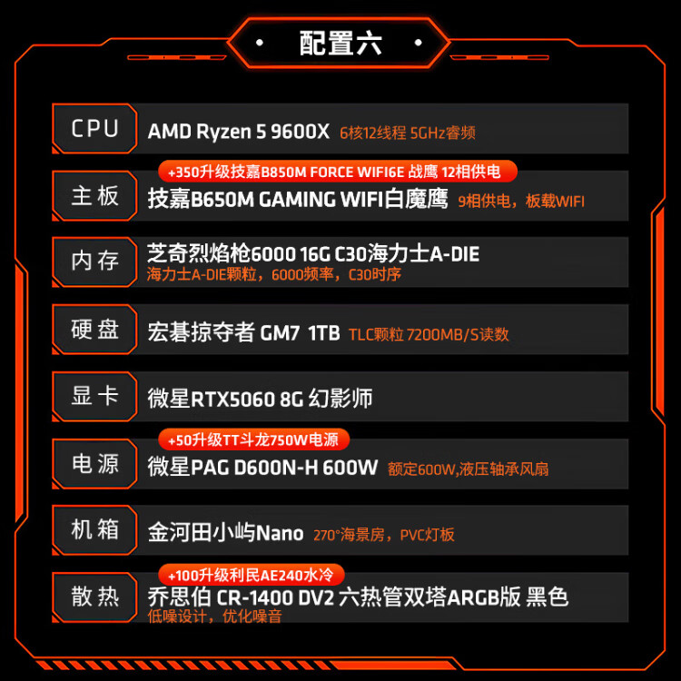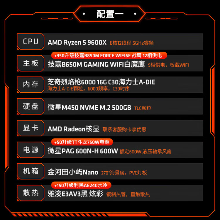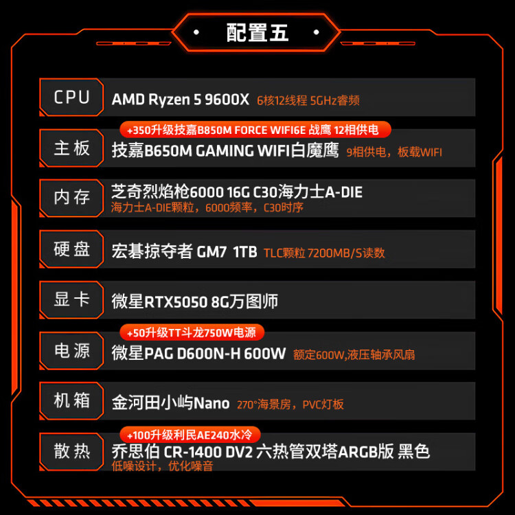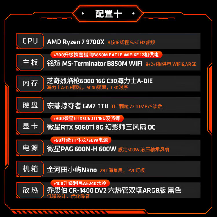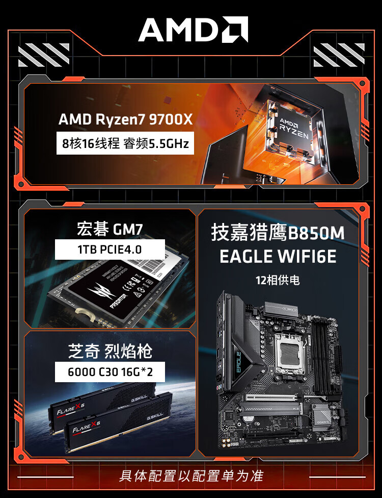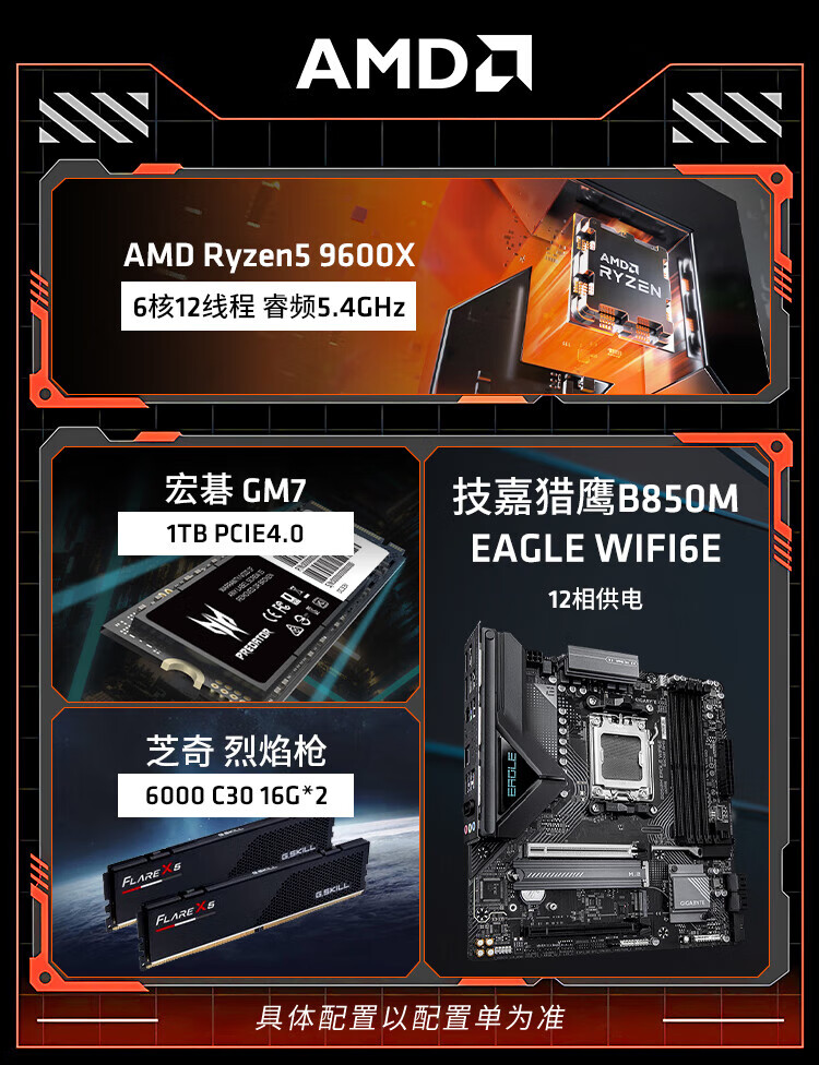 AMD Ryzen 9600X 9700X/5060/5070 game console computer desktop assembly computer host DIY complete machine assembly machine sea view room chassis configuration three 9700X/16G/500G