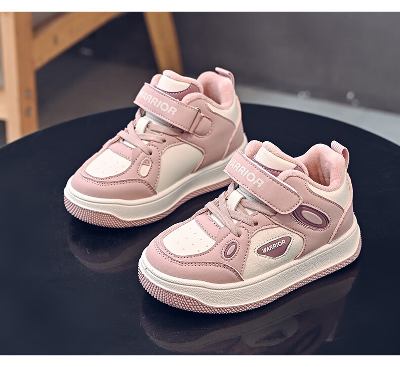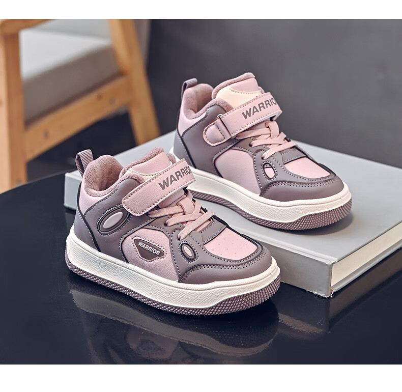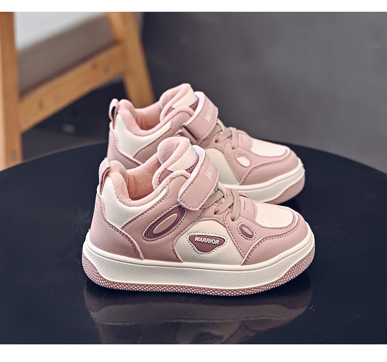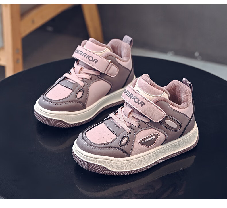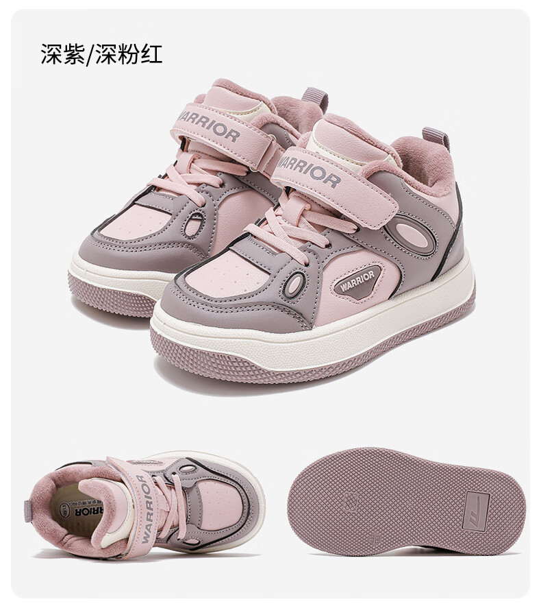 Pull-back children's shoes, girls' velvet sneakers, 2025 new autumn and winter big children's winter shoes, warm girls' cotton shoes, children's shoes, dark purple/dark pink 37, inner length 23.7/suitable for foot length 22.7