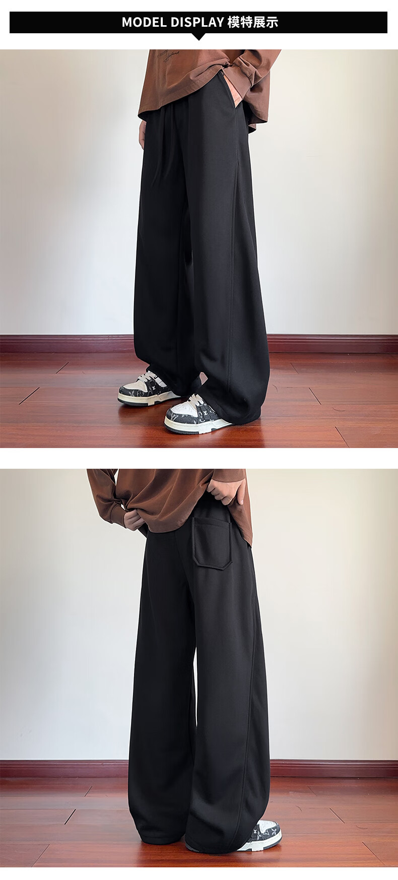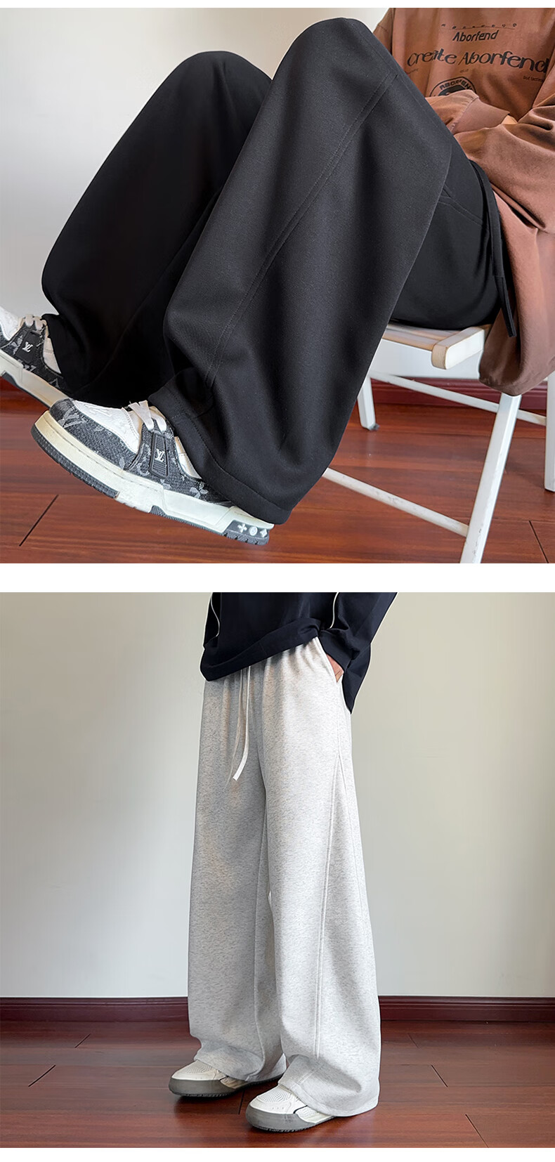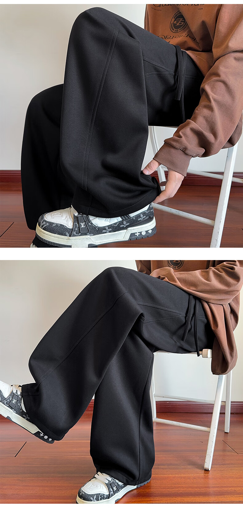 NYING fleece pants men's 25 autumn and winter new trendy brand retro warm sports casual pants large size loose straight trousers black fleece XL (130-150Jin Jin equals 0.5 kg)