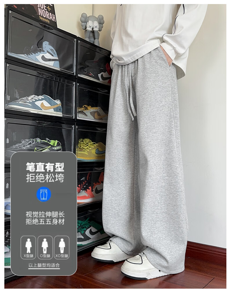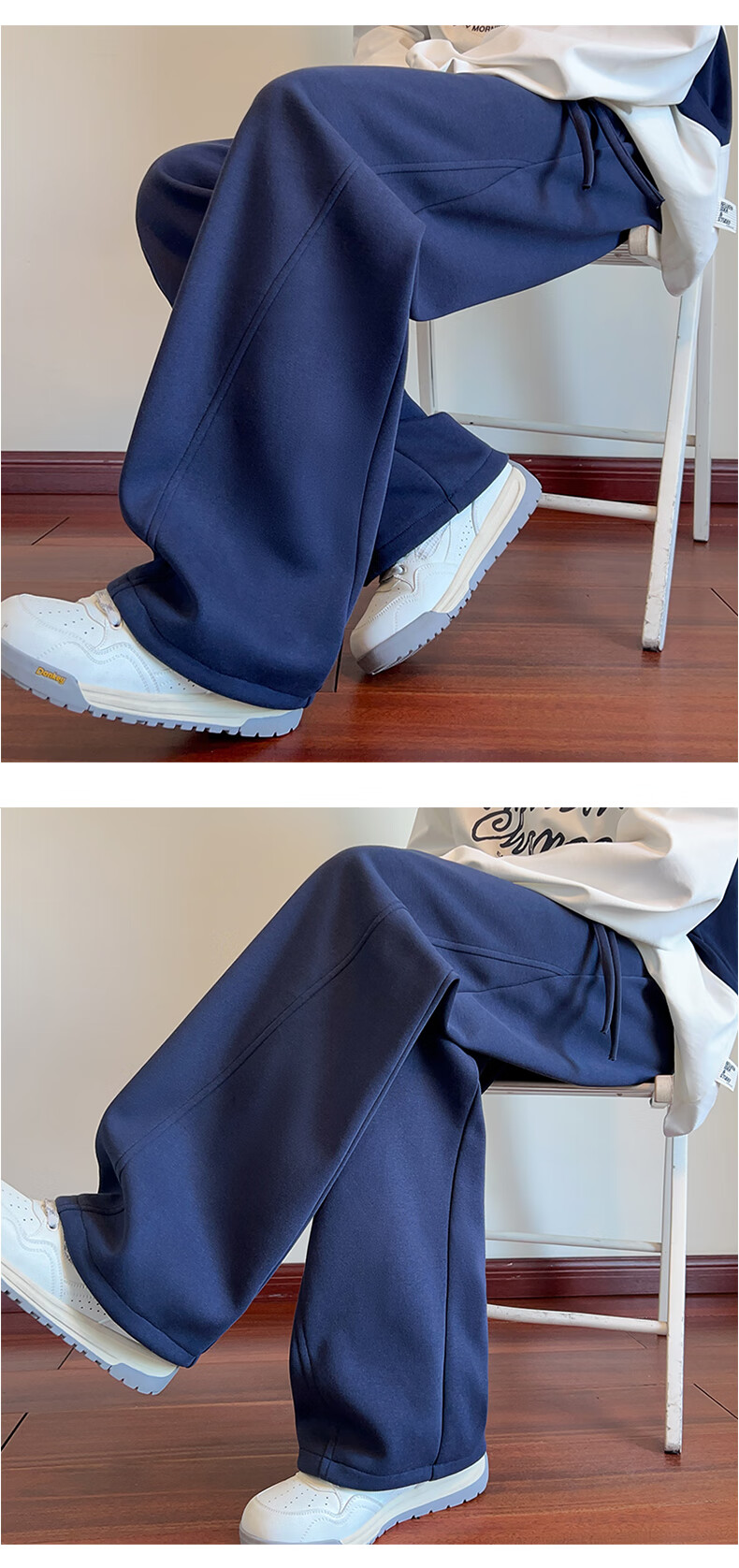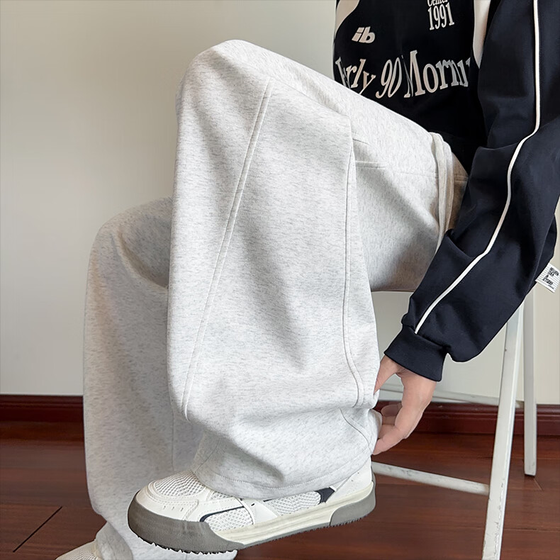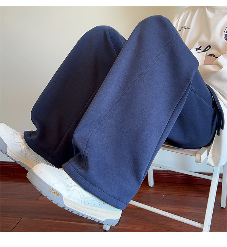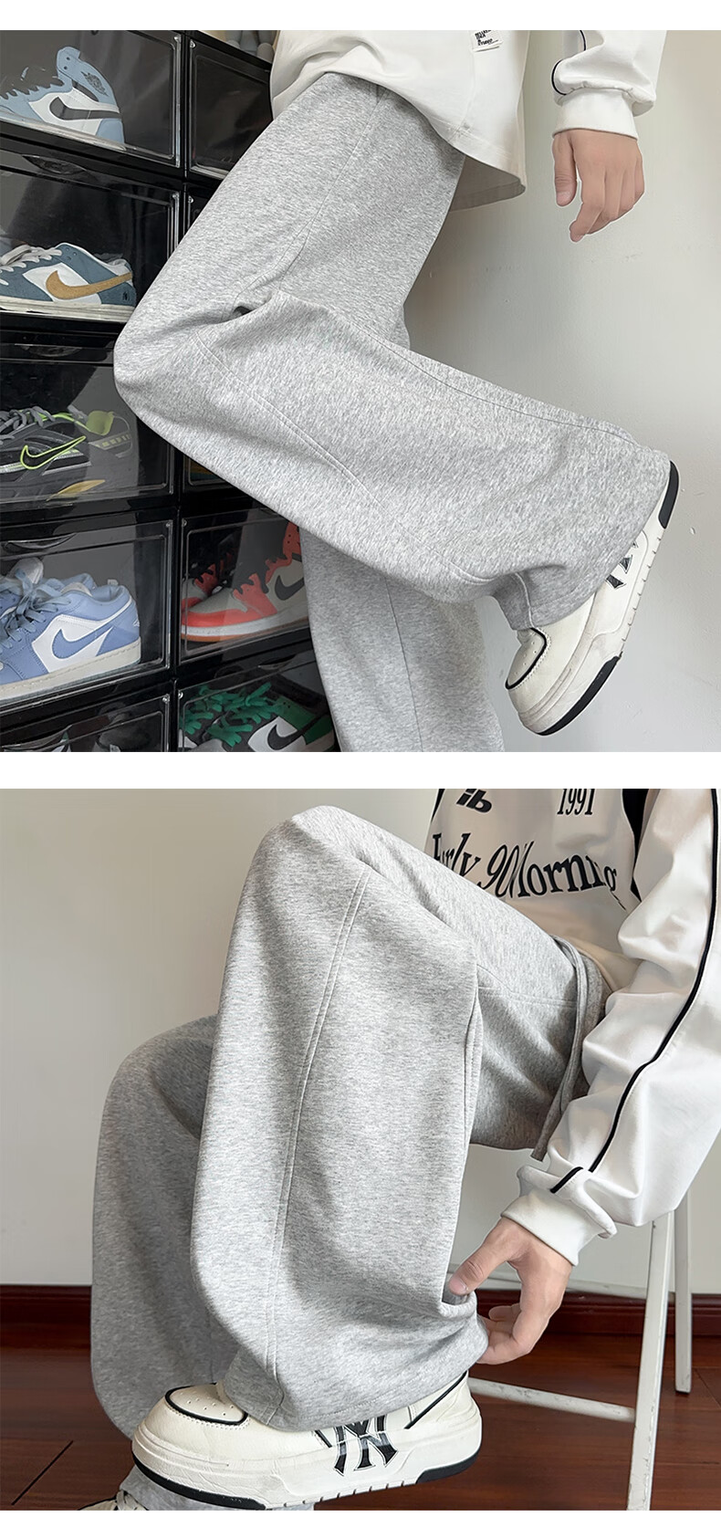 NYING fleece pants men's 25 autumn and winter new trendy brand retro warm sports casual pants large size loose straight trousers black fleece XL (130-150Jin Jin equals 0.5 kg)