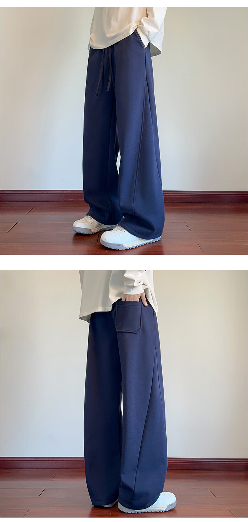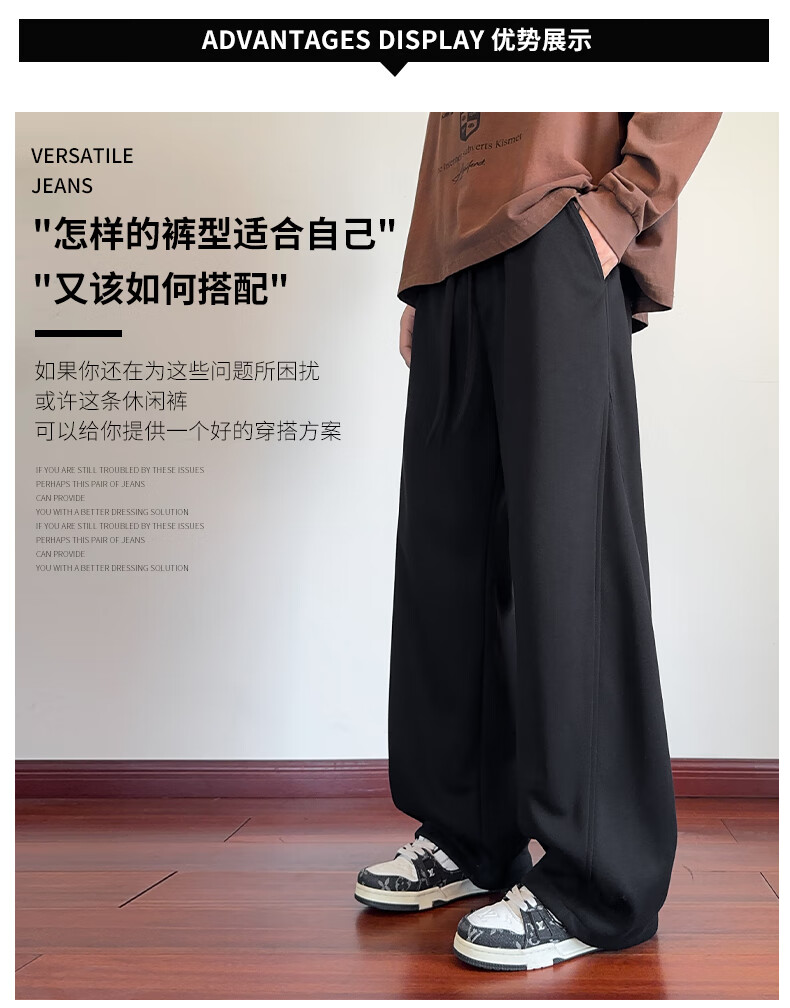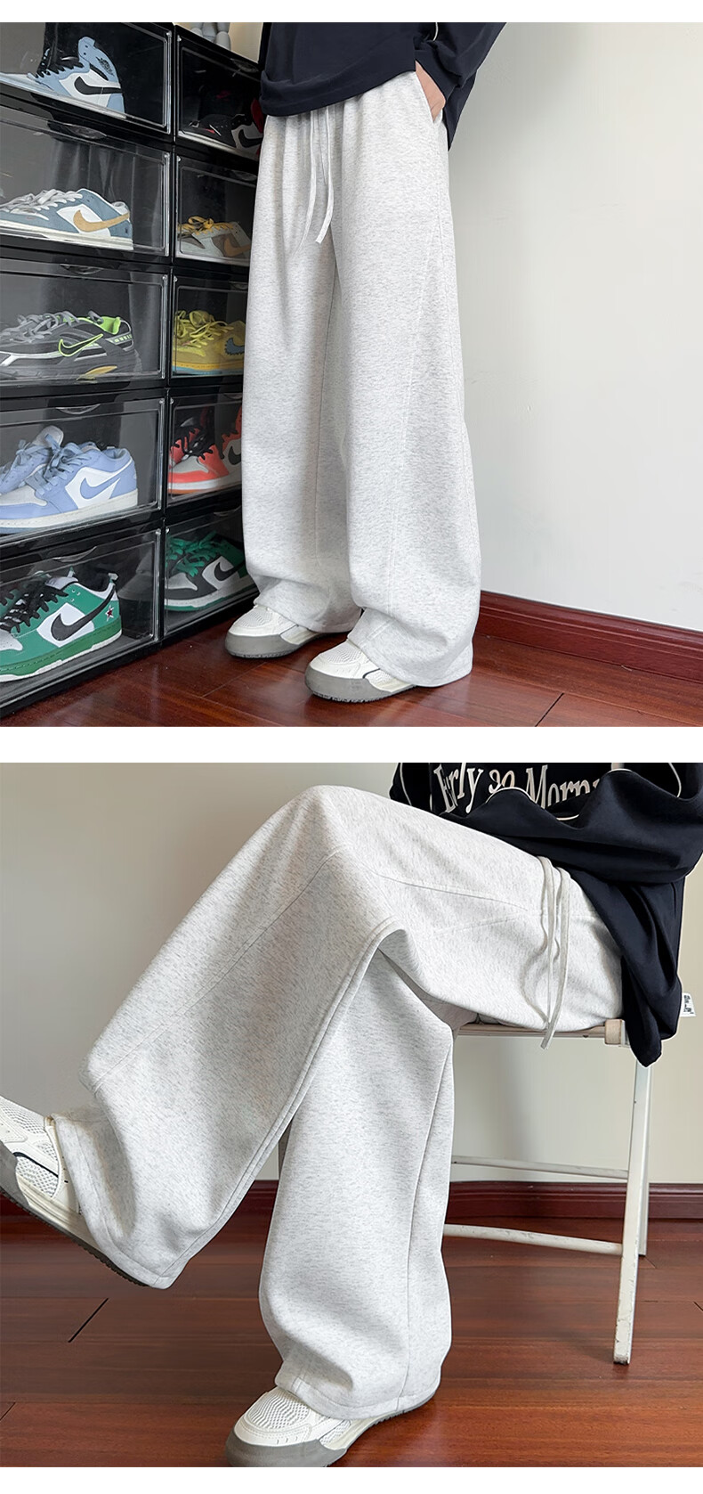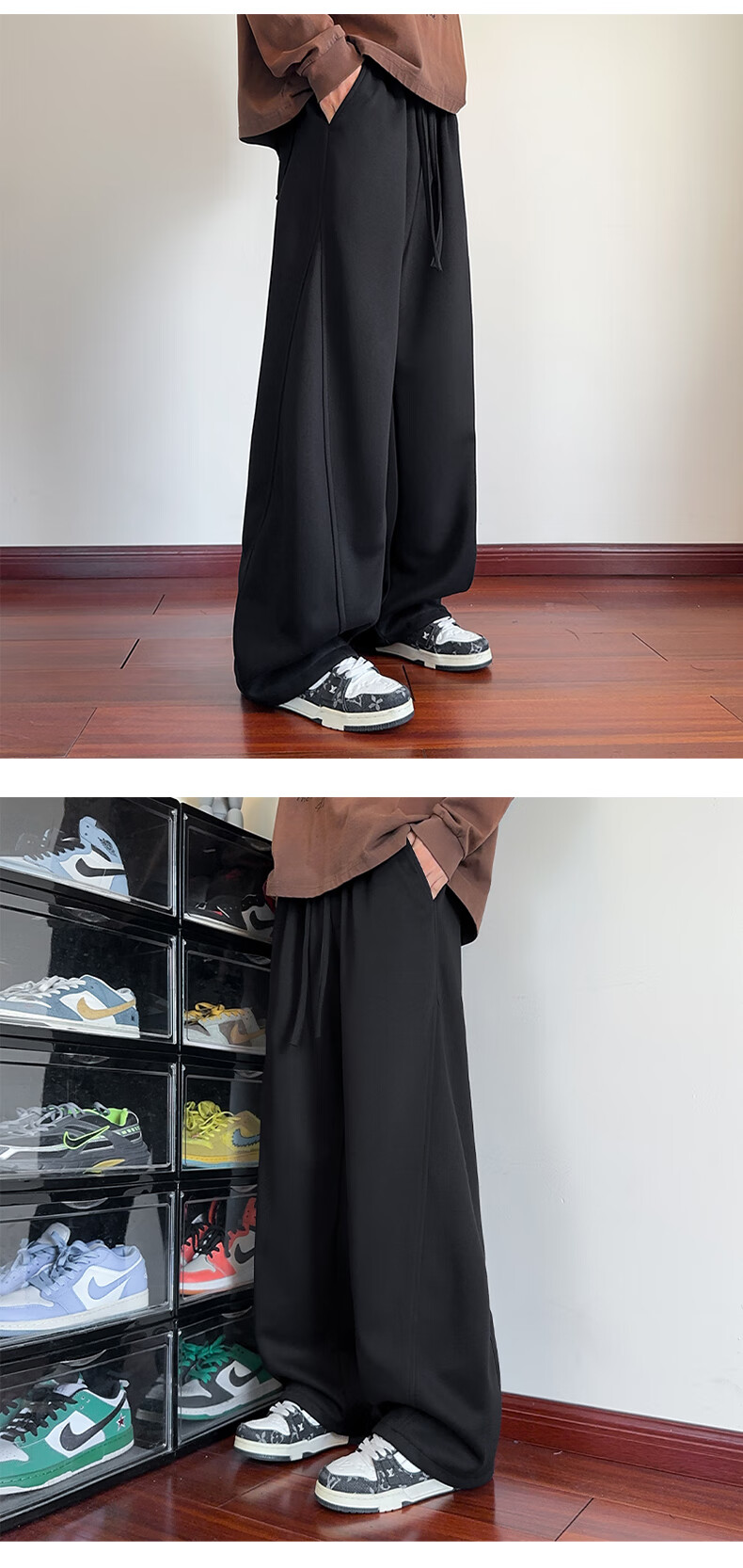 NYING fleece pants men's 25 autumn and winter new trendy brand retro warm sports casual pants large size loose straight trousers black fleece XL (130-150Jin Jin equals 0.5 kg)
