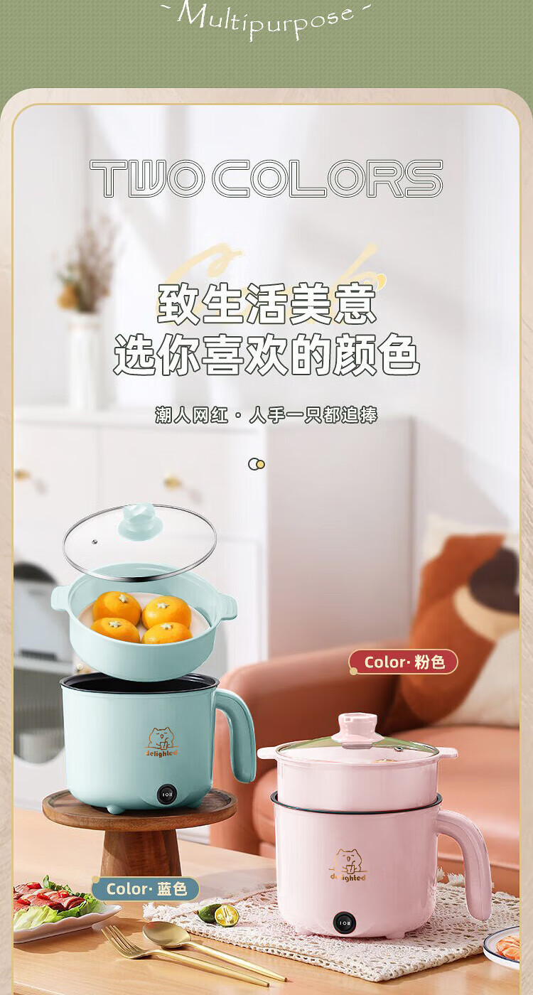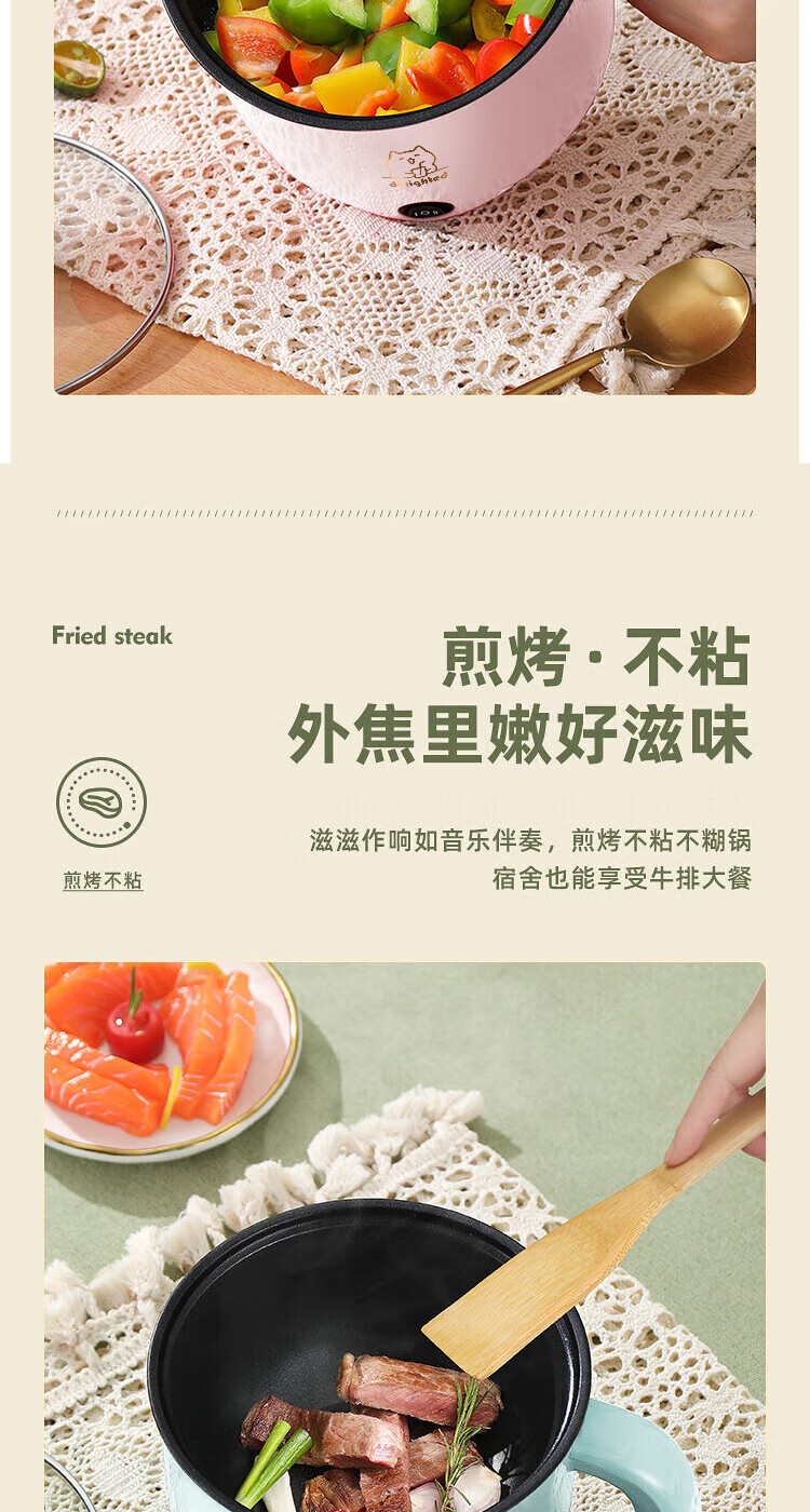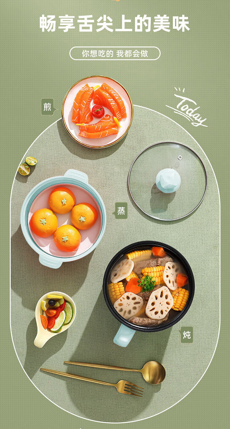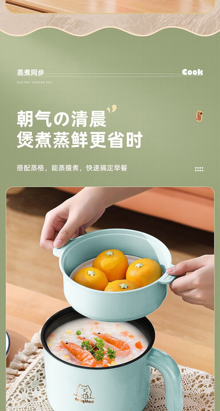 SUPOR's same model of fully automatic steaming and cooking integrated small electric cooker dormitory student pot household electric wok rice cooker electric hot pot high configuration non-stick liner stainless steel steamer 18cm