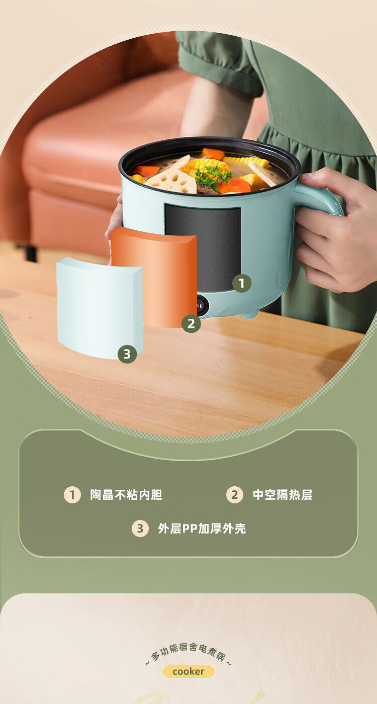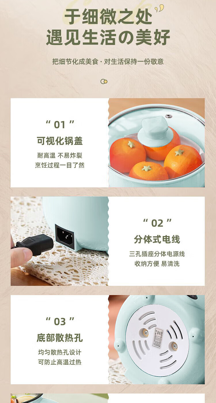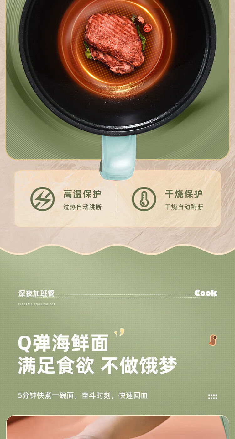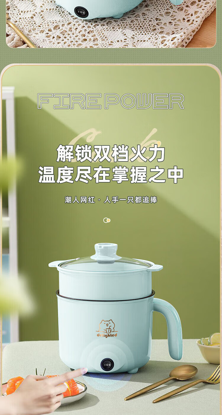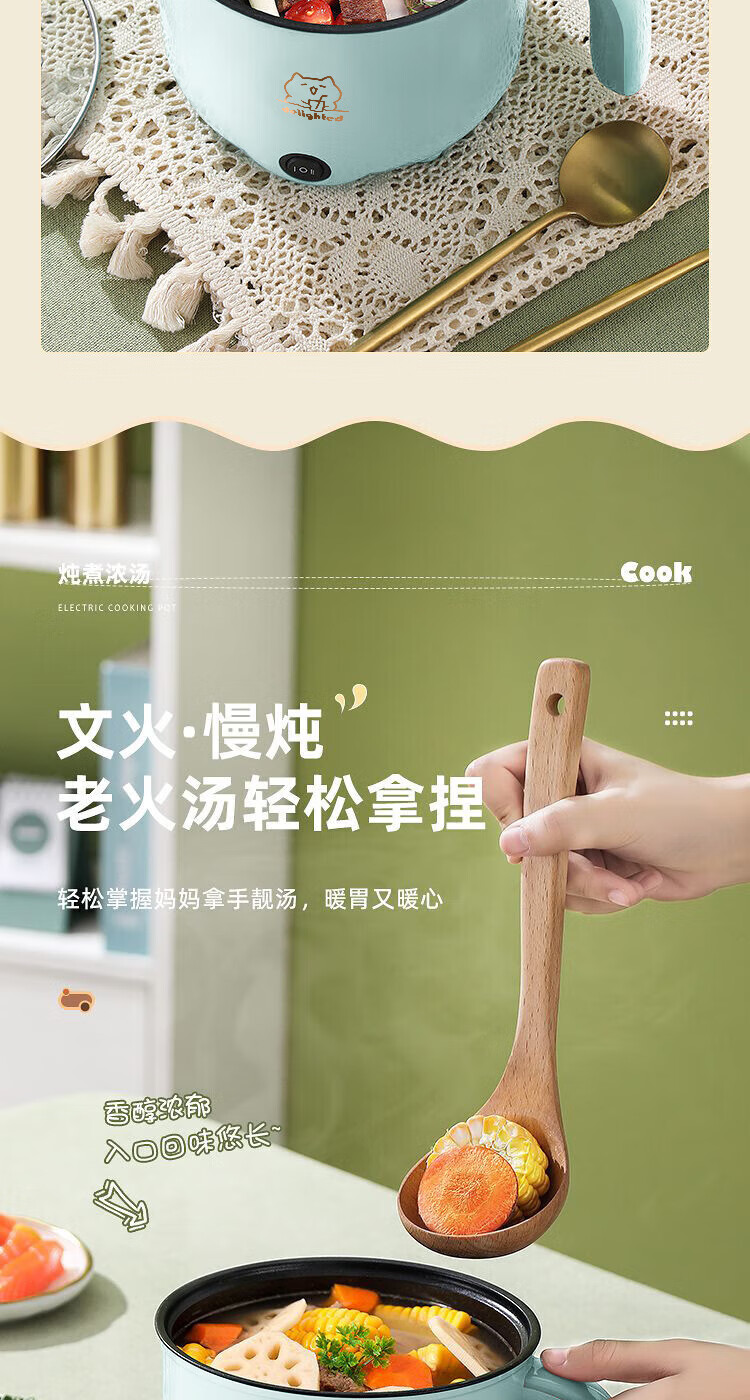 SUPOR's same model of fully automatic steaming and cooking integrated small electric cooker dormitory student pot household electric wok rice cooker electric hot pot high configuration non-stick liner stainless steel steamer 18cm