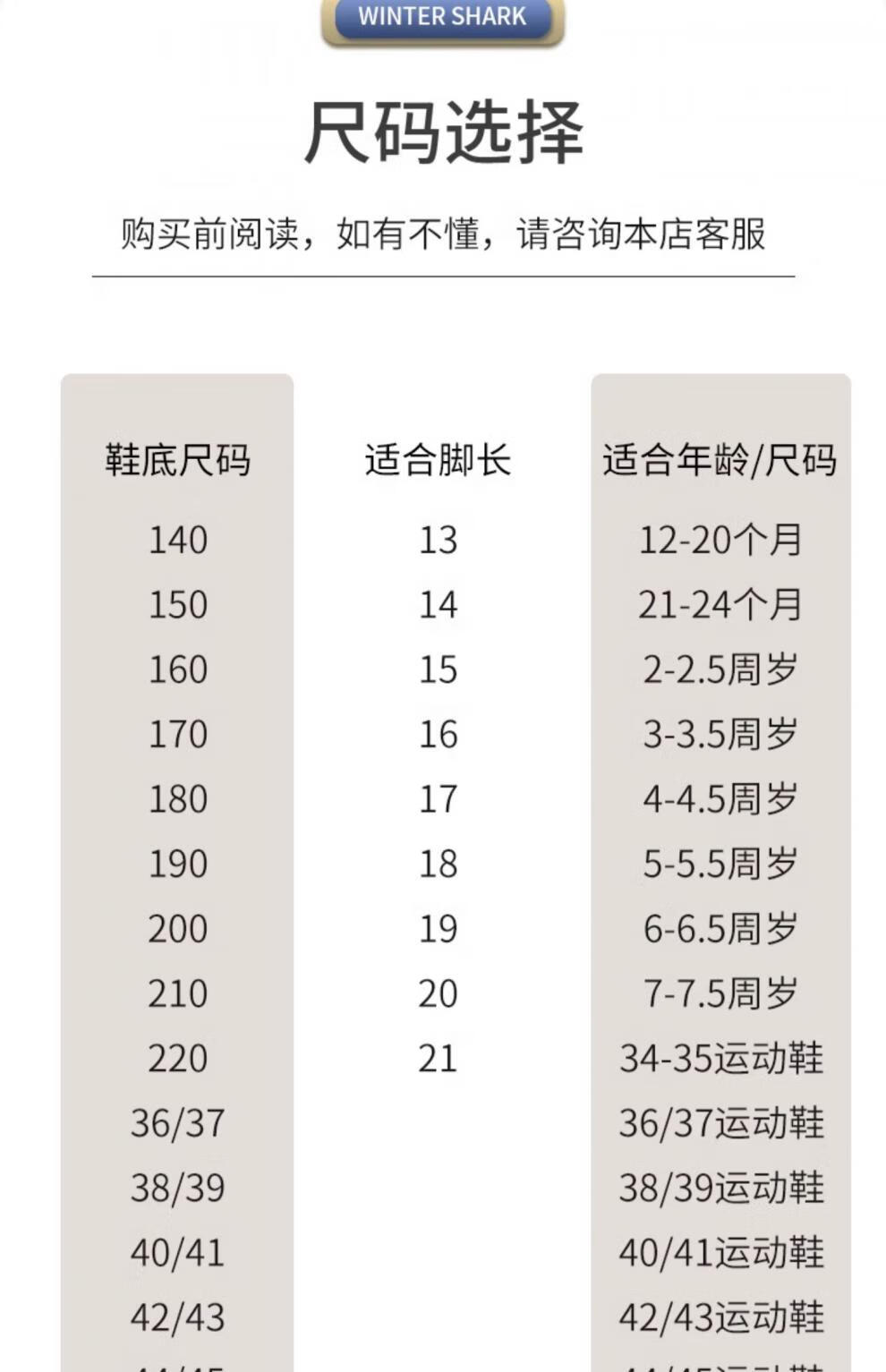 China (cm) 36 - 37 38 - 39 40 - 42 43 - 44 45 - 47