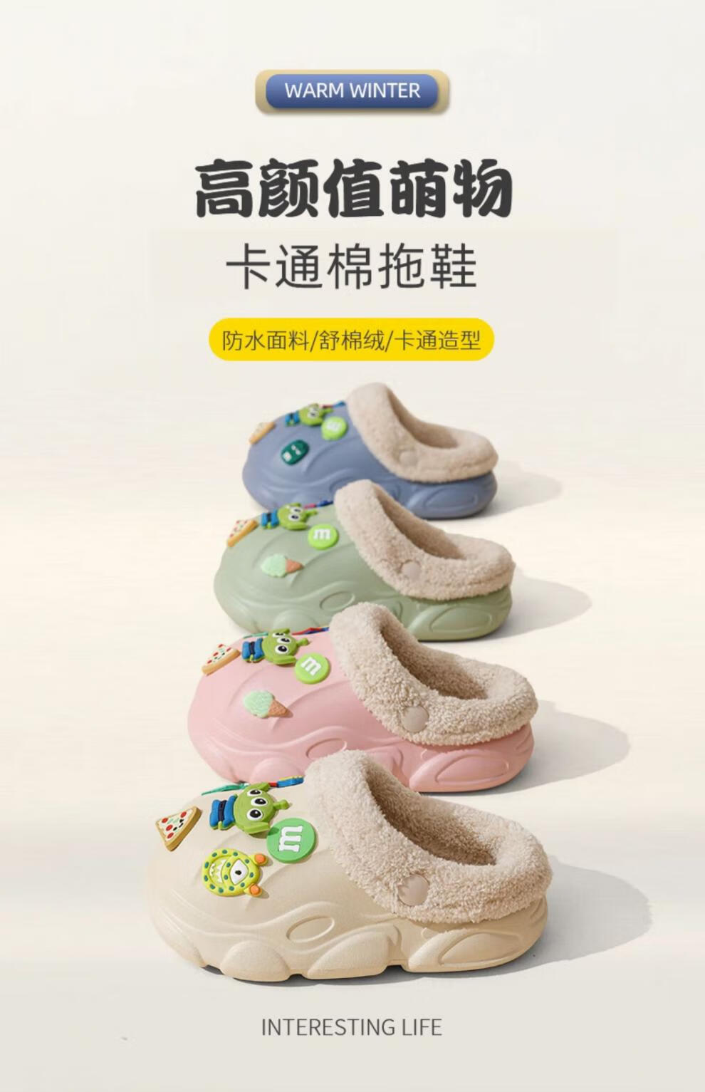 DFBK children's cotton slippers autumn and winter indoor waterproof non-slip outer wear removable washable plush warm parent-child sand color sports non-slip sole 33