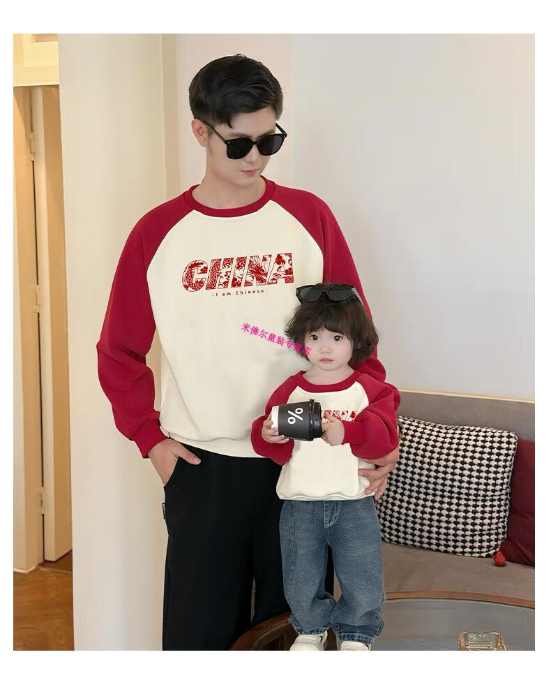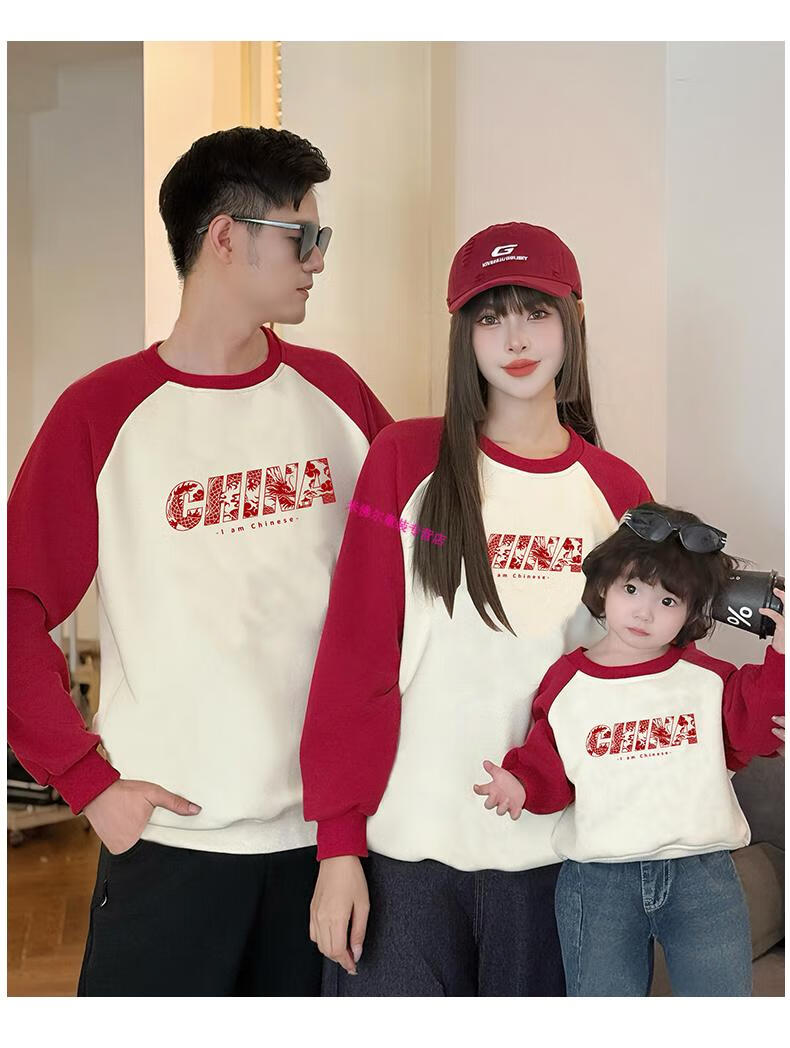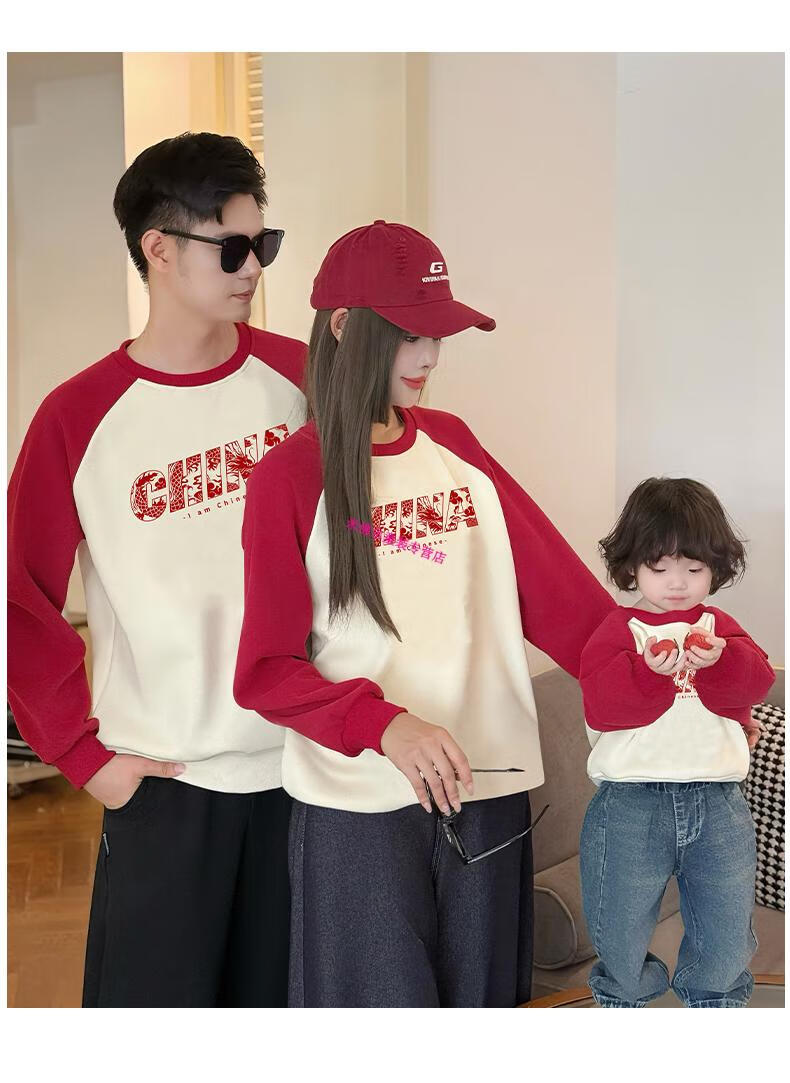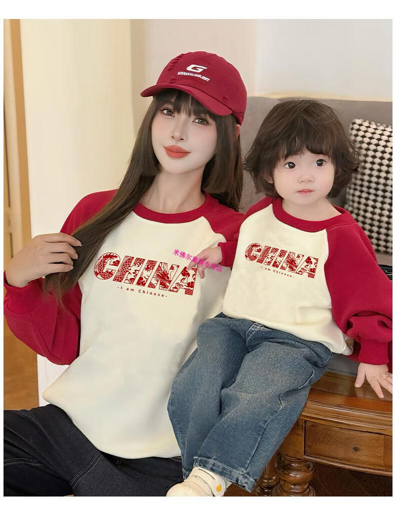 Didi.Ni HEYDIDY parent-child wear long-sleeved sweatshirt for a family of three 2025 new autumn and winter National Day travel family portrait mother and daughter burgundy color shoulder sleeves spring and autumn sweatshirt 190 mom 3XL
