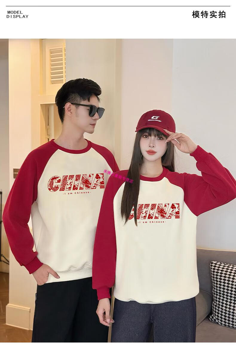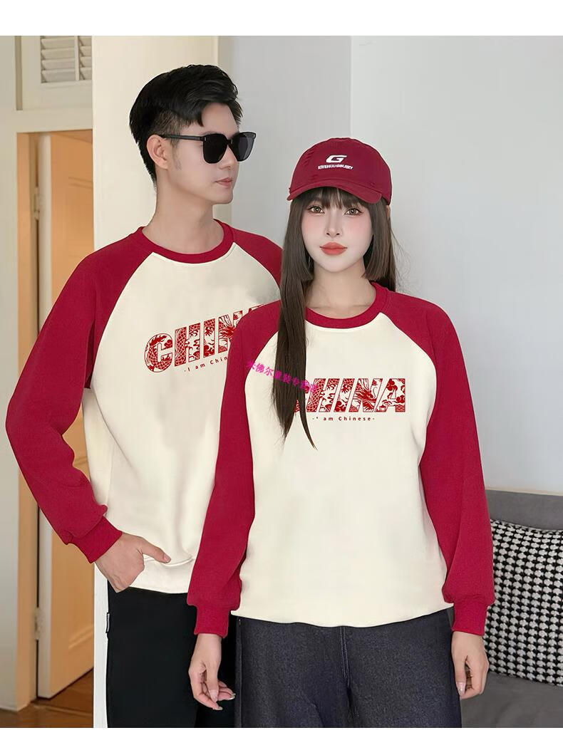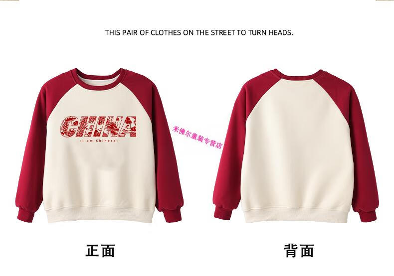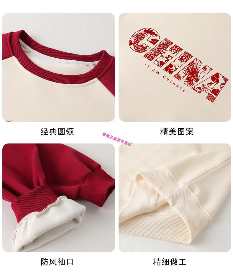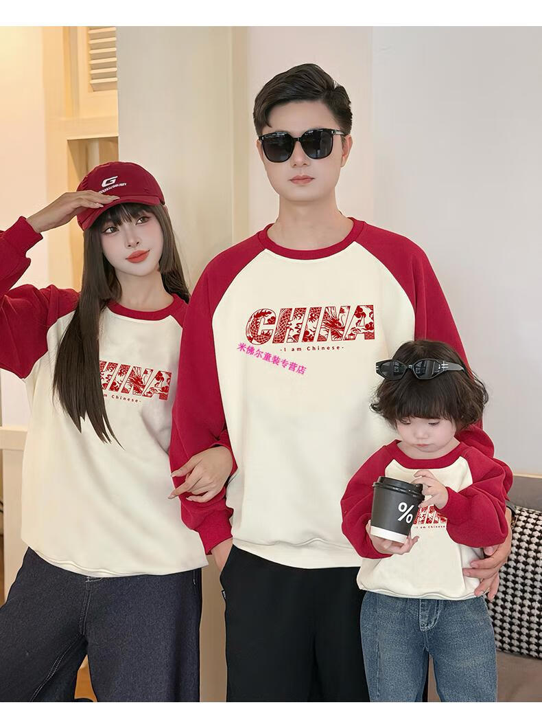 Didi.Ni HEYDIDY parent-child wear long-sleeved sweatshirt for a family of three 2025 new autumn and winter National Day travel family portrait mother and daughter burgundy color shoulder sleeves spring and autumn sweatshirt 190 mom 3XL