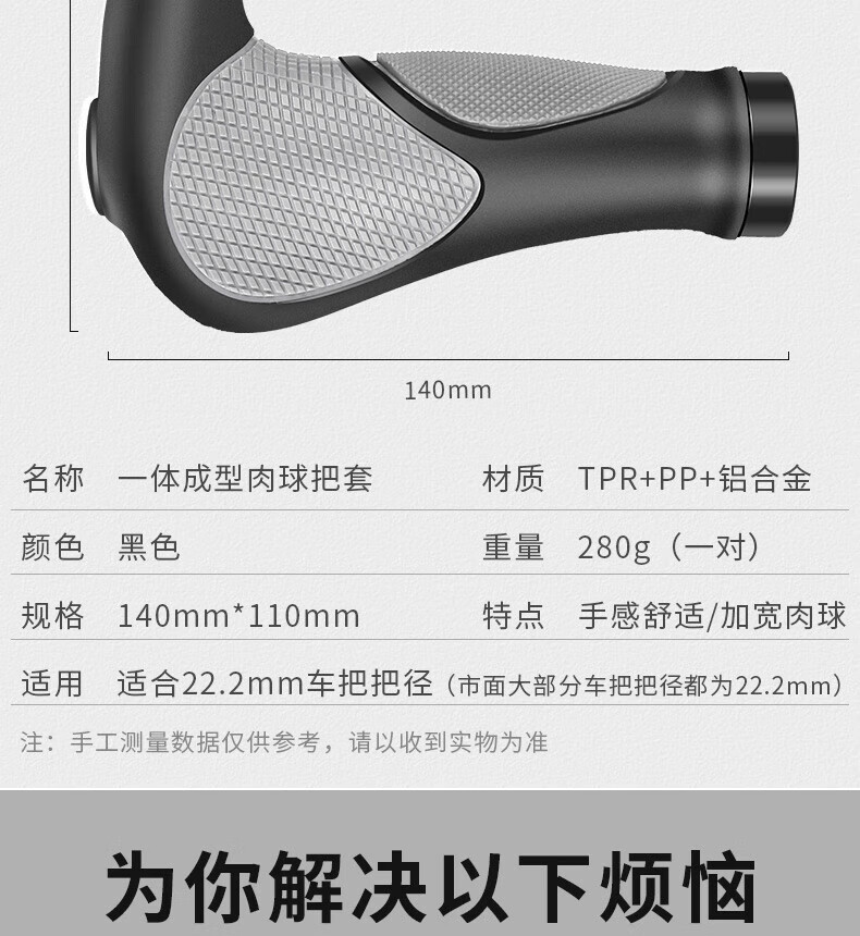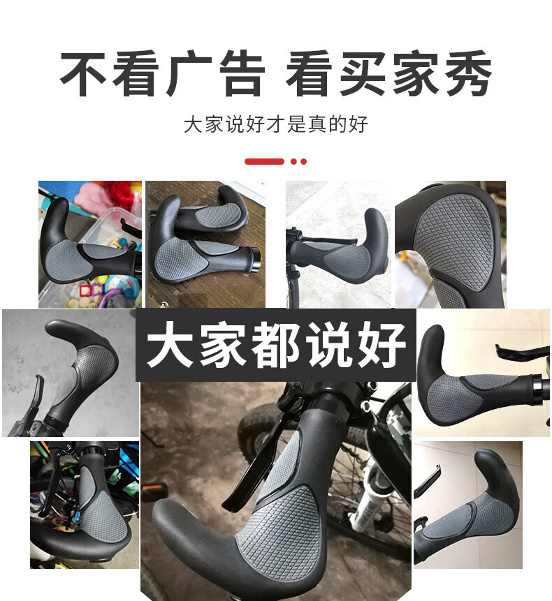 He Jiagong Bicycle Handlebar Cover Silicone Mountain Bike Vice Handlebar Universal Cycling Grip Cover Cow and Sheep Horn Handle Cover Accessories One-piece Meat Ball Handlebar Cover with Vicebar Gray