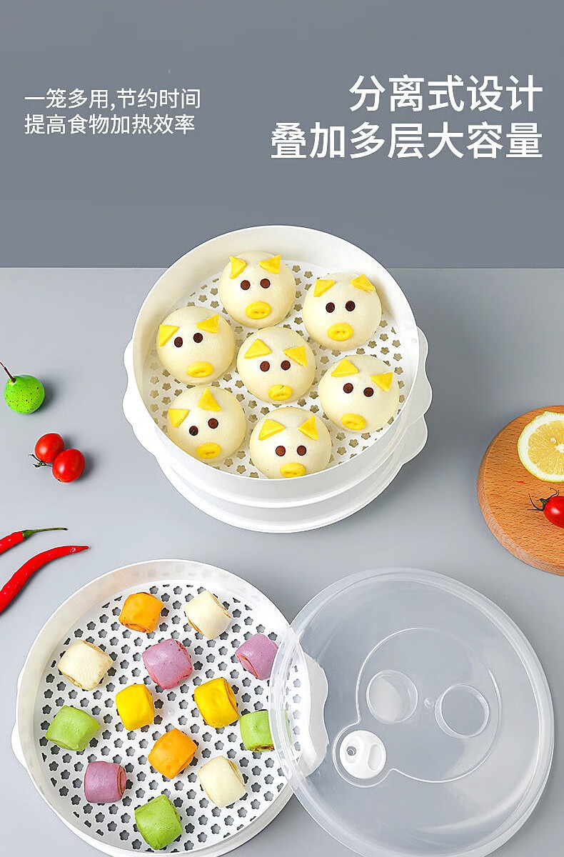 Jingdie microwave oven heating steamer large-capacity food-grade household water-added double-layer thickened container steamer steamer box steamer microwave oven special heating steamer 2 layers