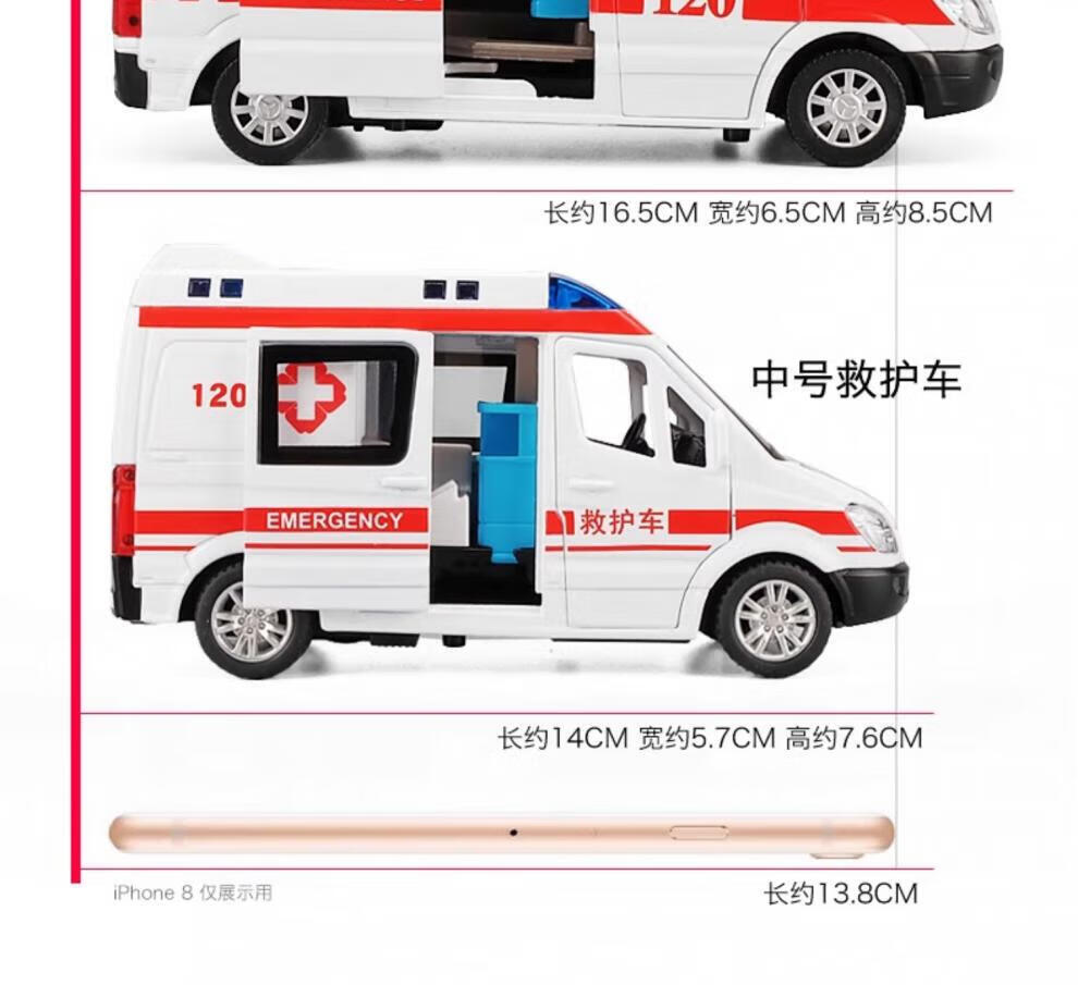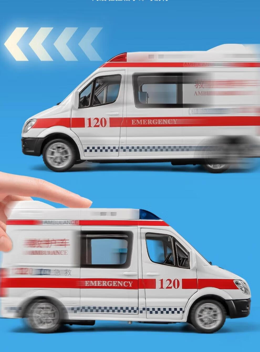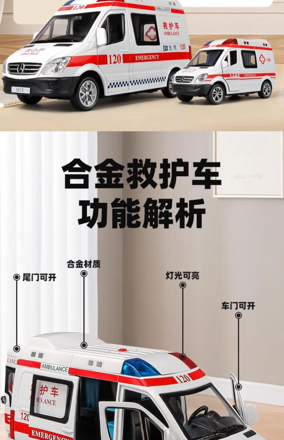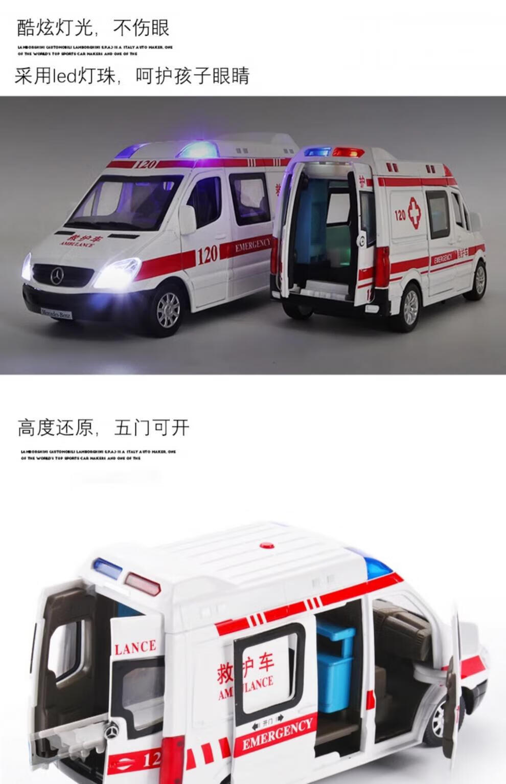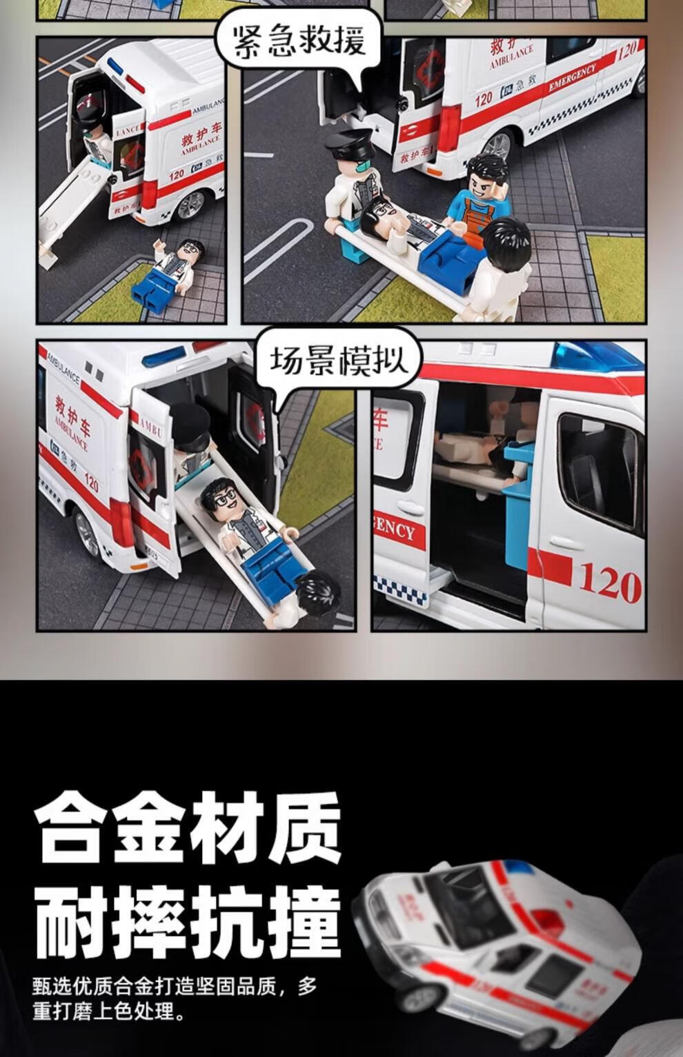 He Jiagong 120 ambulance toy car boy alloy large simulation police car child girl doctor rescue car model with minifigure gift pack 5 door ambulance with fire/police car/ambulance