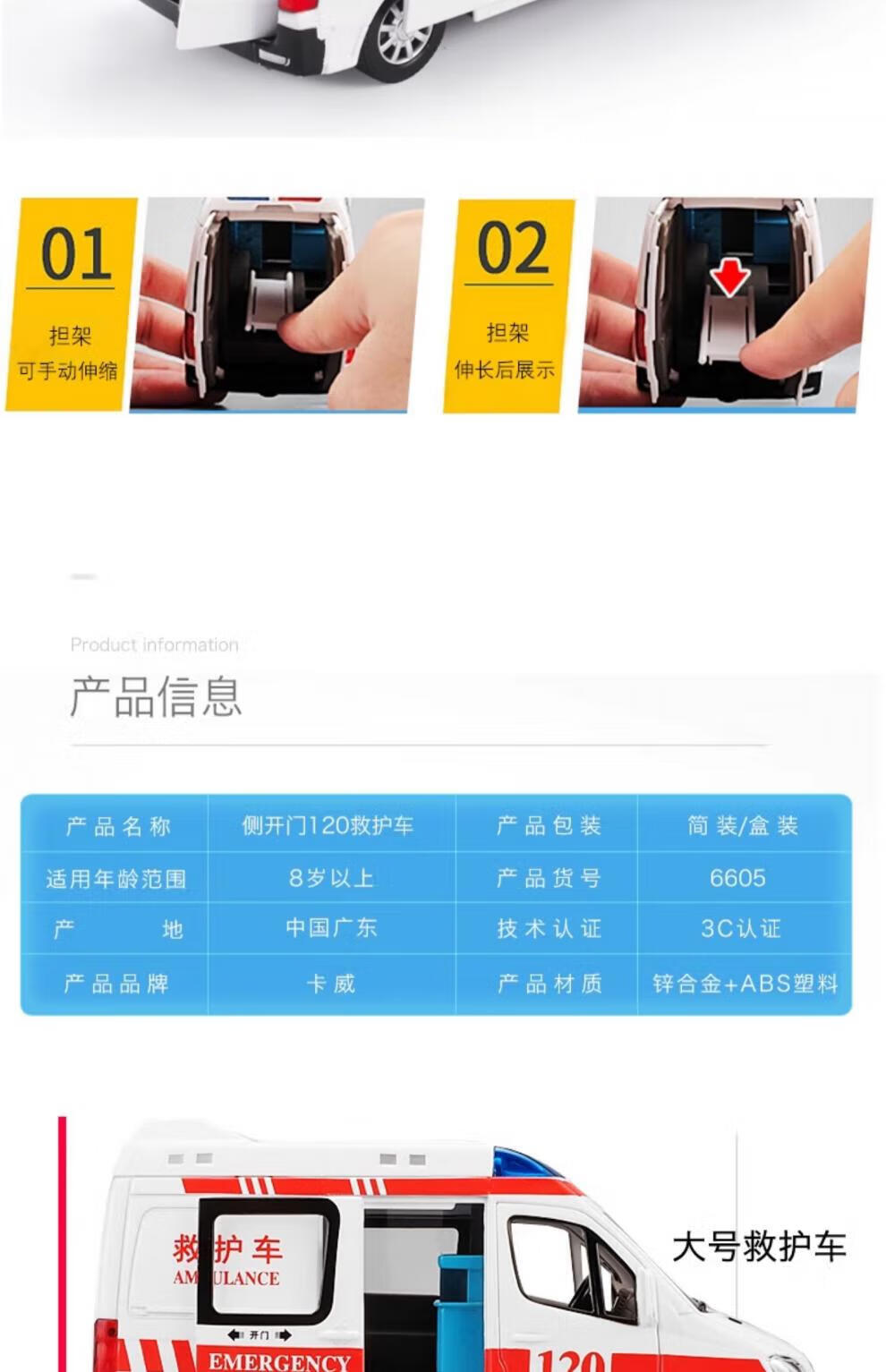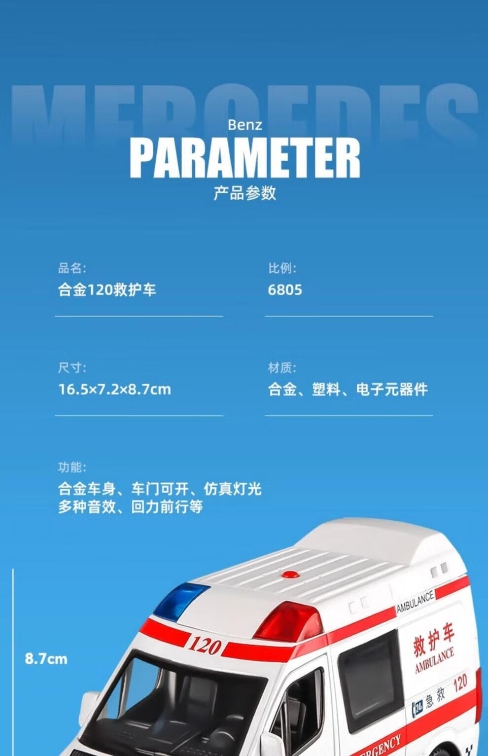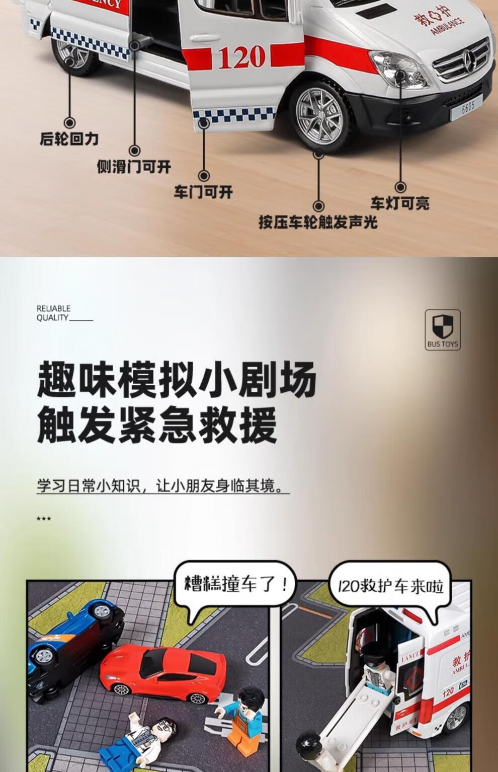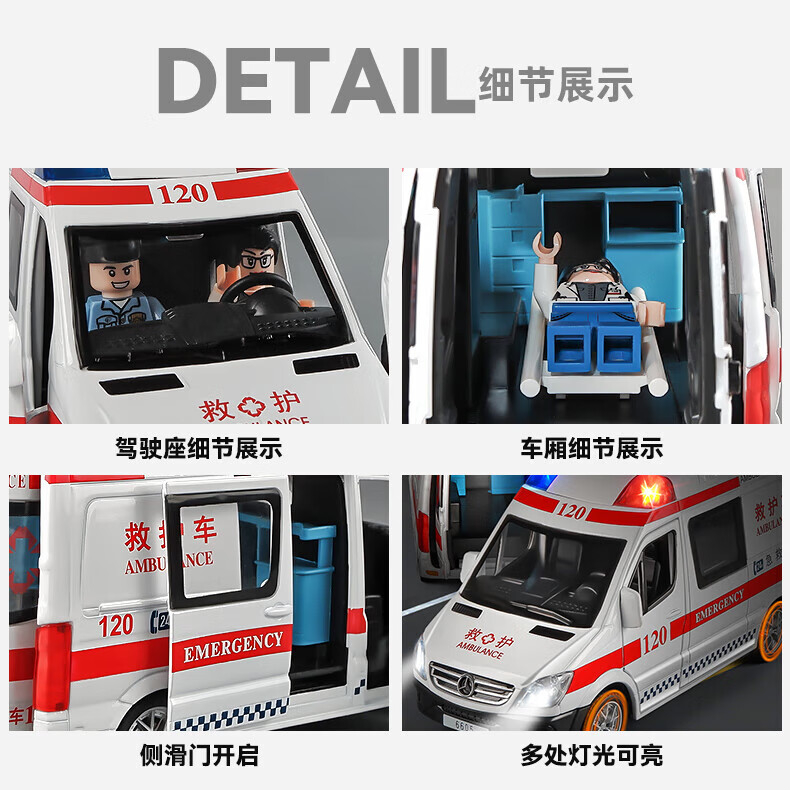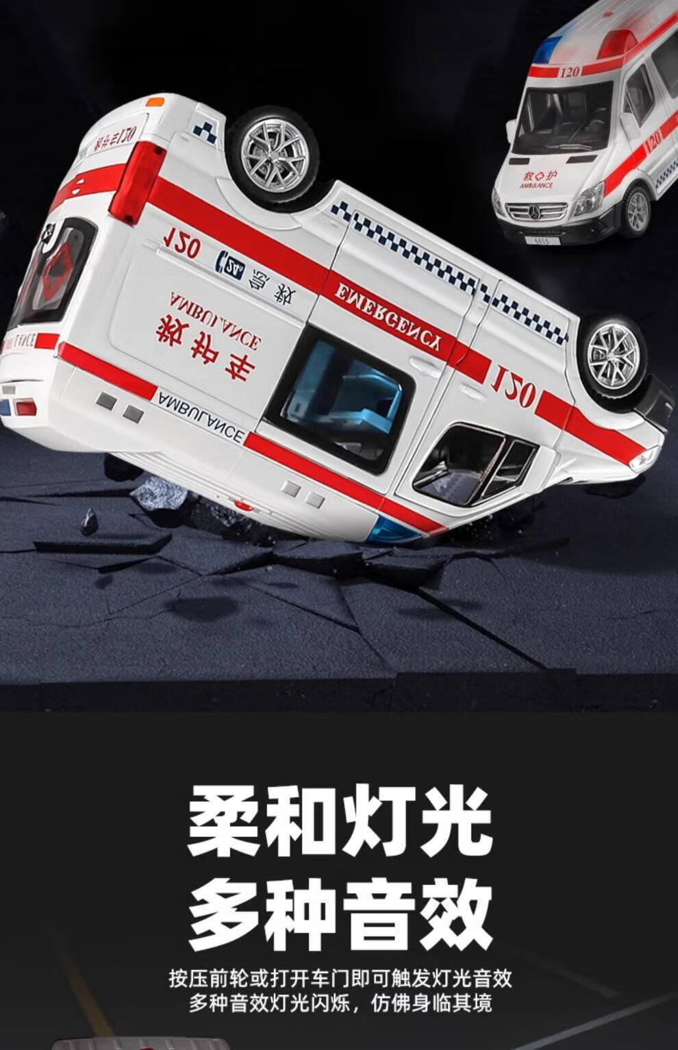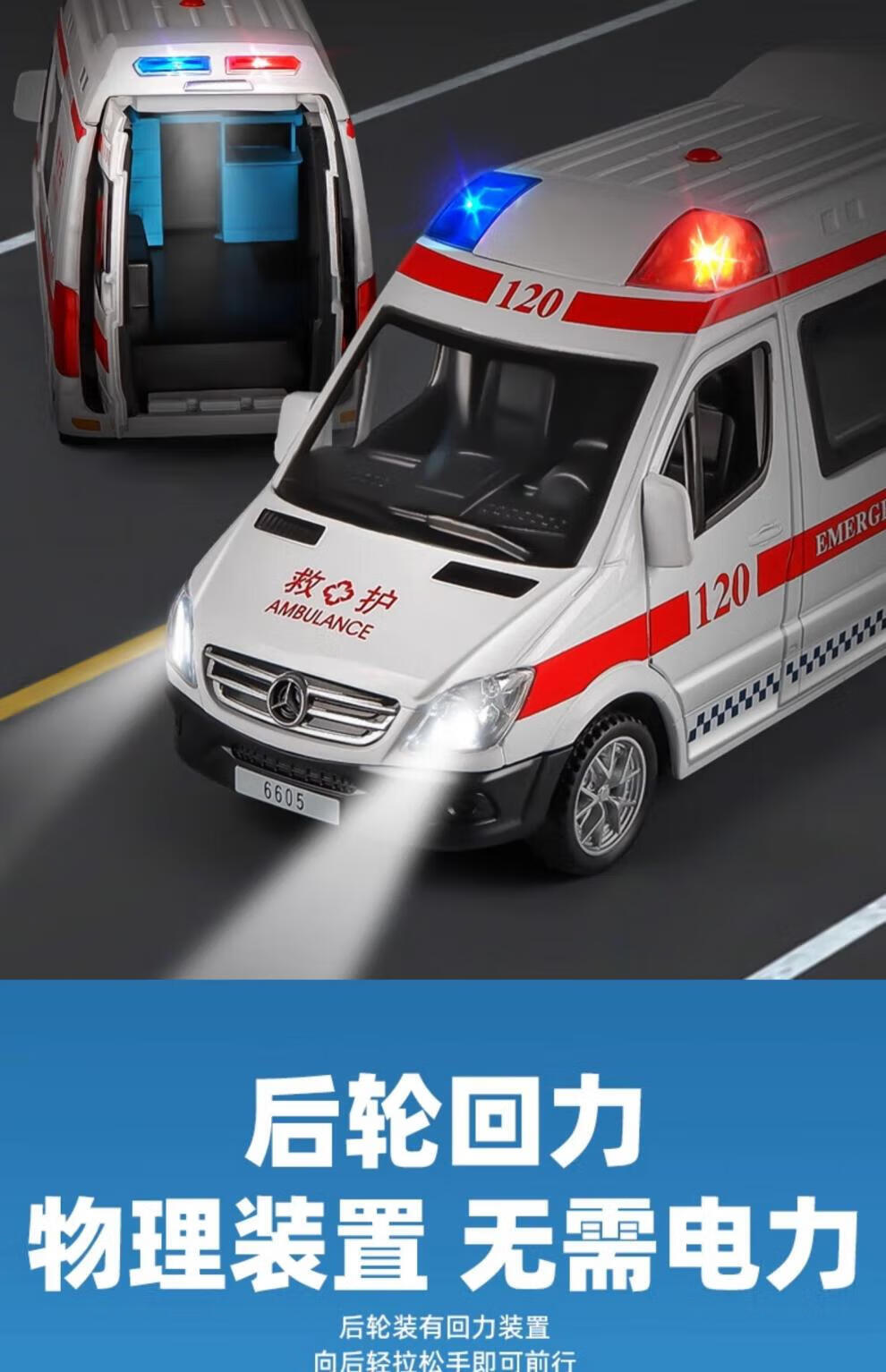 He Jiagong 120 ambulance toy car boy alloy large simulation police car child girl doctor rescue car model with minifigure gift pack 5 door ambulance with fire/police car/ambulance