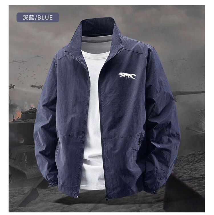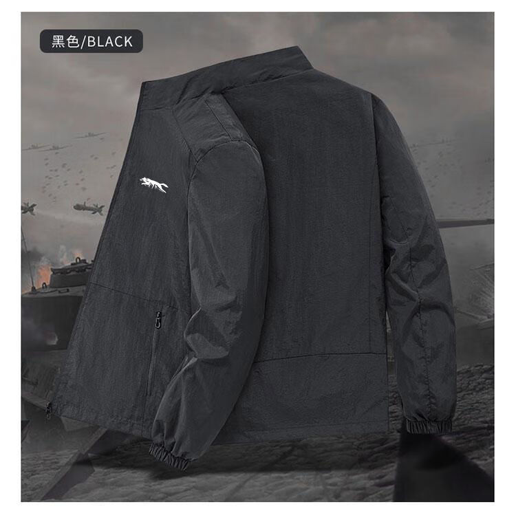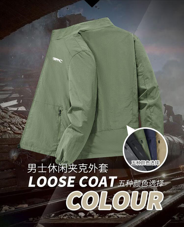 Broken Code Wolf Jacket Men's Spring Autumn Winter 2025 New Casual Stand Collar Windproof Waterproof Plus Velvet Warm Jacket Trendy Xiaoqi-5277 Military Green Thin Section 2XL Suitable for 150-165Jin Jin is equal to 0.5 kg