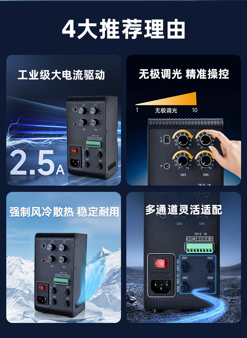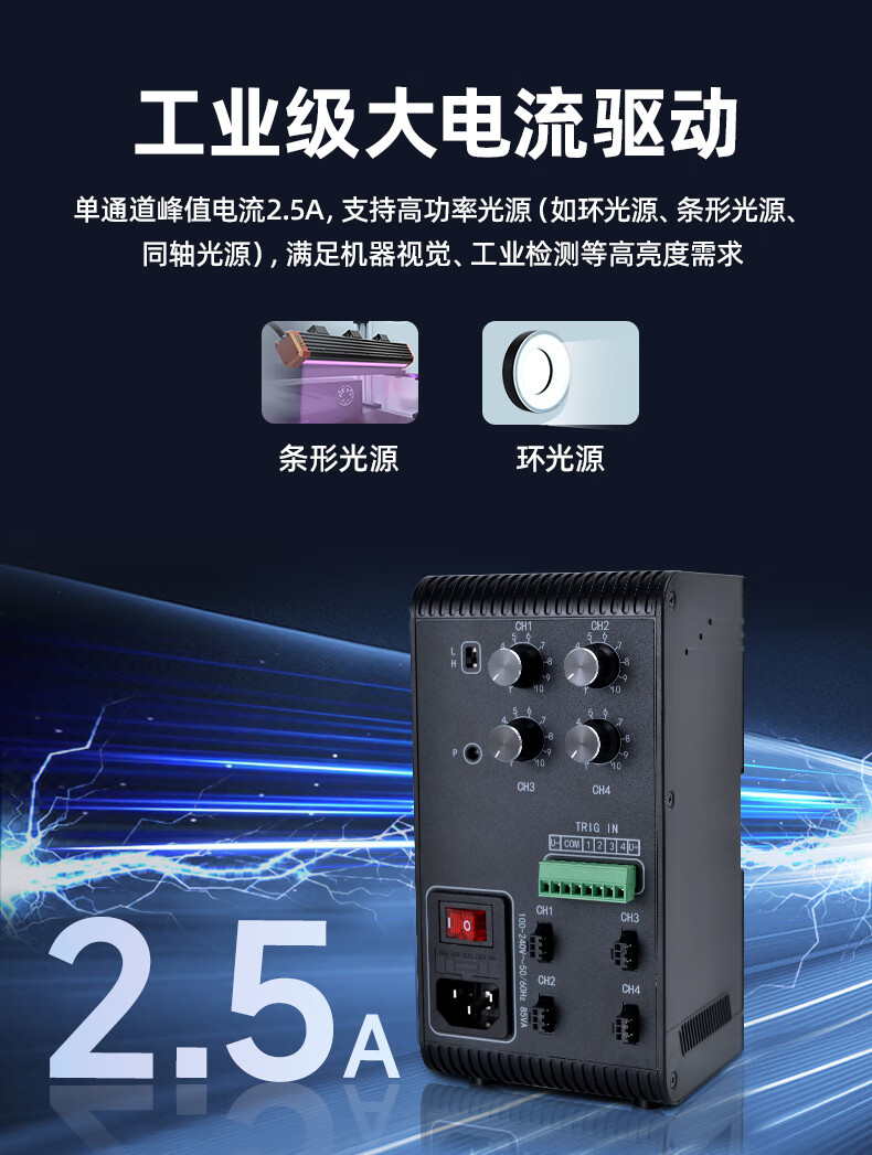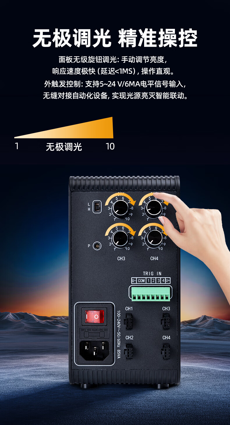 MVLEVS604SY 4-channel analog constant voltage dimming controller light source controller + ring light source (white) + 3-meter extension cable (1 turn
