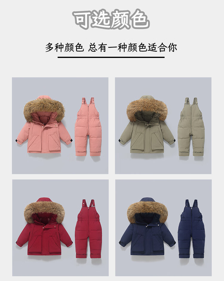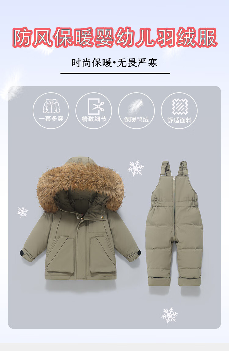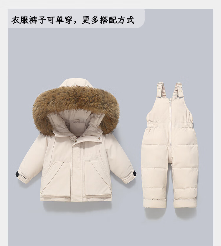 G.duck little yellow duck winter children's baby down jacket set thickened detachable crotch overalls baby winter clothing two-piece set dark blue (original color real wool) 80 cm