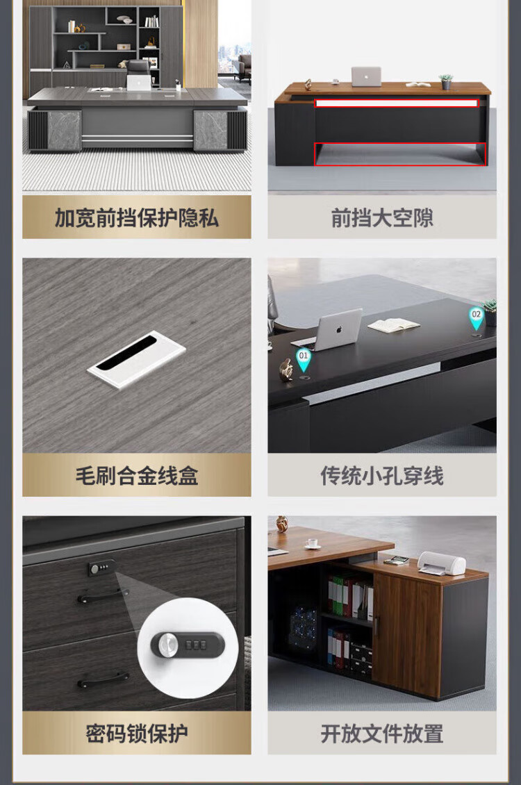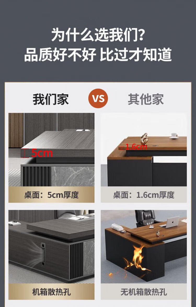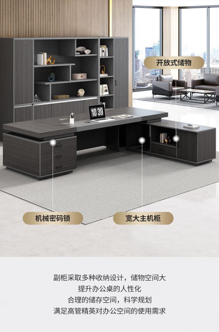 Boss desk and chair combination, simple and modern executive desk, manager desk, grand president desk, single executive desk furniture, including home delivery and installation, 1.6-meter boss desk