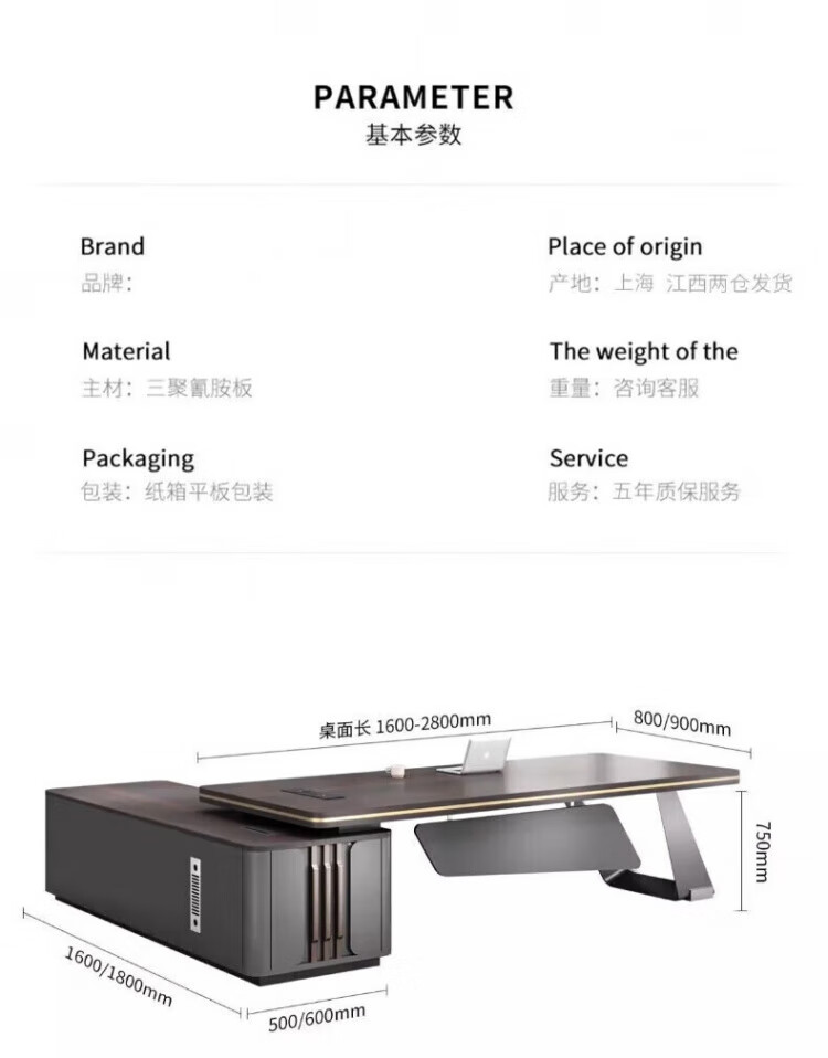 Light luxury boss desk office desk and chair combination, simple and modern leadership manager room furniture, president desk executive desk, including door-to-door installation 1.8 meters#Boss table